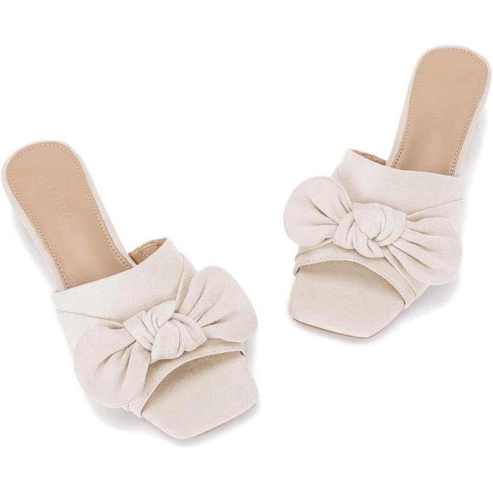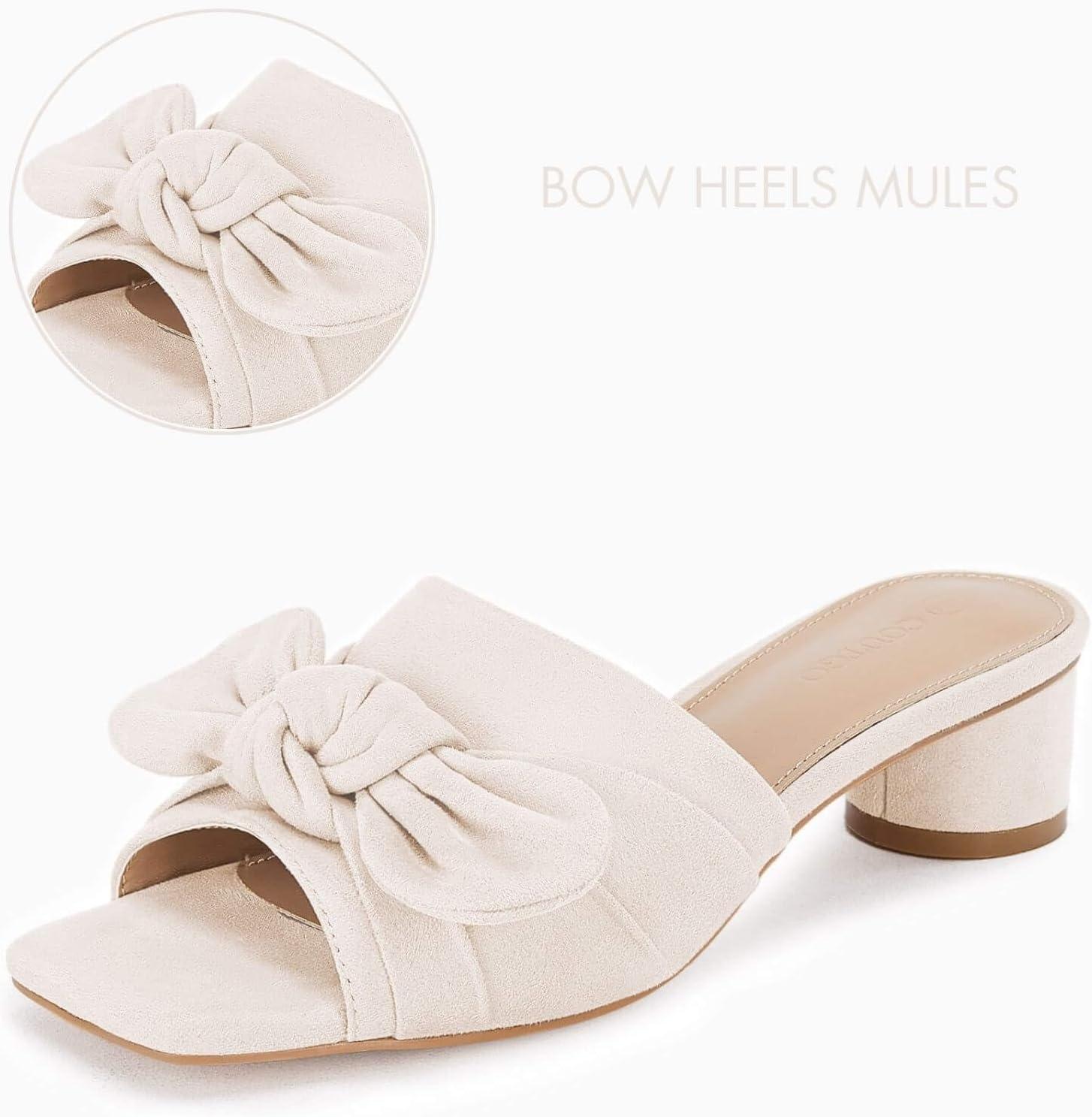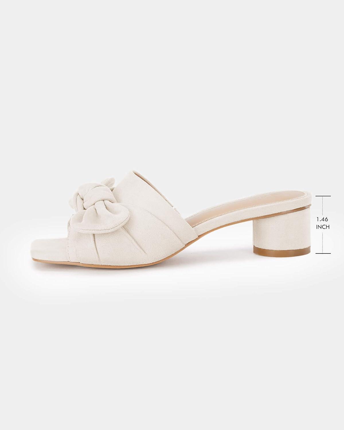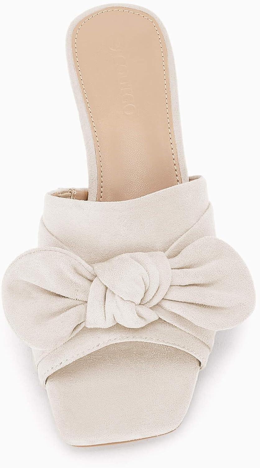 Coutgo Womens Bow Slides Sandals Wide Width Slip On Chunky Low Heels Square Open toe Elagant Summer Shoes(Nude)