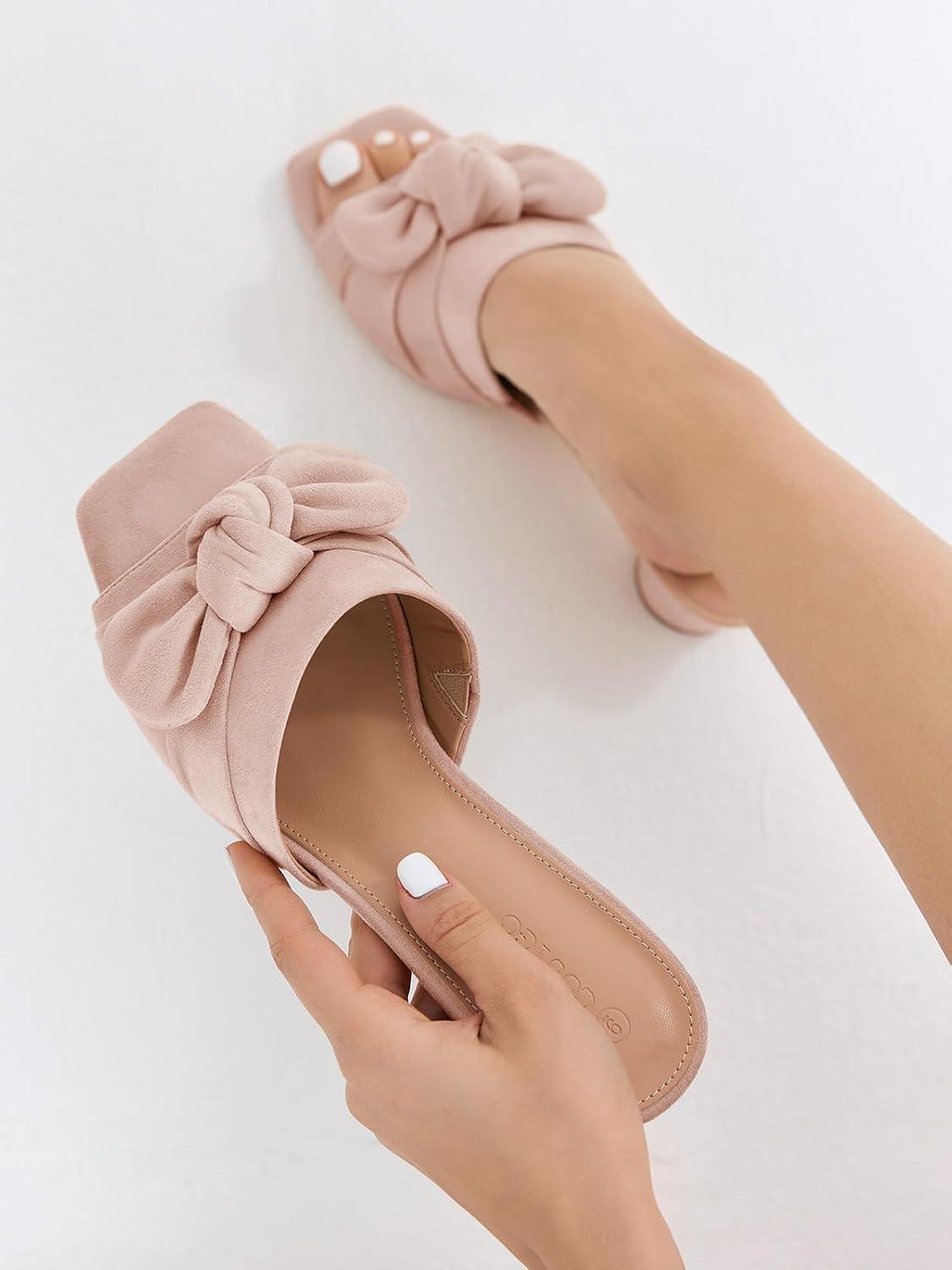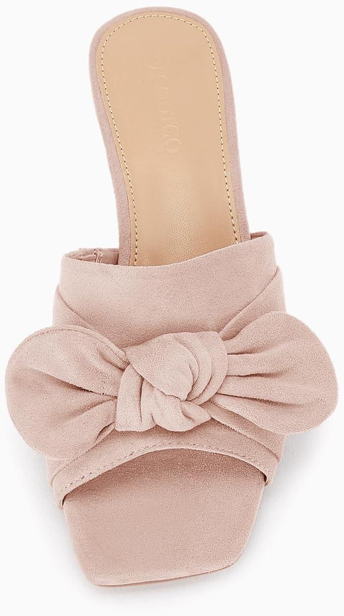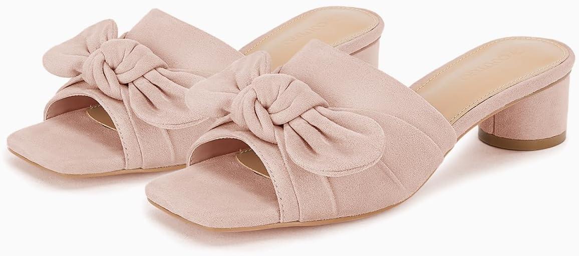 Coutgo Womens Bow Slides Sandals Wide Width Slip On Chunky Low Heels Square Open toe Elagant Summer Shoes(Pink)