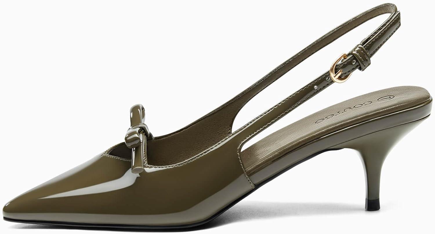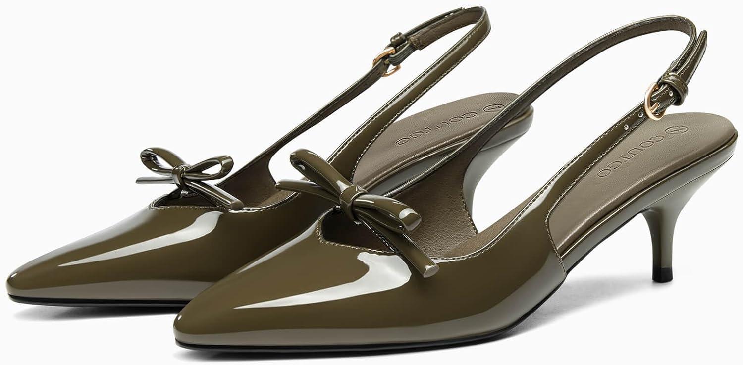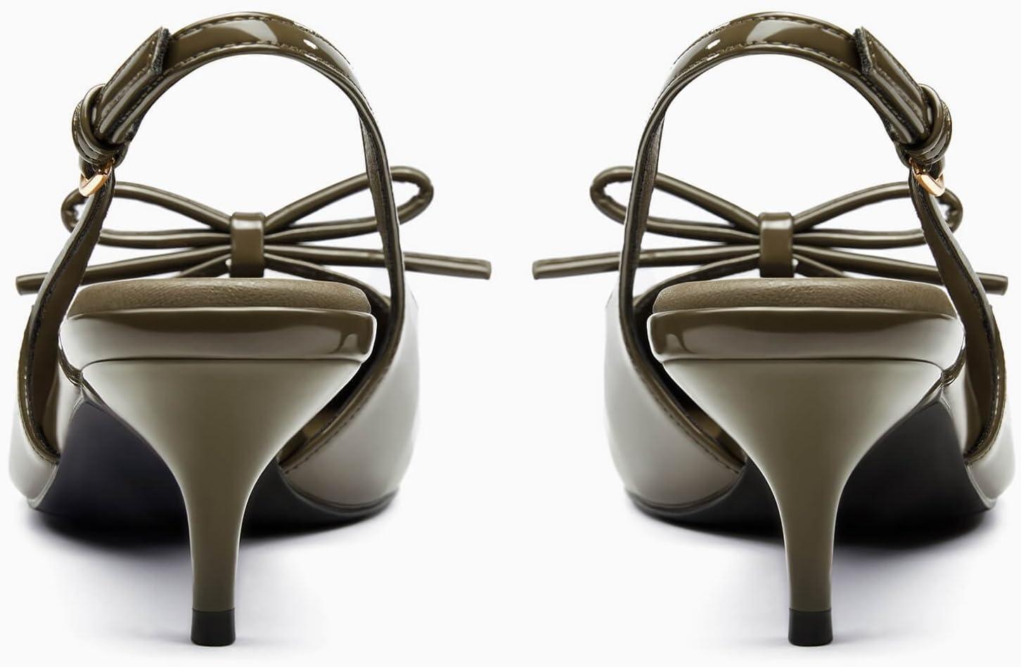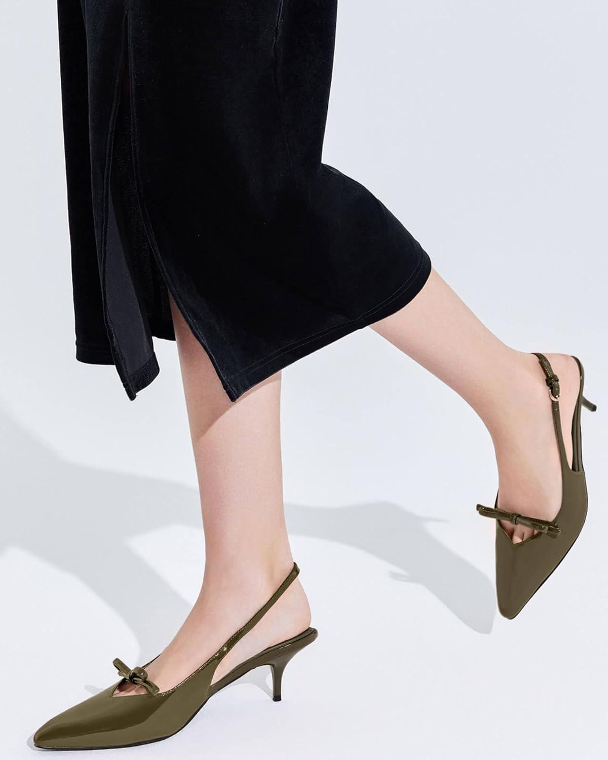 Coutgo Womens Bow Slingback Heels Low Kitten Heel Pumps Closed Pointed Toe Party Wedding Dress Shoes(Army Green)