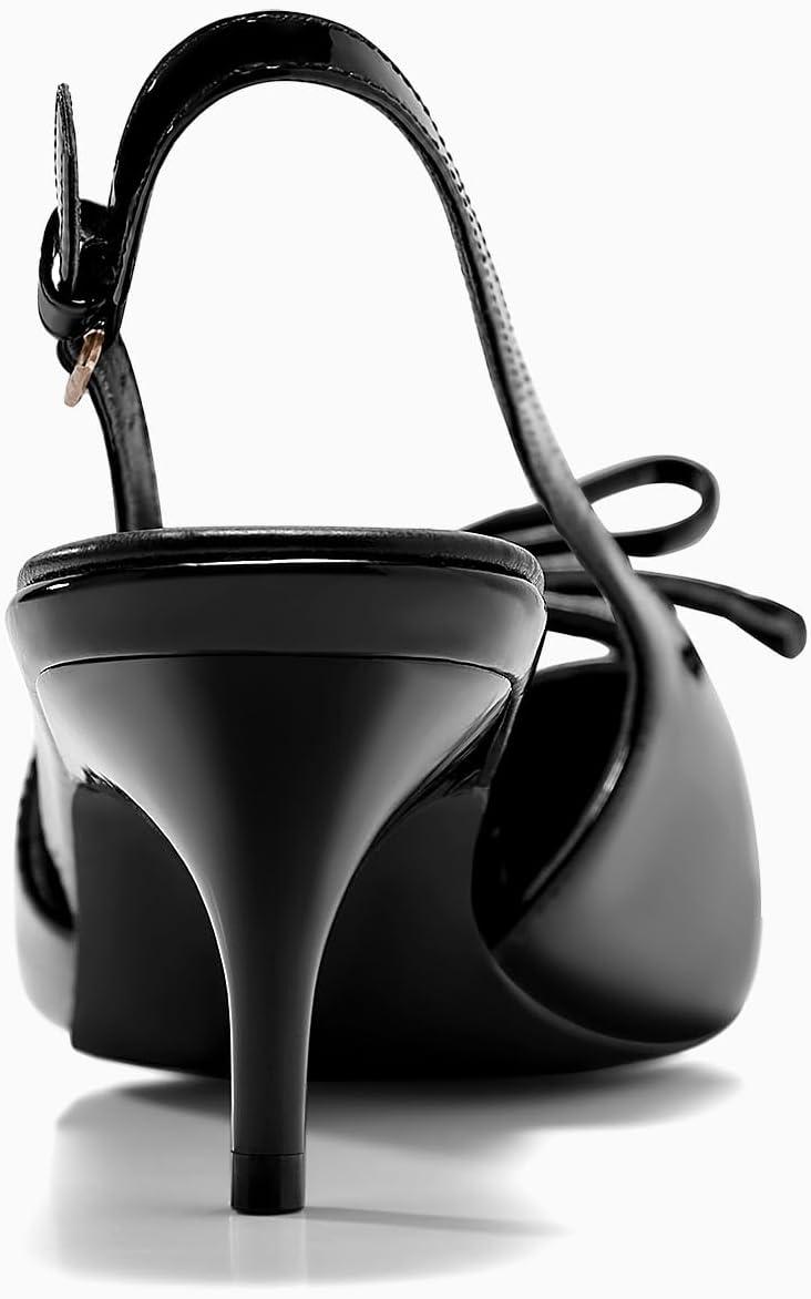 Coutgo Womens Bow Slingback Heels Low Kitten Heel Pumps Closed Pointed Toe Party Wedding Dress Shoes(Black)