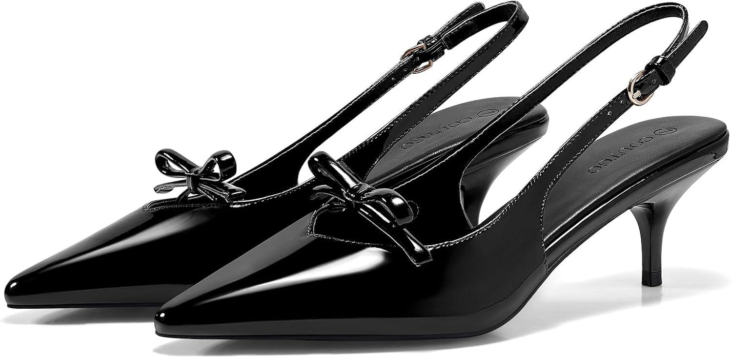 Get your hands on our newest Coutgo Womens Bow Slingback Heels Low Kitten Heel Pumps Closed Pointed Toe Party Wedding Dress Shoes(Black) and enjoy a limited-time discount offer.