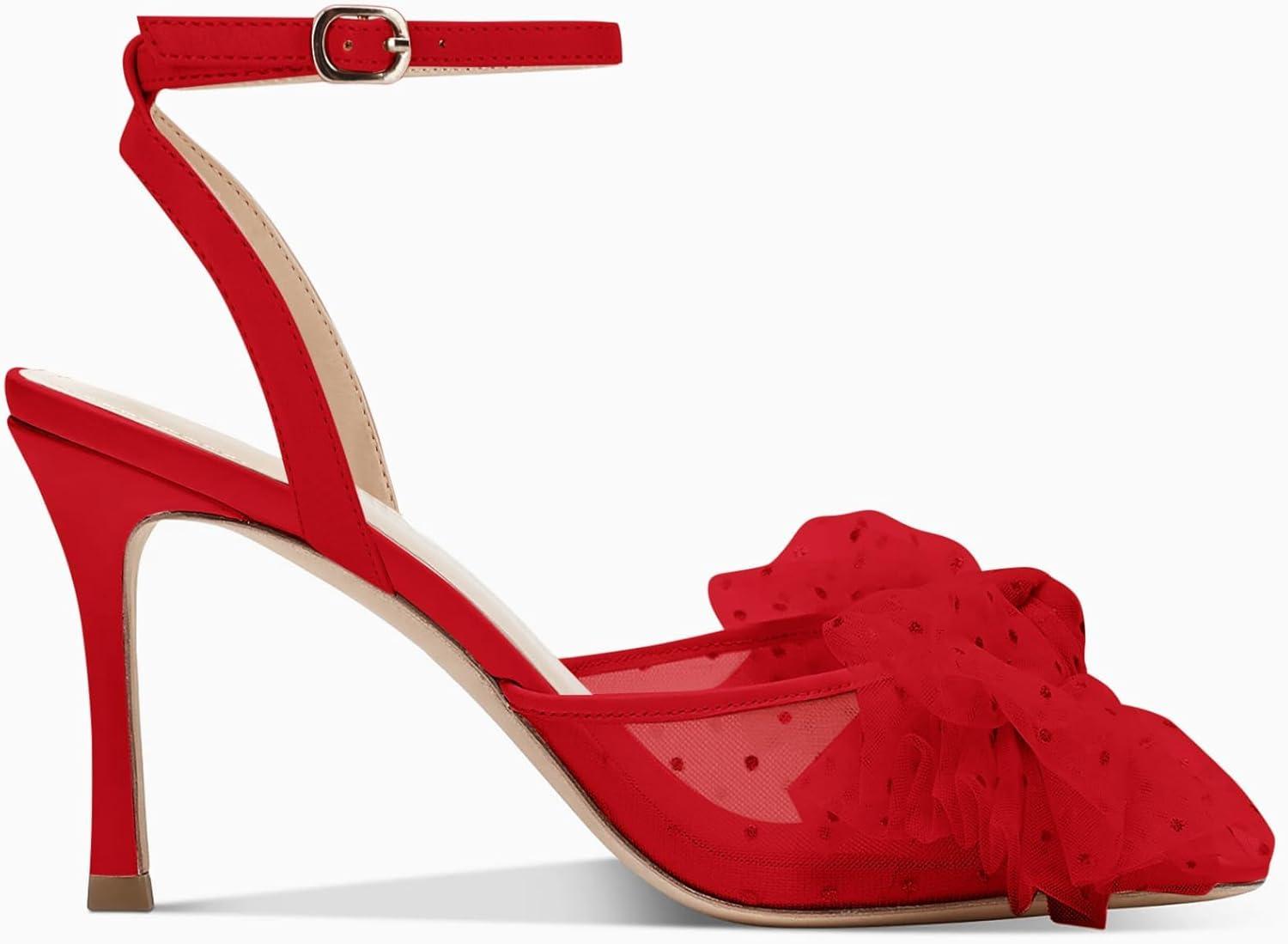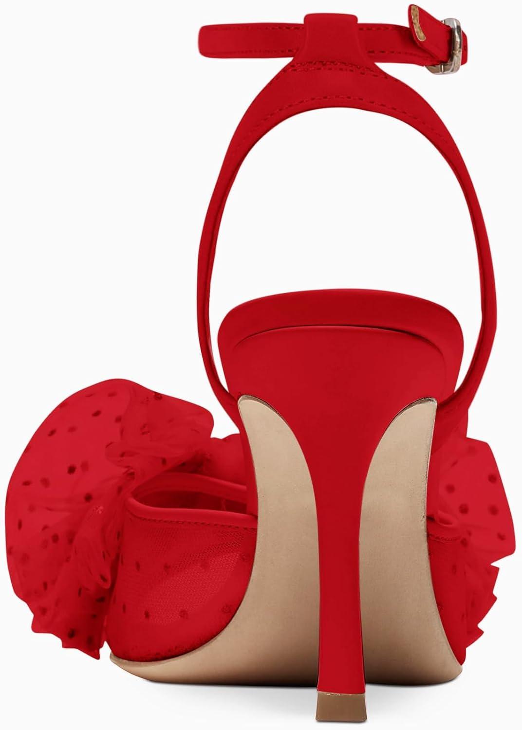Get a free gift with your purchase of Coutgo Womens Bow Tie Heels Sandals Slingback Peep Toe Wedding Heels Mesh High Stiletto Heel Summer Cute Wedding Bridal Shoes(Red). Limited quantities available!