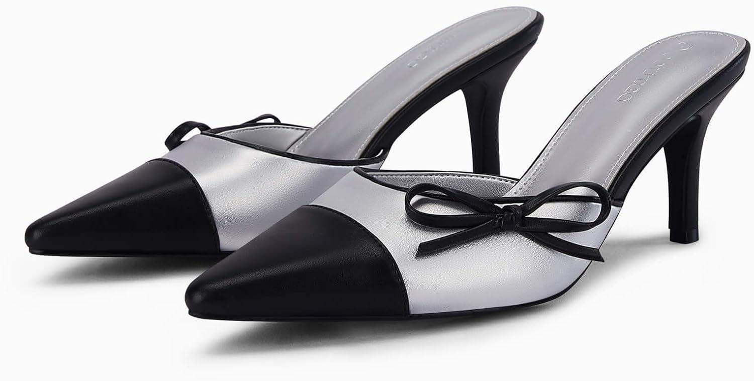 Be the first to review “Coutgo Womens Bow Tie Mules Heels Two Tone Closed Pointed Toe Slip On Backless Wedding Dress Shoes Pumps(Silver)” Cancel reply