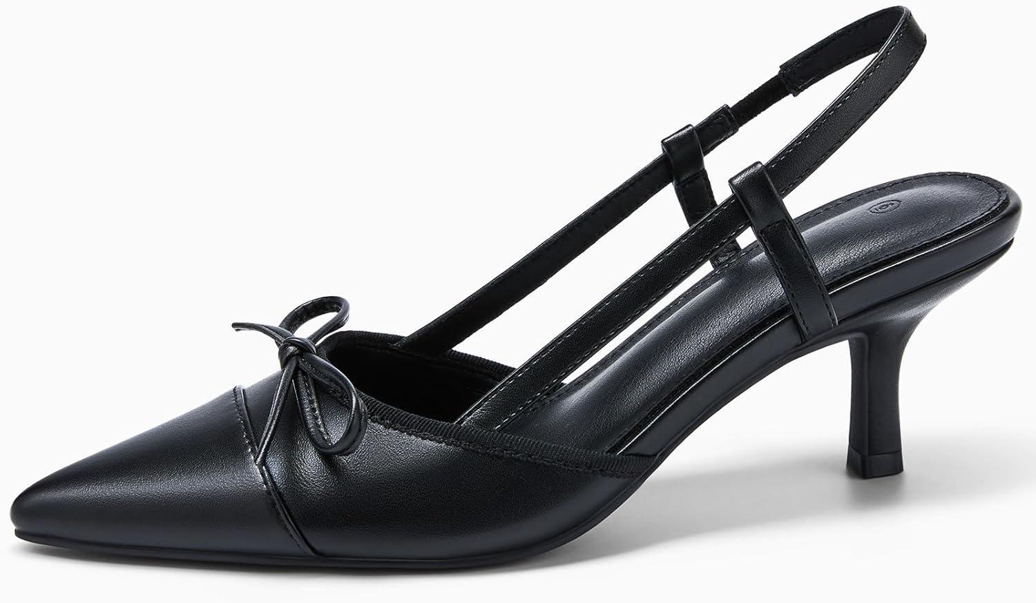 Coutgo Women‘s Bow Tie Slingback Pumps Pointed Toe Kitten Low Heel Patchwork Dress Heeled Sandals(Black)