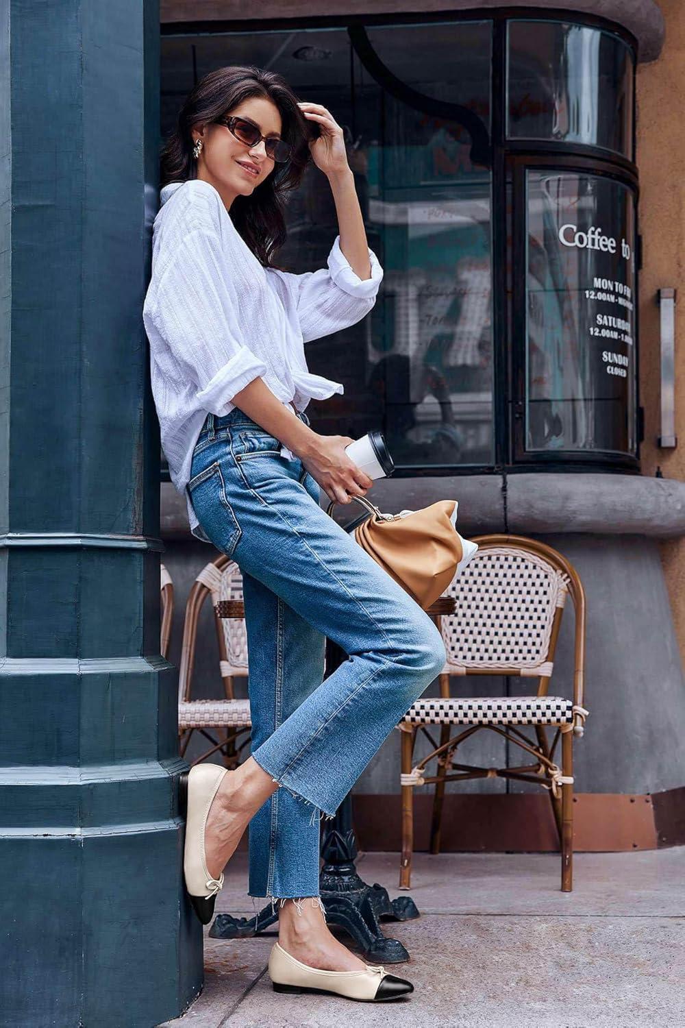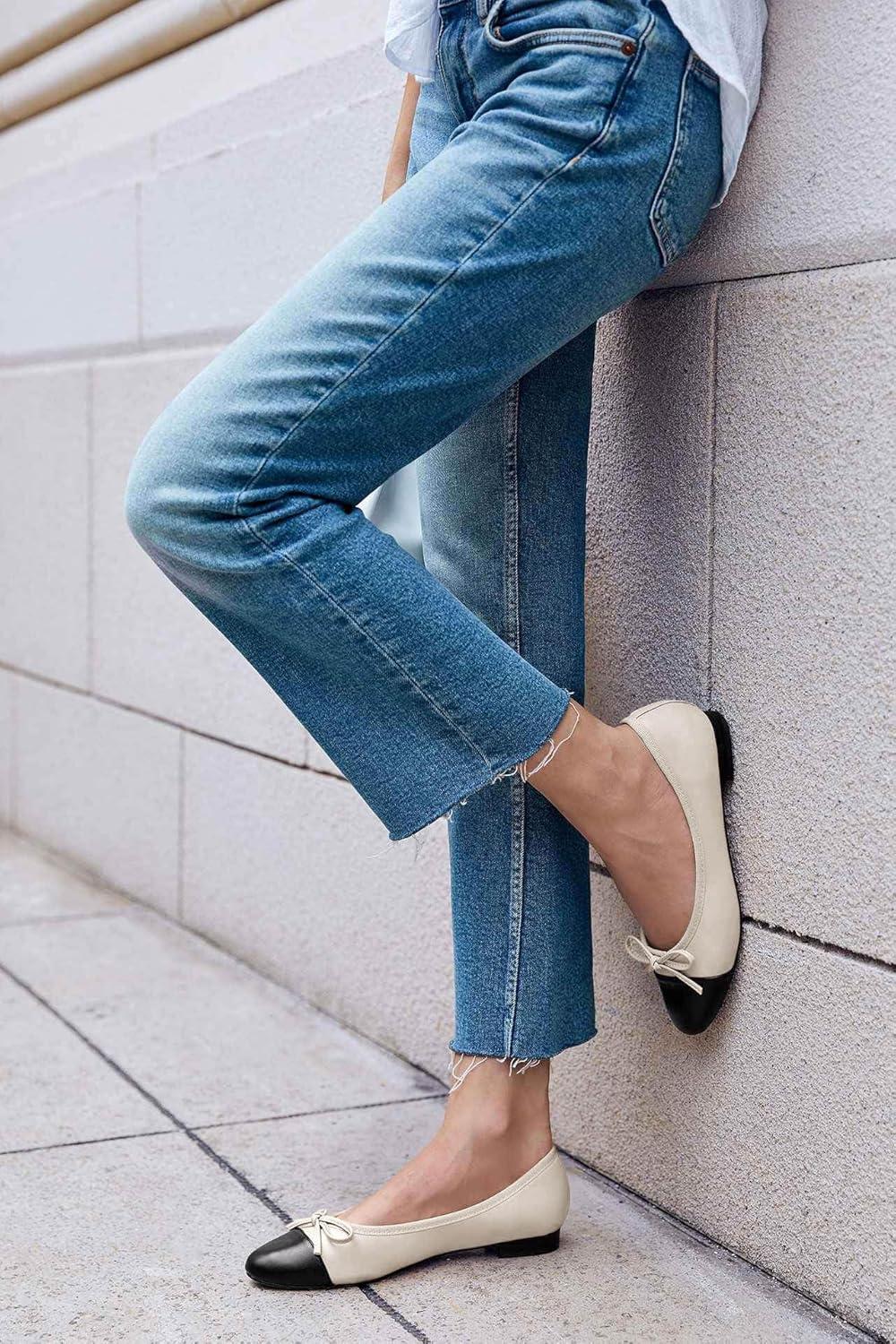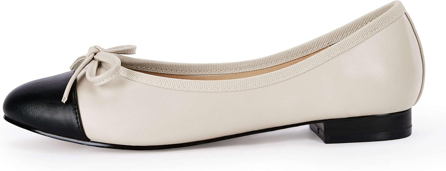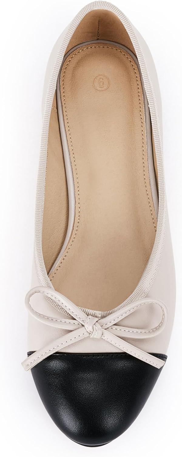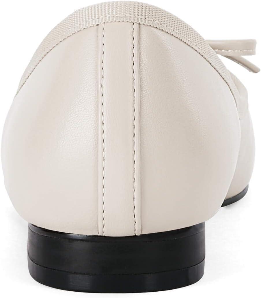 Coutgo Womens Cap Toe Ballet Flats Bow Pointed Toe Slip On Office Work Comfort Dress Party Flat Shoes(Beige)