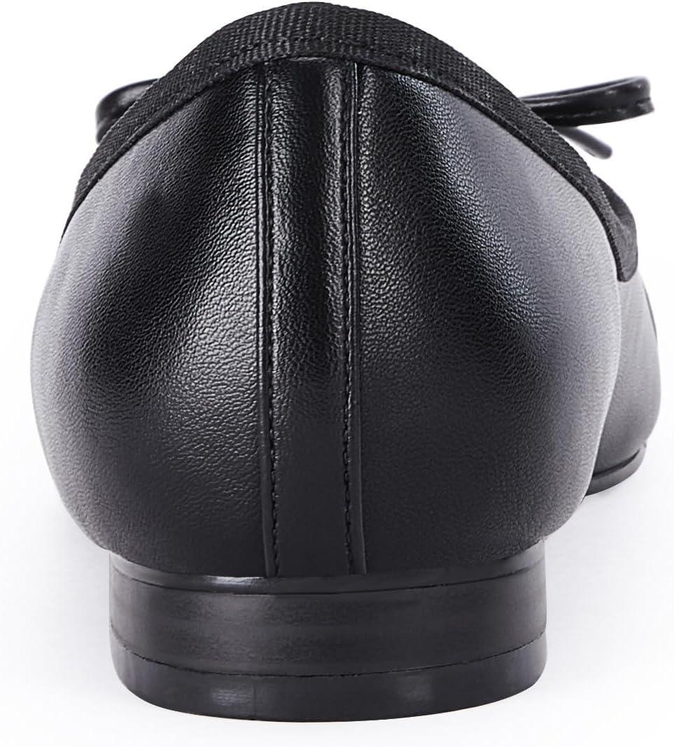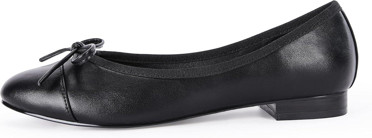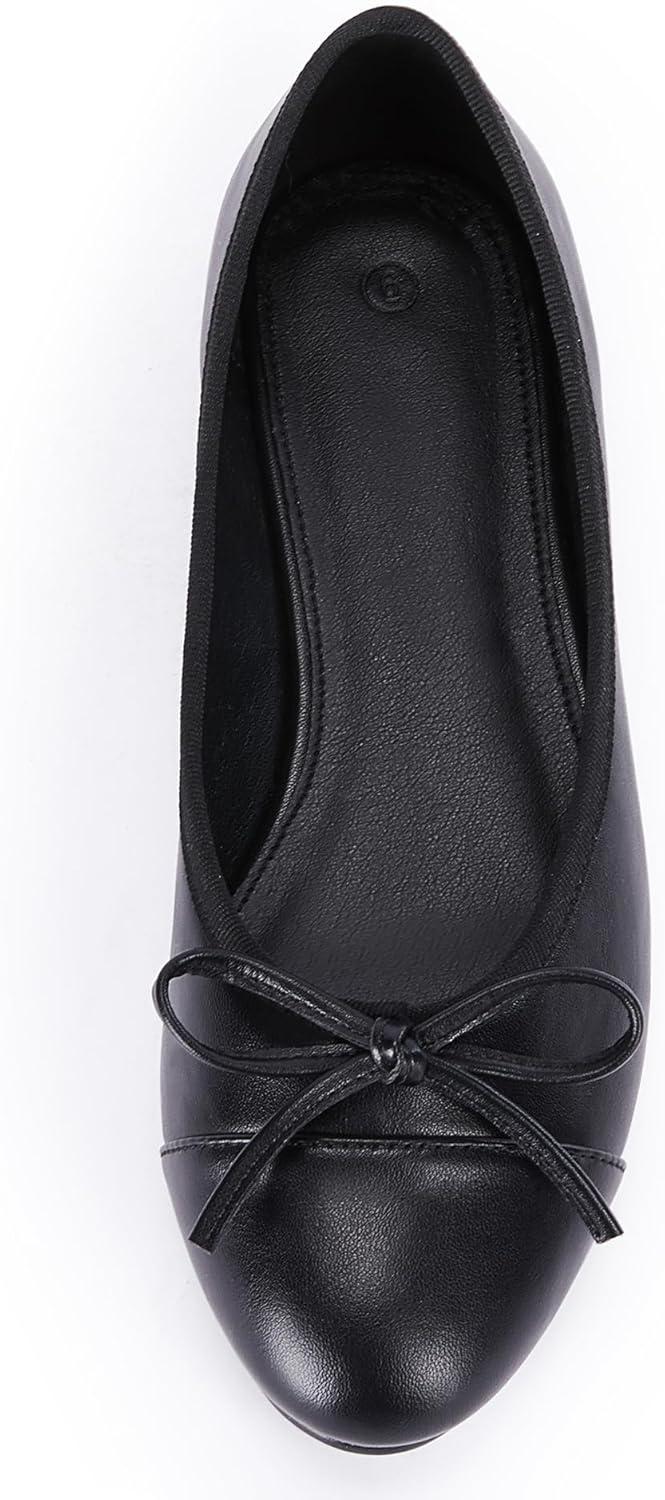 Coutgo Womens Cap Toe Ballet Flats Bow Pointed Toe Slip On Office Work Comfort Dress Party Flat Shoes(Black)
