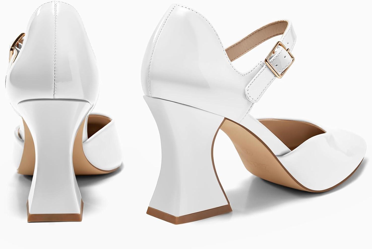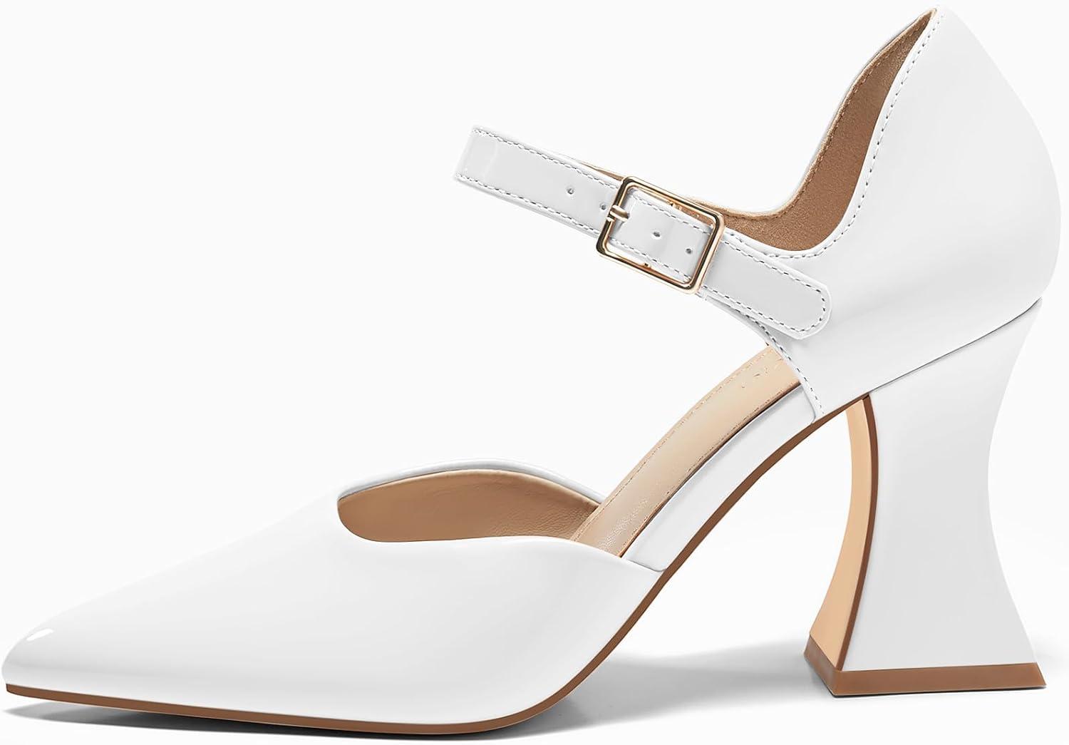 Don’t miss out on our limited-time offer: buy Coutgo Womens Chunky High Heels Closed Pointed Toe Ankle Strap Pumps Cute Dress Dance Shoes(White), get {accessory} 50% off!