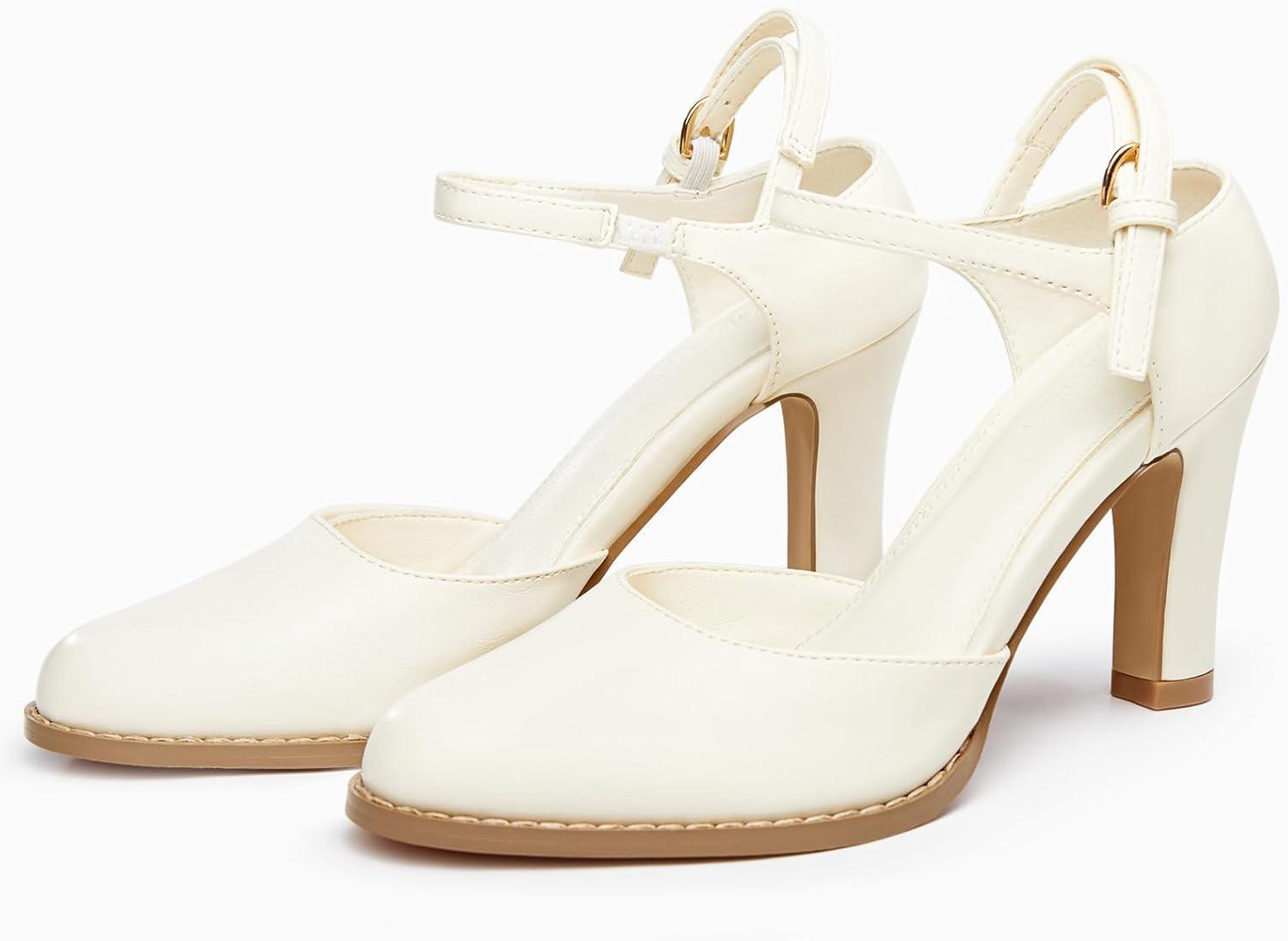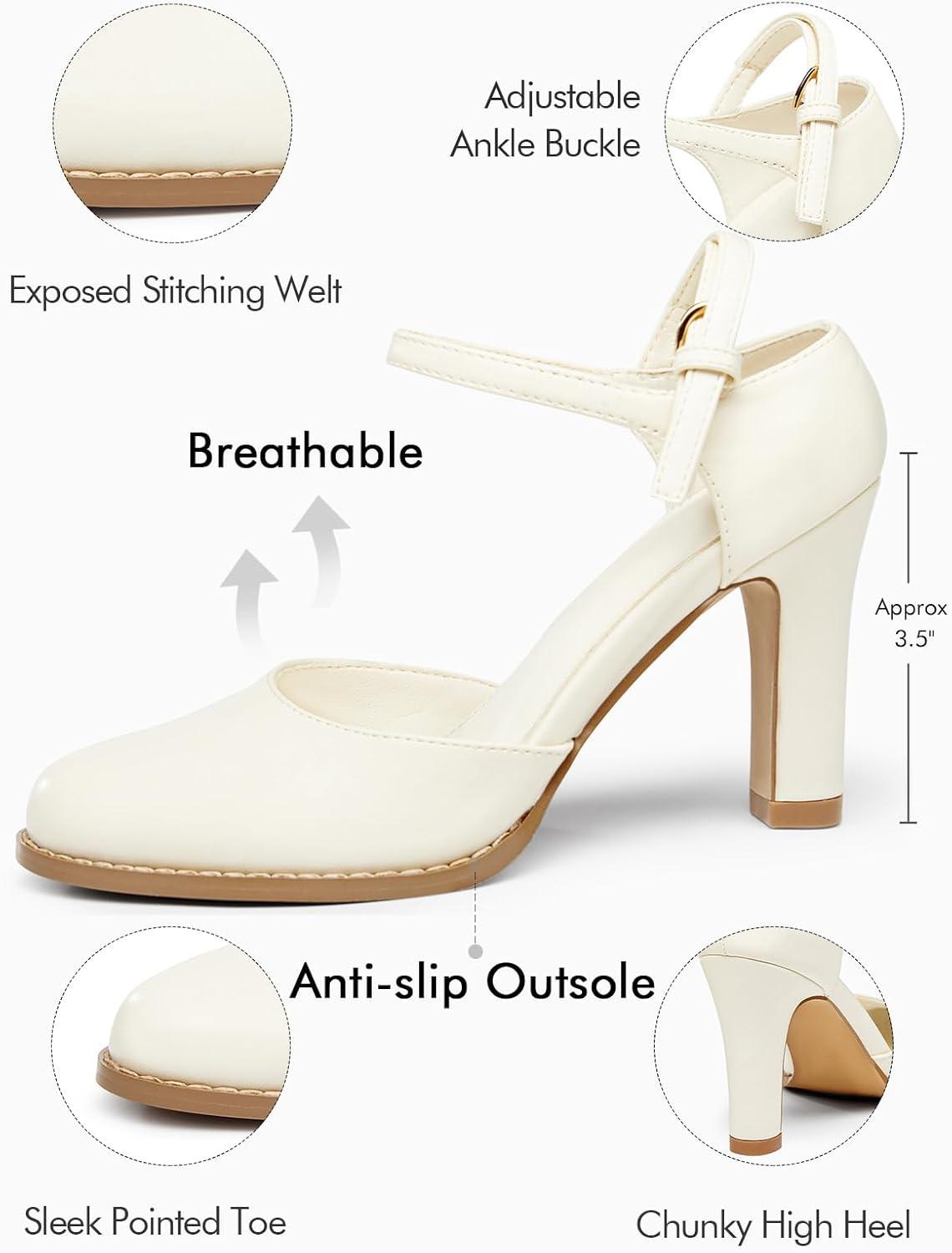 Save up to 40% on Coutgo Womens Chunky High Heels Closed Pointed Toe Ankle Strap Pumps Vintage D’Orsay Dress Party Shoes(Beige) styles during our end-of-season sale.