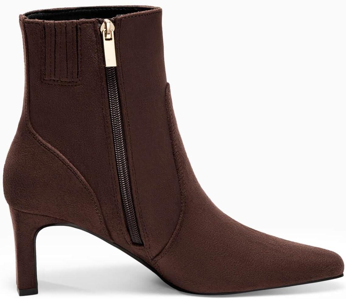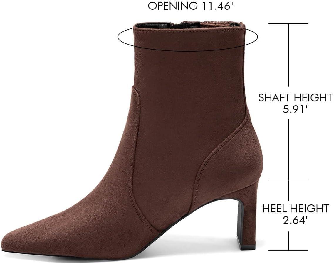 Coutgo Womens Chunky Low Heel Ankle Boots Square Pointed Toe Side Zipper Booties Faux Suede Fall Shoes(Chocolate)