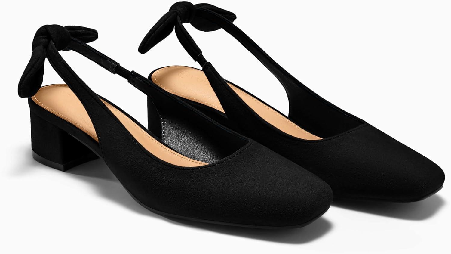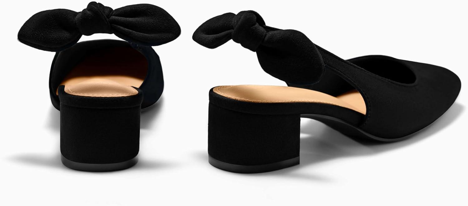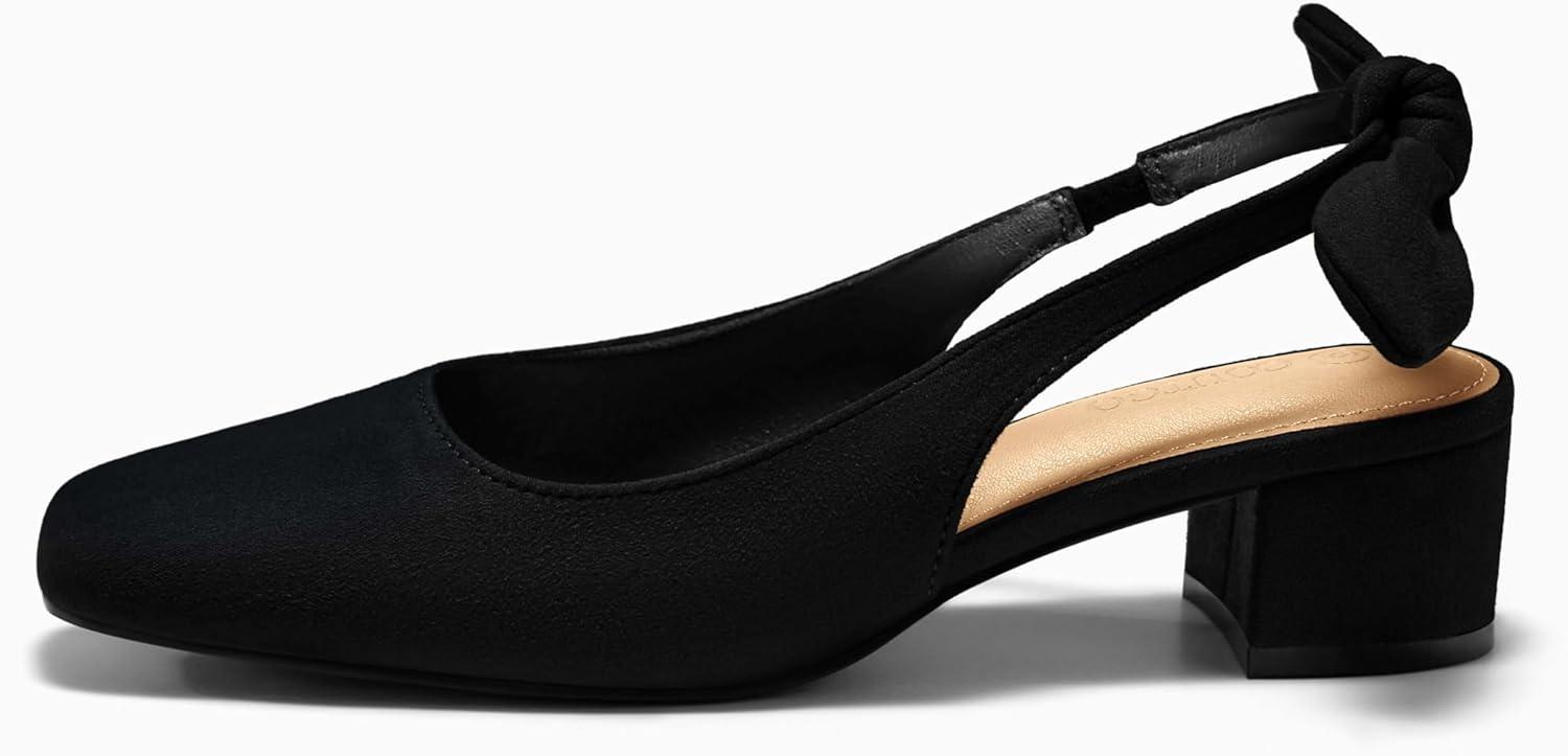 Coutgo Womens Chunky Low Heels Bow Slingback Pumps Closed Square Toe Wedding Party Dress Shoes(Black)