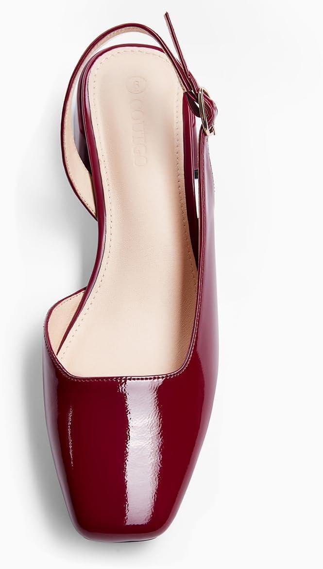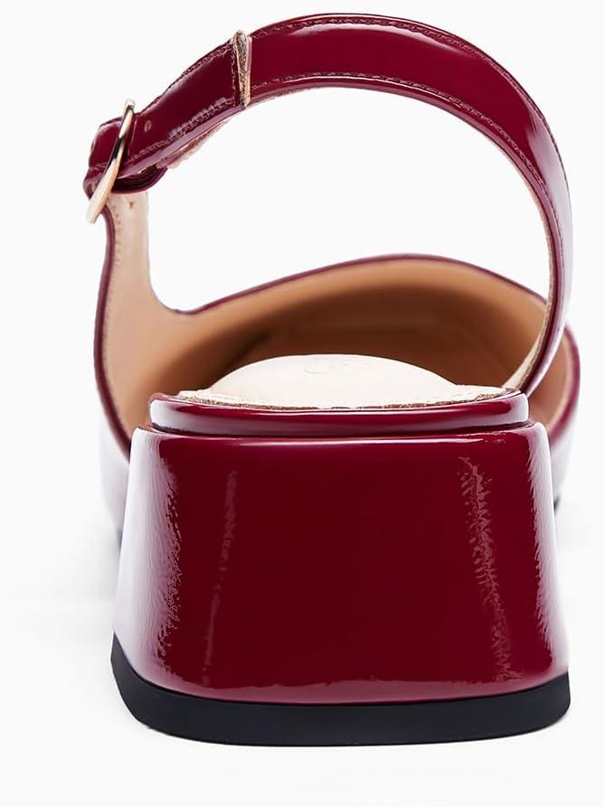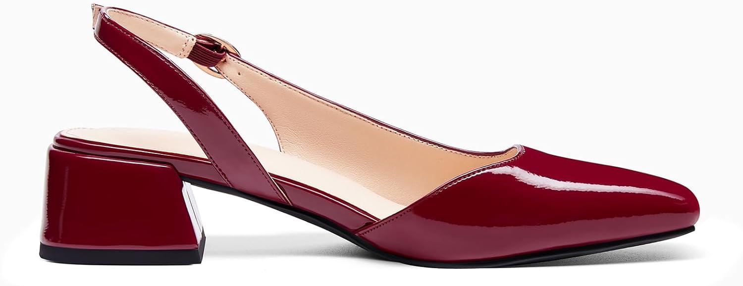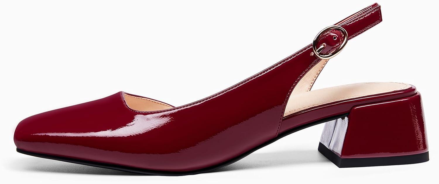 Coutgo Womens Chunky Low Heels D’Orsay Slingback Pumps Closed Square Toe Work Office Dress Shoes(Burgundy)