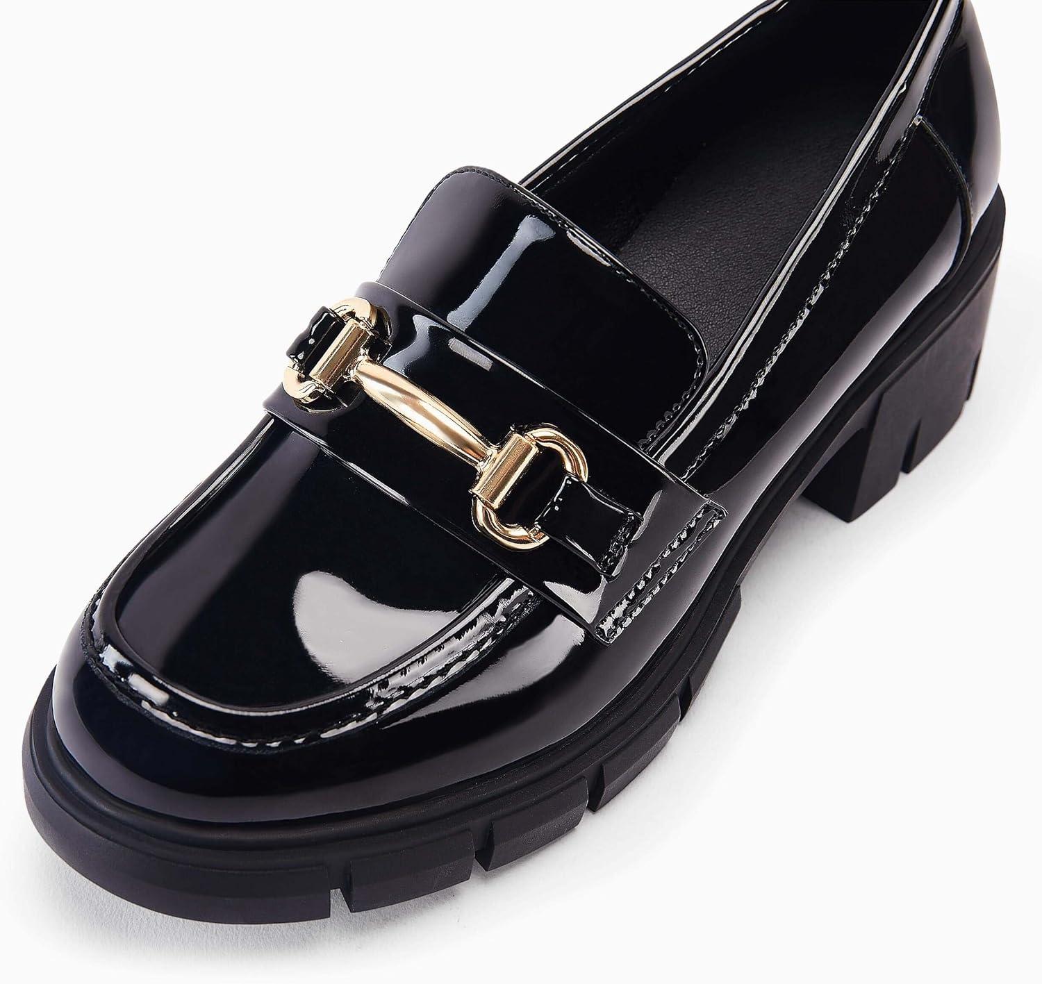Be the first to review “Coutgo Womens Chunky Platform Lug Sole Loafers Mid Heel Square Toe Dress Walking Work Shoes with Buckle Chain(Mirror Leather Black)”