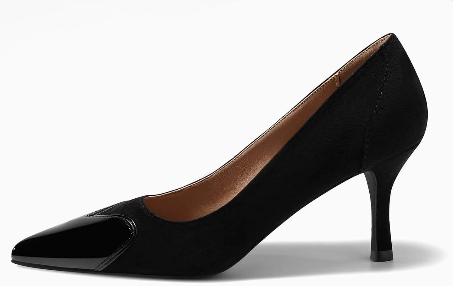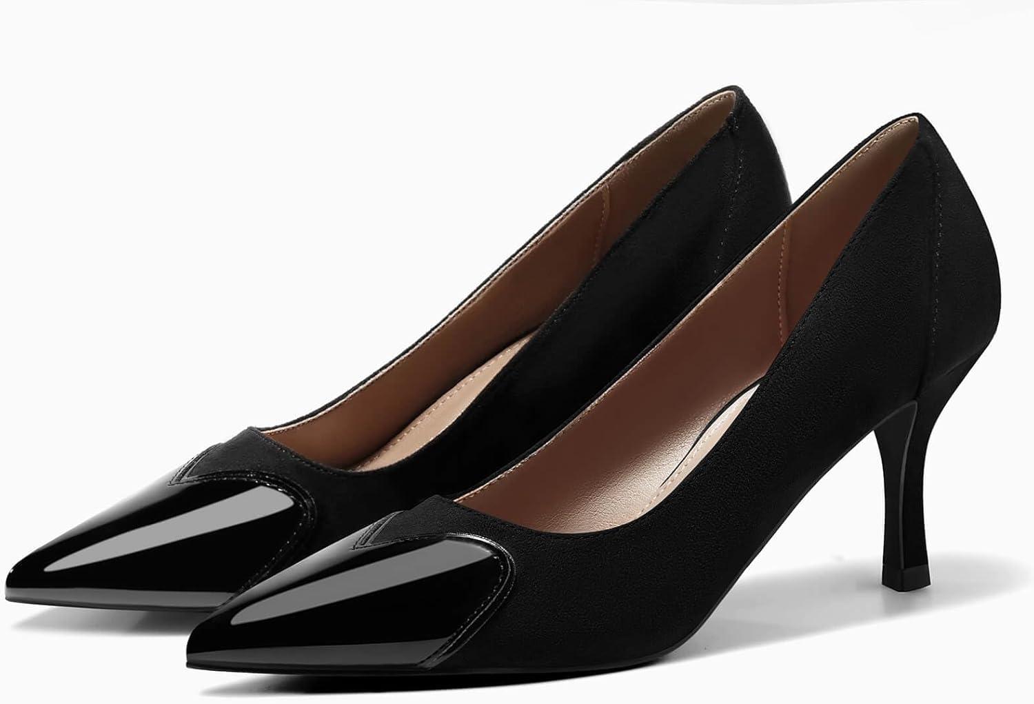 Coutgo Womens Closed Pointed Toe Pumps Heart Stiletto High Heels Wedding Bride Dress Shoes(Black)