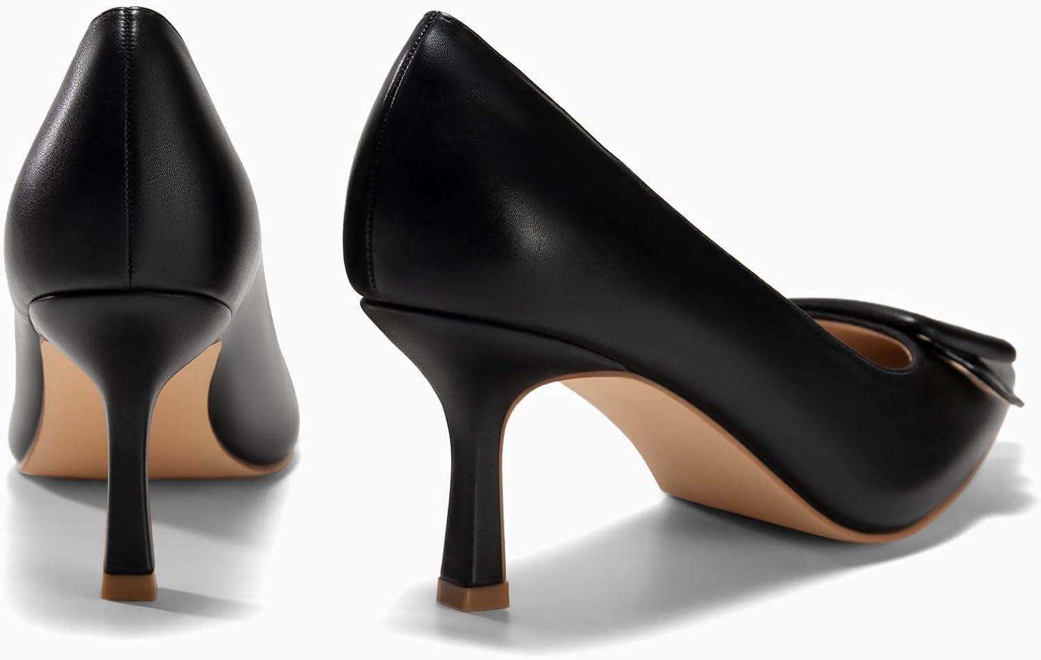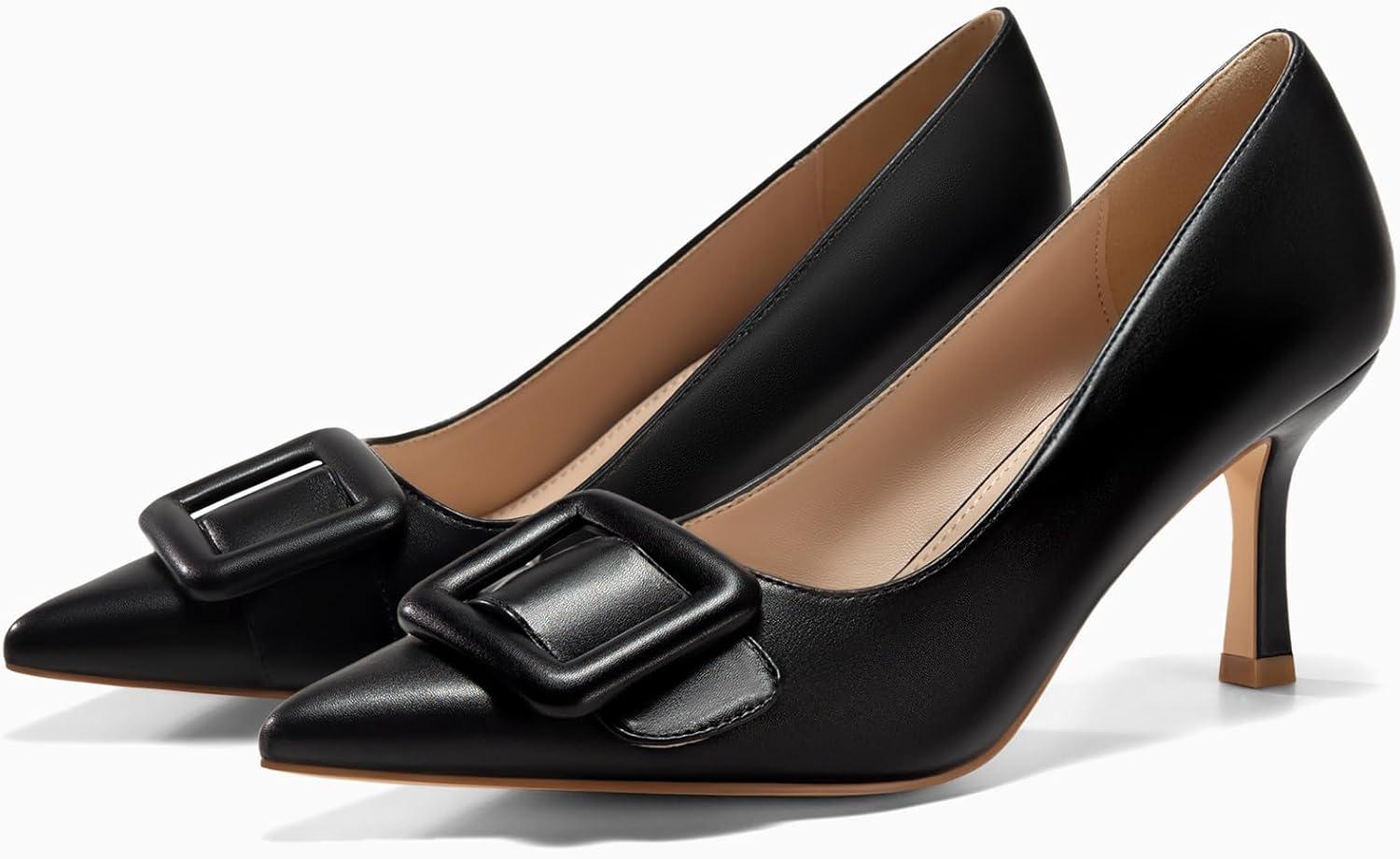 Coutgo Women’s Closed Pointed Toe Pumps Stiletto High Heels Wedding Party Dress Shoes(Cool Black(leather))