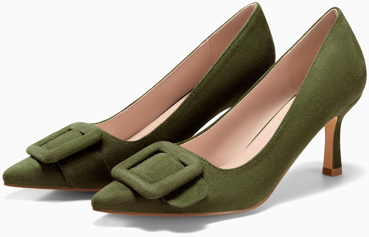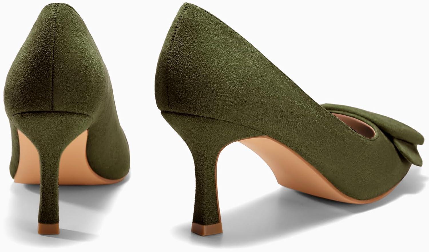 Coutgo Women’s Closed Pointed Toe Pumps Stiletto High Heels Wedding Party Dress Shoes(Green(suede))