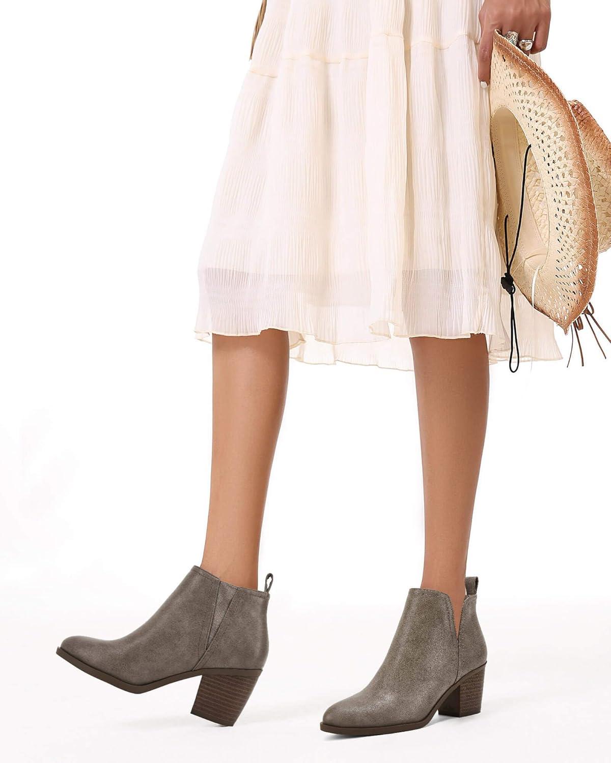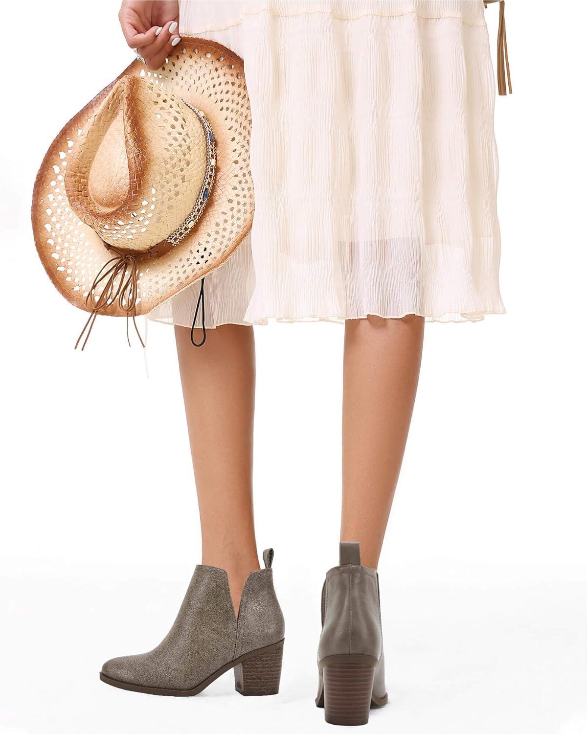 Get your hands on our exclusive Coutgo Womens Cut Out Ankle Boots Chunky Stacked Heel Almond Toe Slip on Western Booties(Taupe) collection, now at a discounted price.