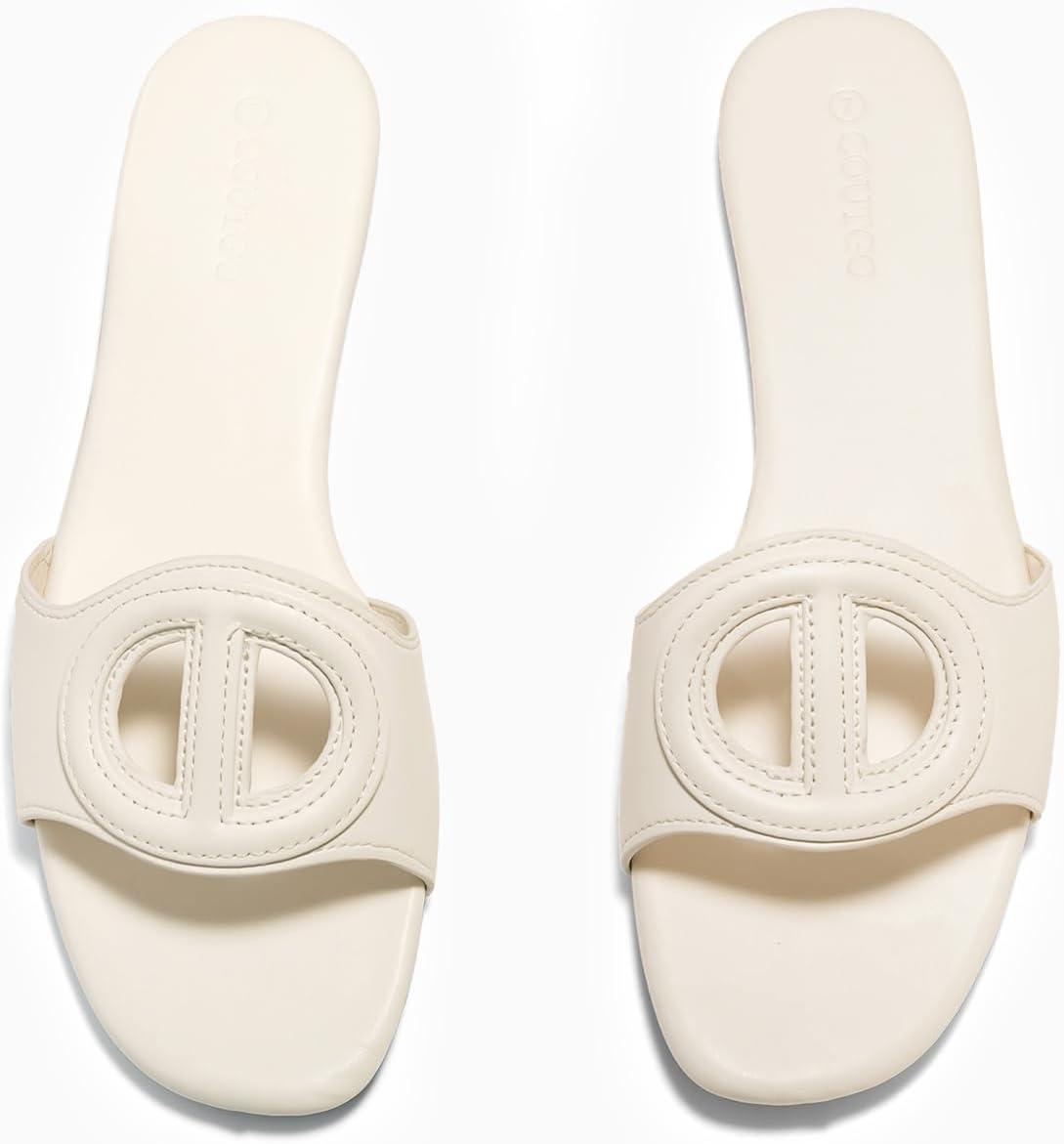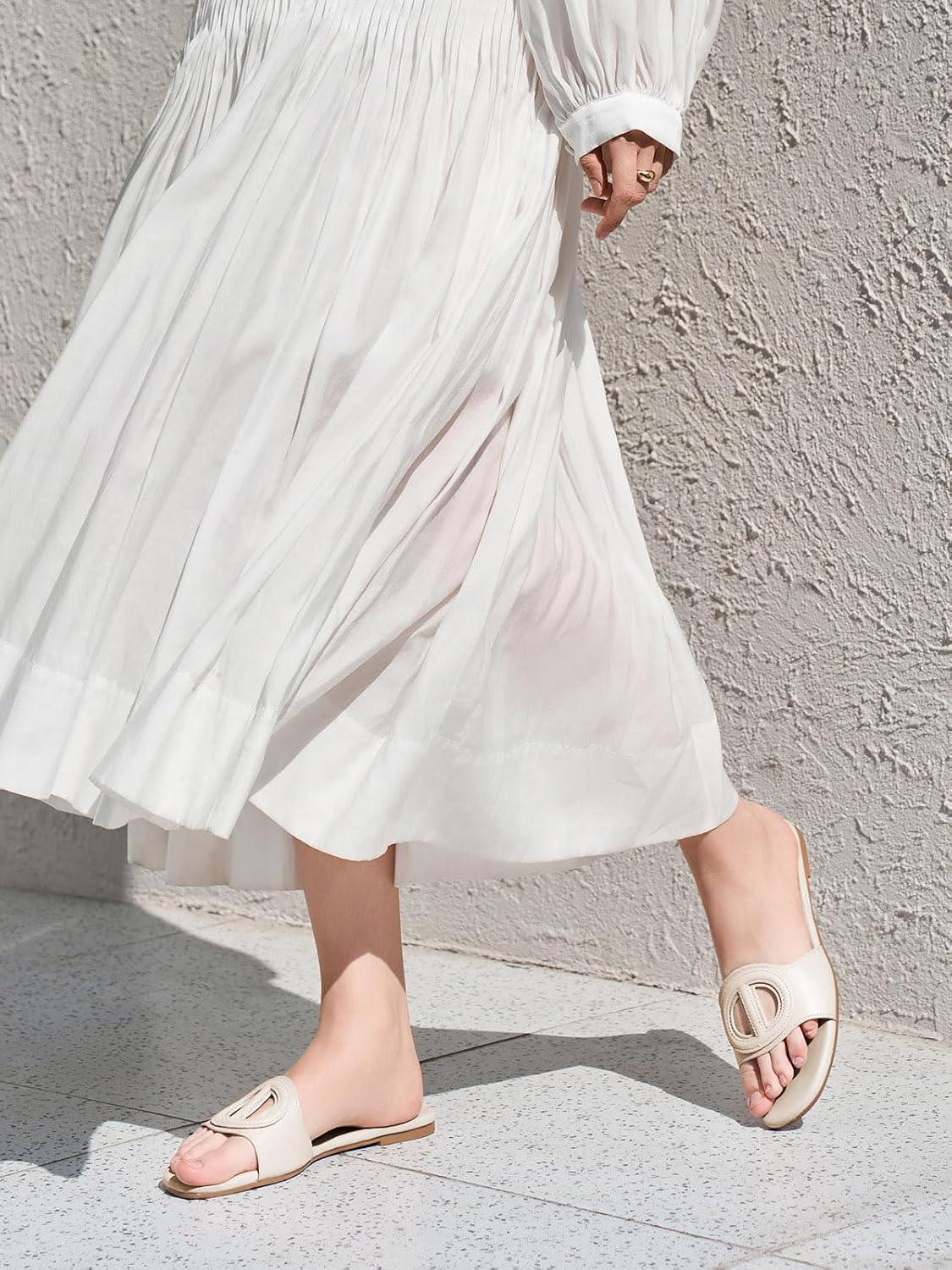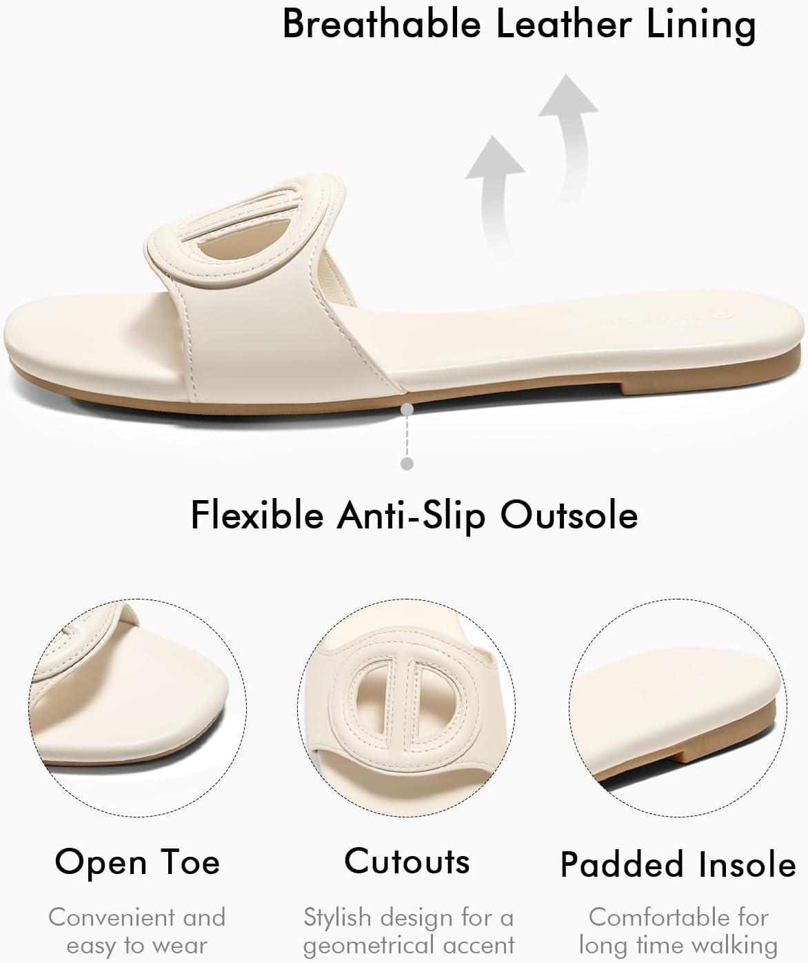 Get the Coutgo Womens Dressy Flat Sandals Open Toe Slip on Leather Summer Beach Slide Sandals(Beige) you’ve been eyeing at a discounted price during our seasonal sale event.