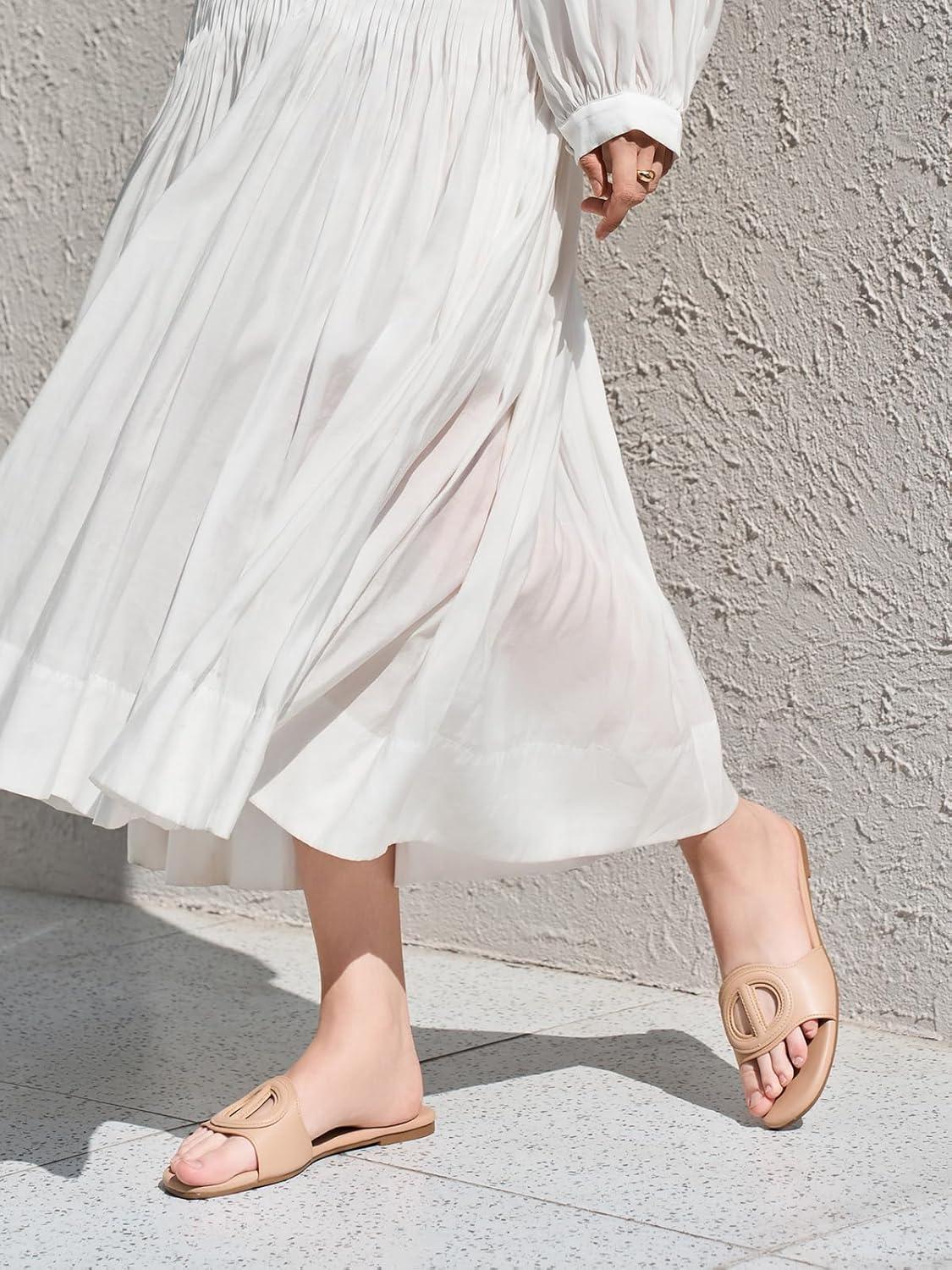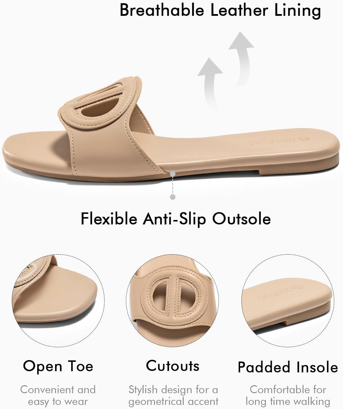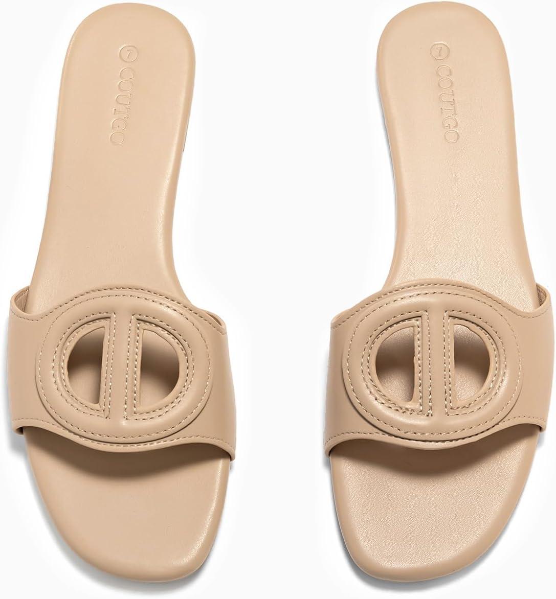 Get a free gift with your purchase of Coutgo Womens Dressy Flat Sandals Open Toe Slip on Leather Summer Beach Slide Sandals(Khaki). Limited quantities available!