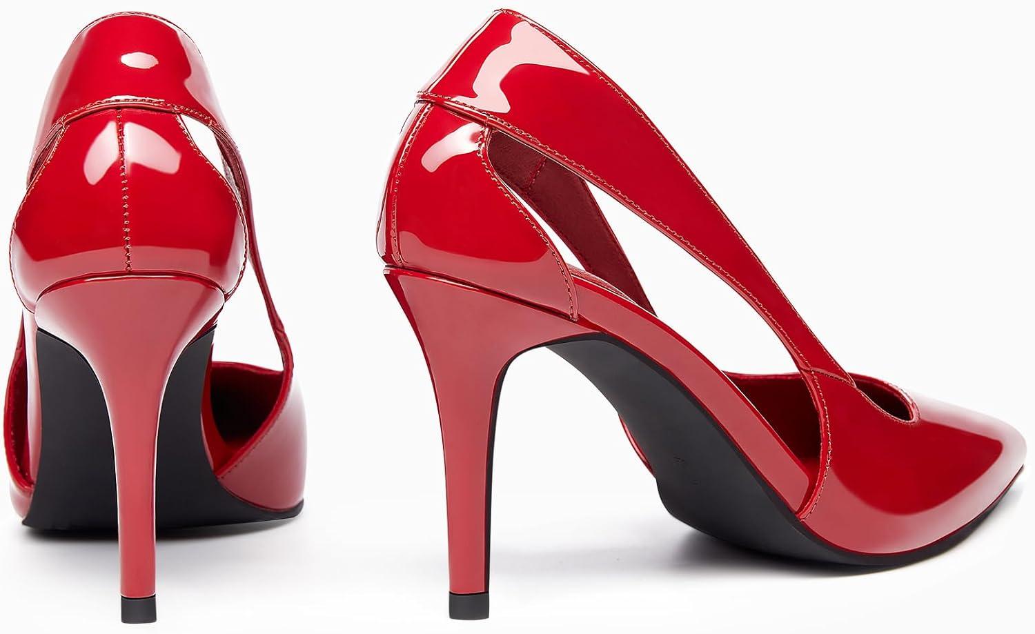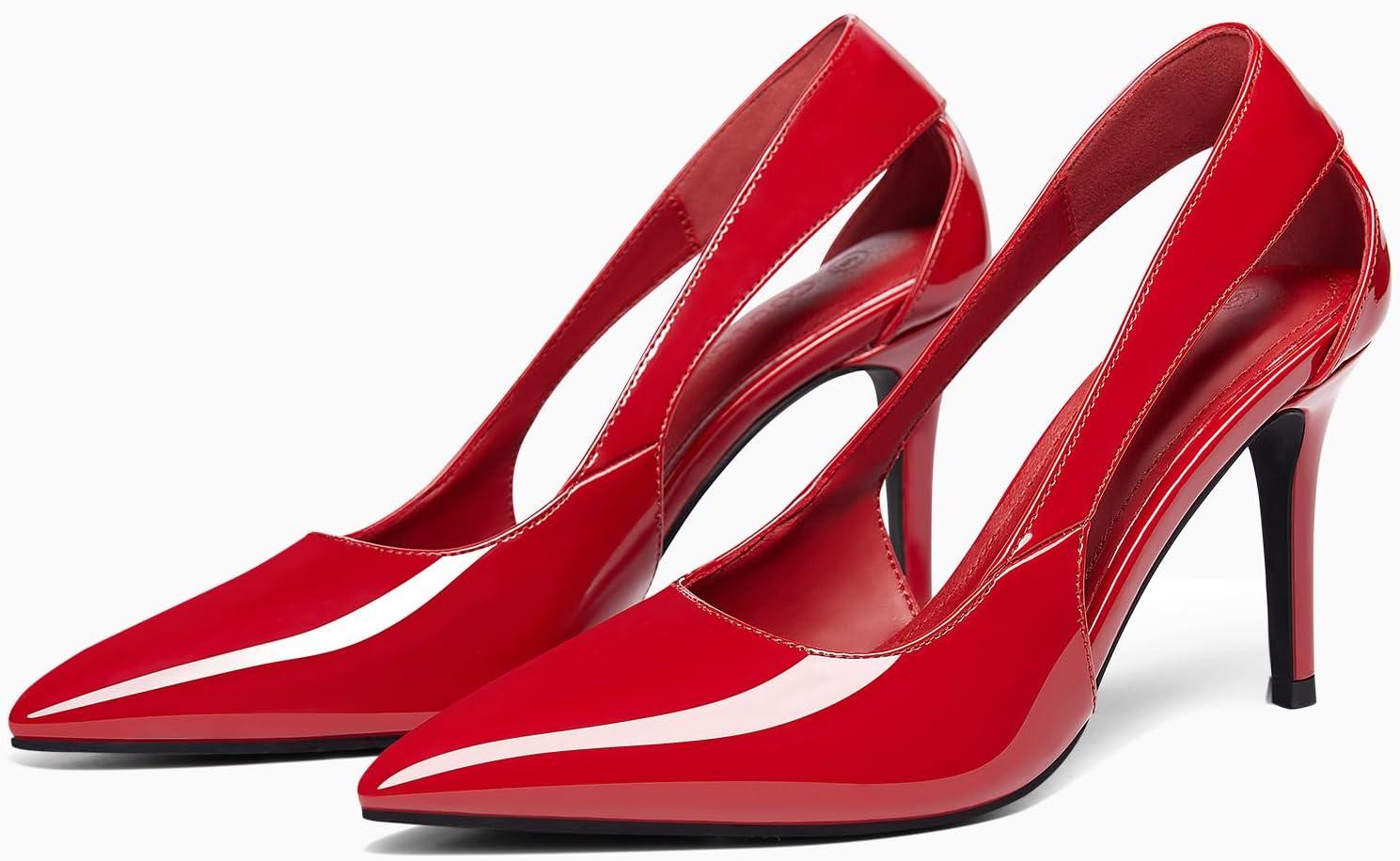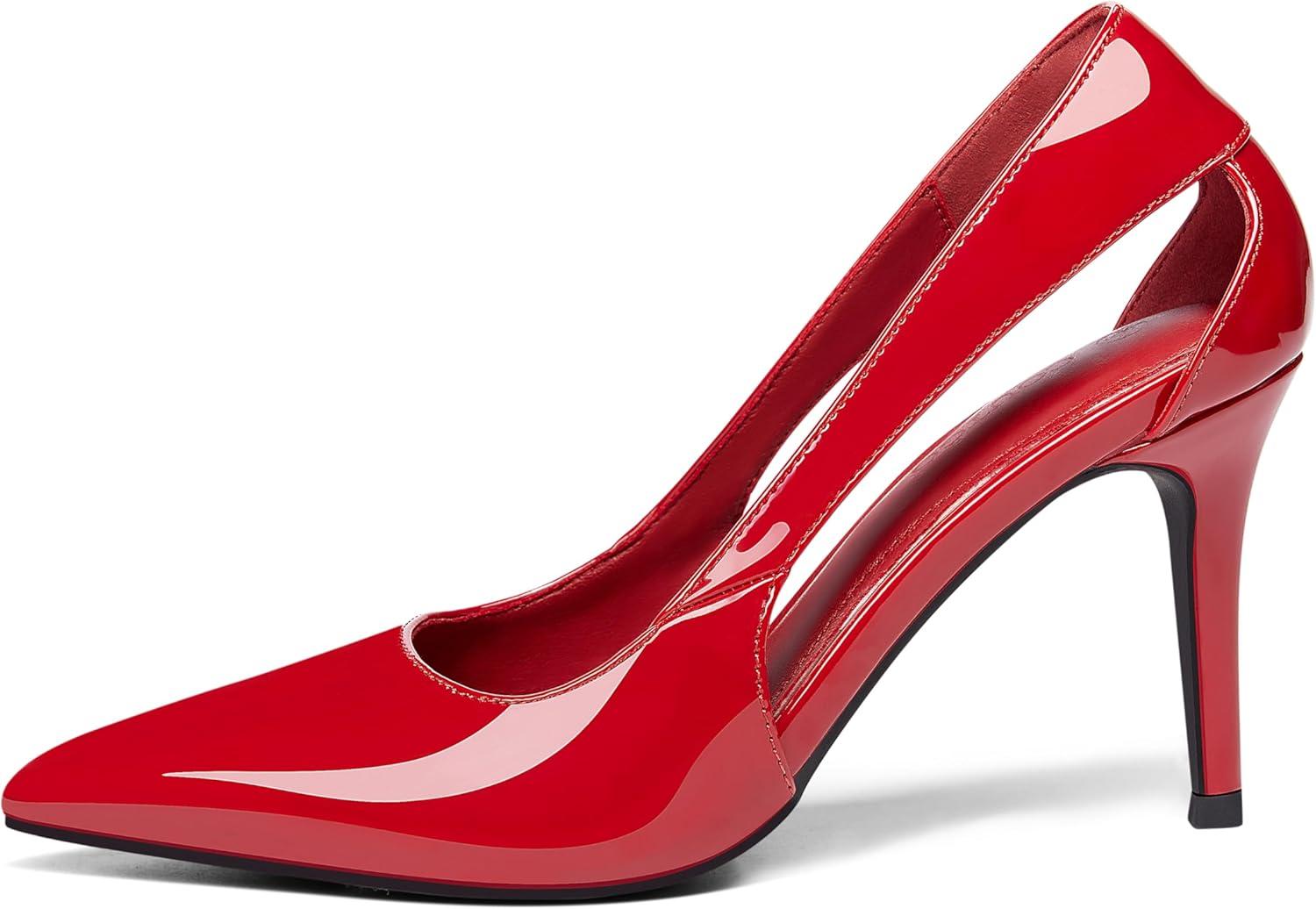 Coutgo Womens Dressy Heels Shoes Closed Pointed Toe Cut Out Pumps Casual Work Shoes(Red)