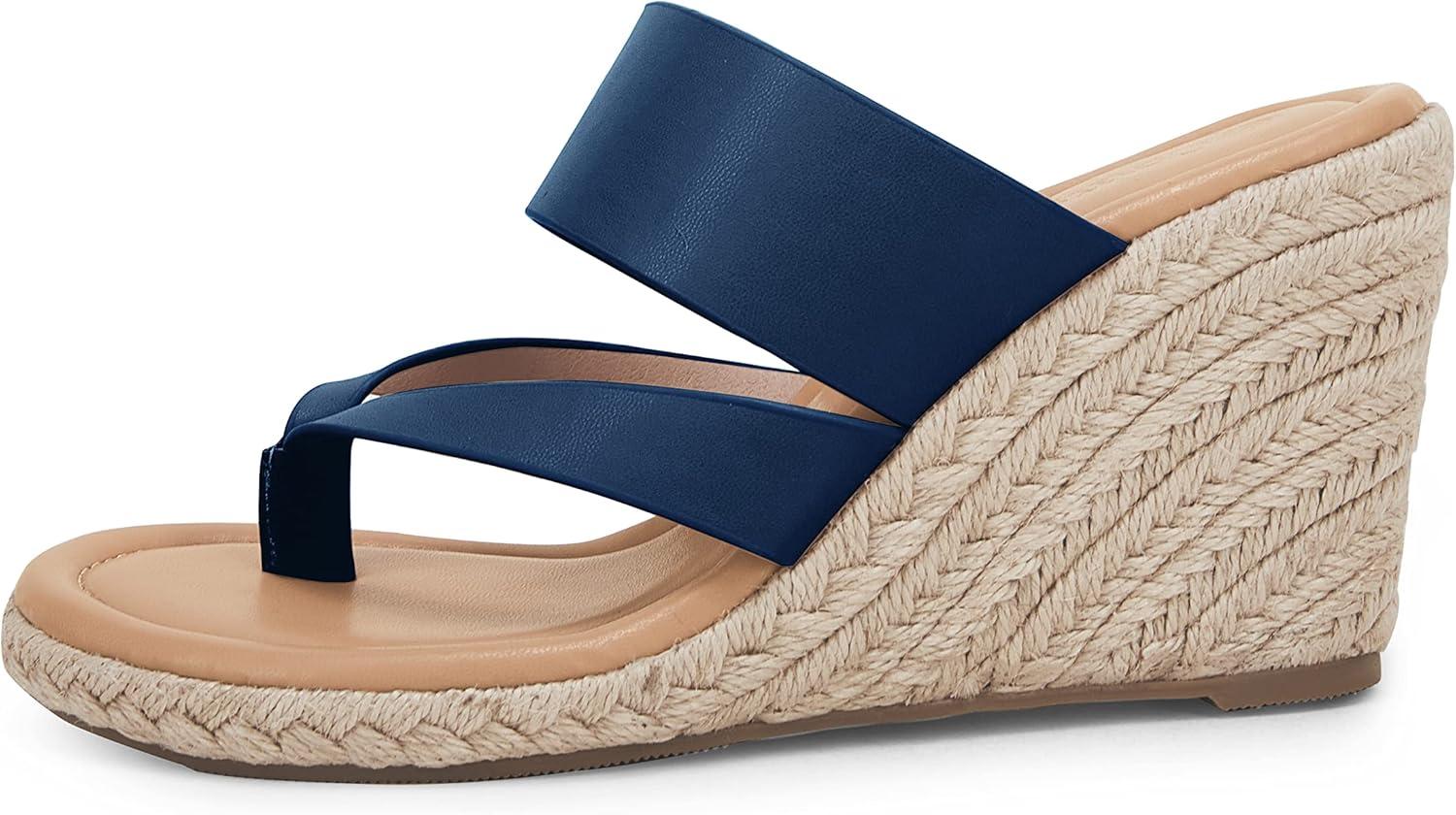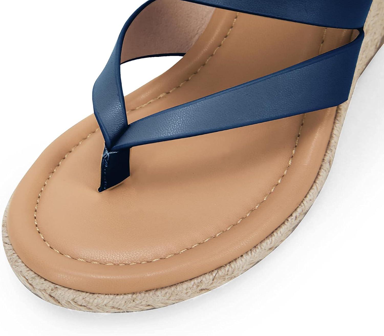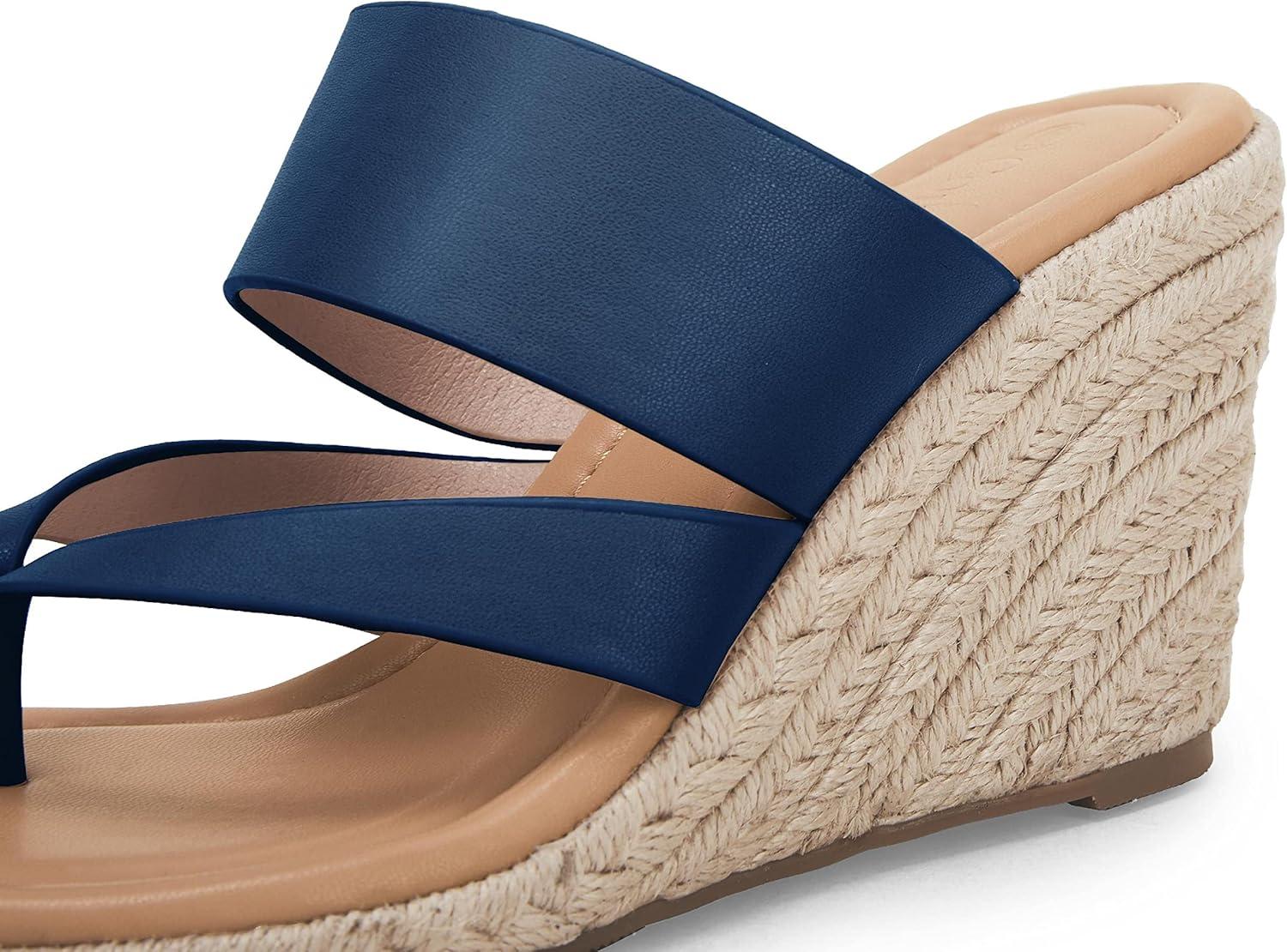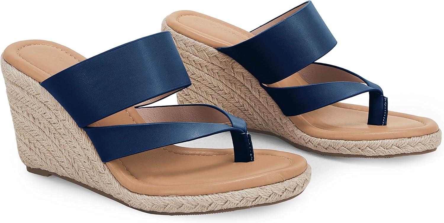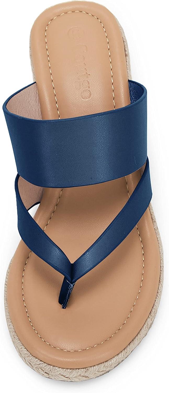 Coutgo Women’s Espadrille Wedge Sandals Platform Thong Leather Strap Slides Backless Slip On Summer Casual Flip Flops(Navy)