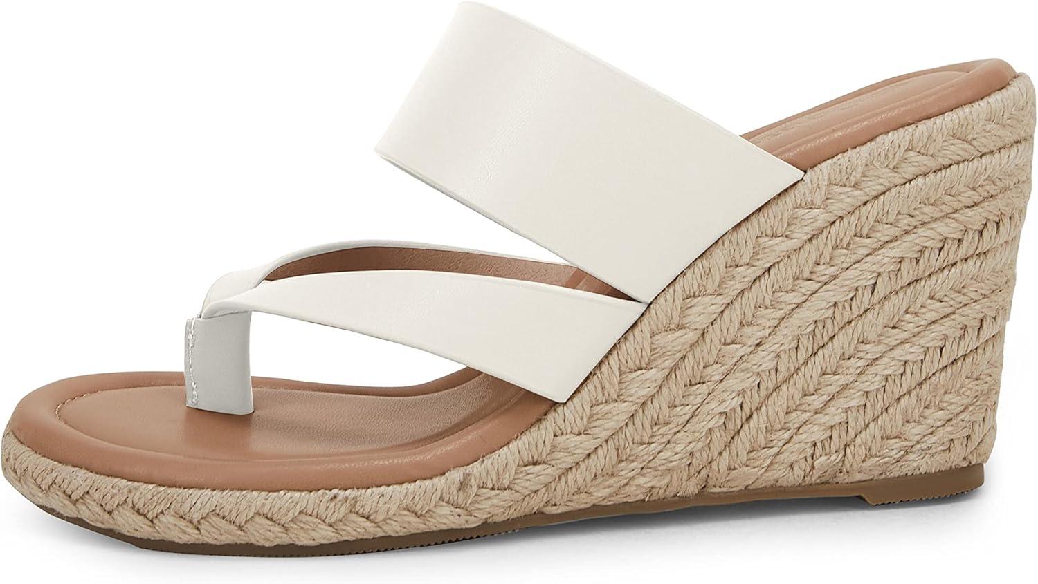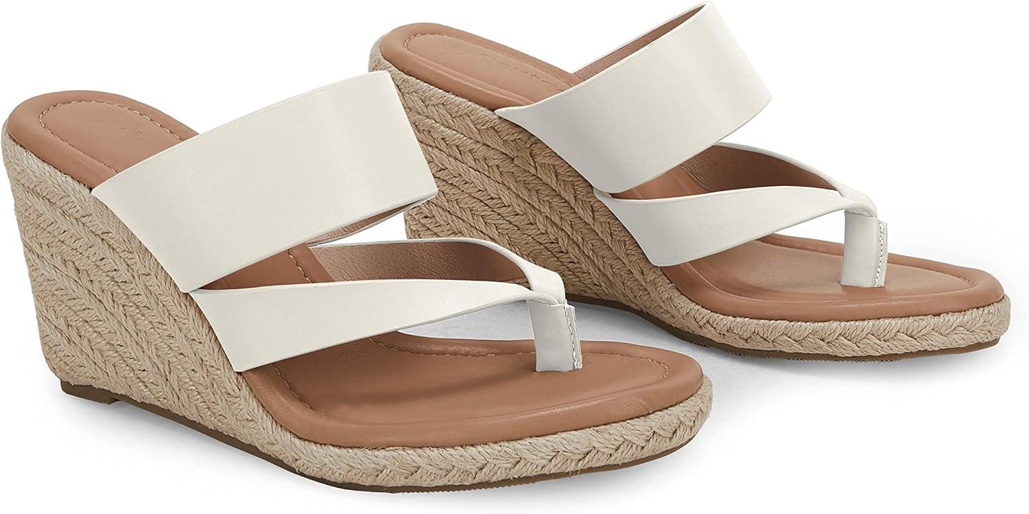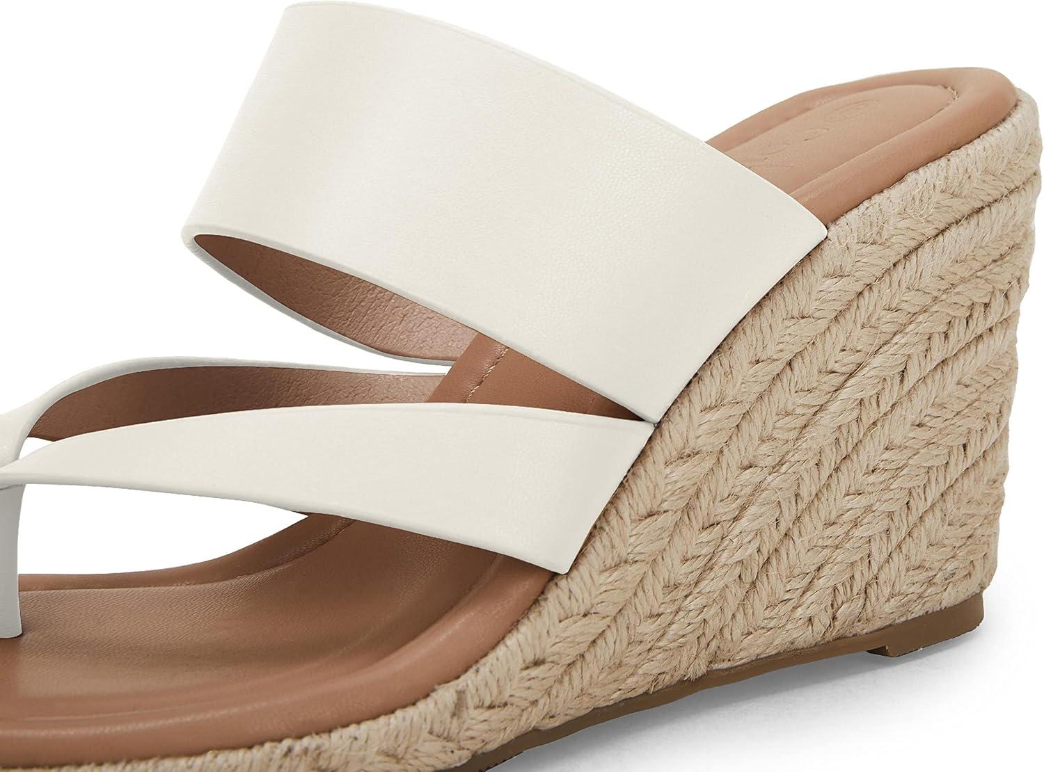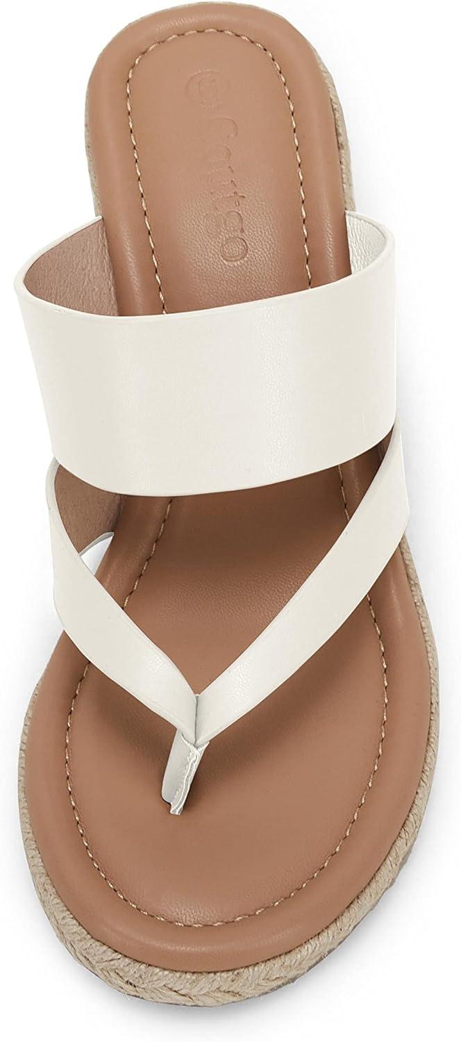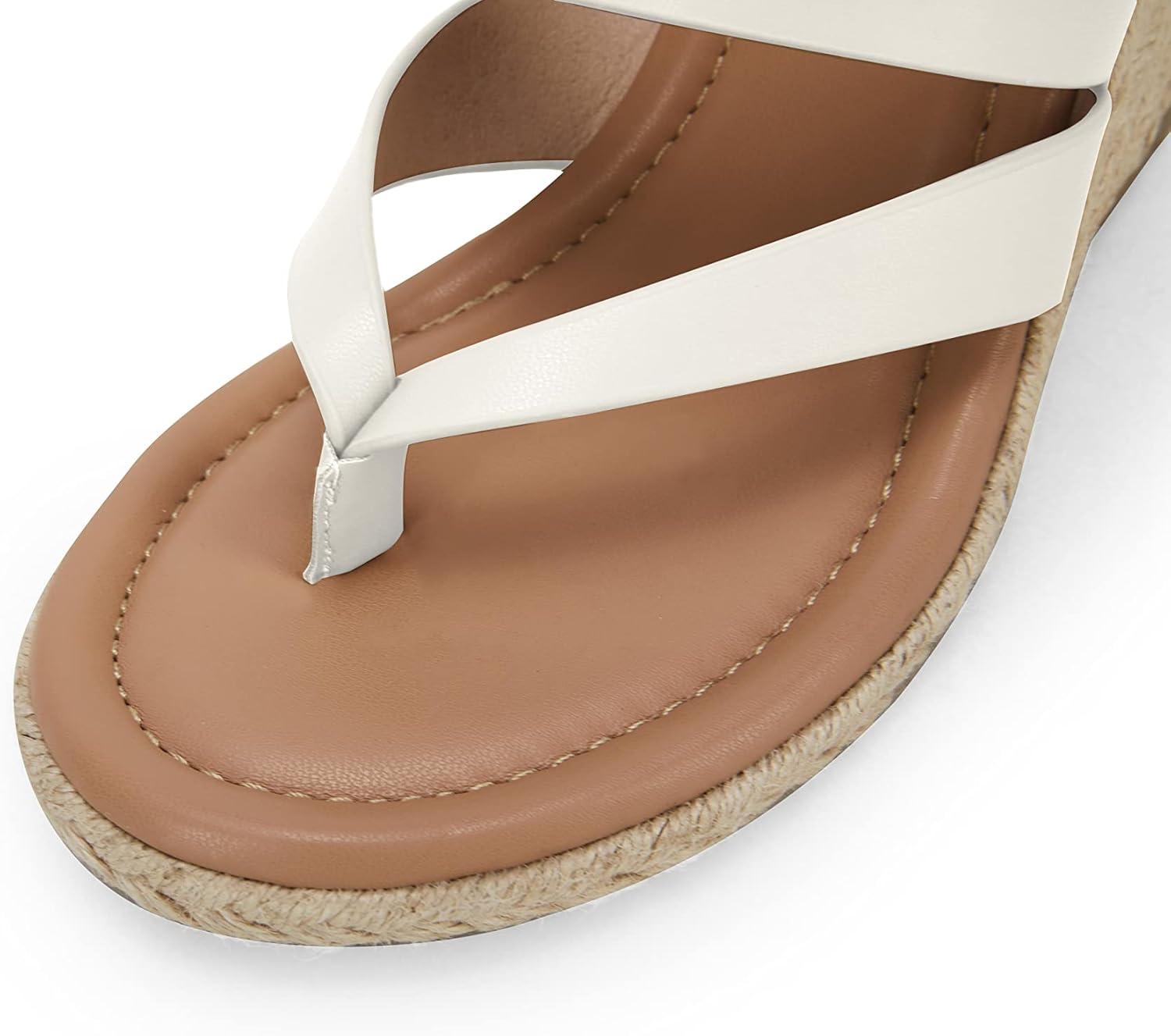 Coutgo Women’s Espadrille Wedge Sandals Platform Thong Leather Strap Slides Backless Slip On Summer Casual Flip Flops(White)