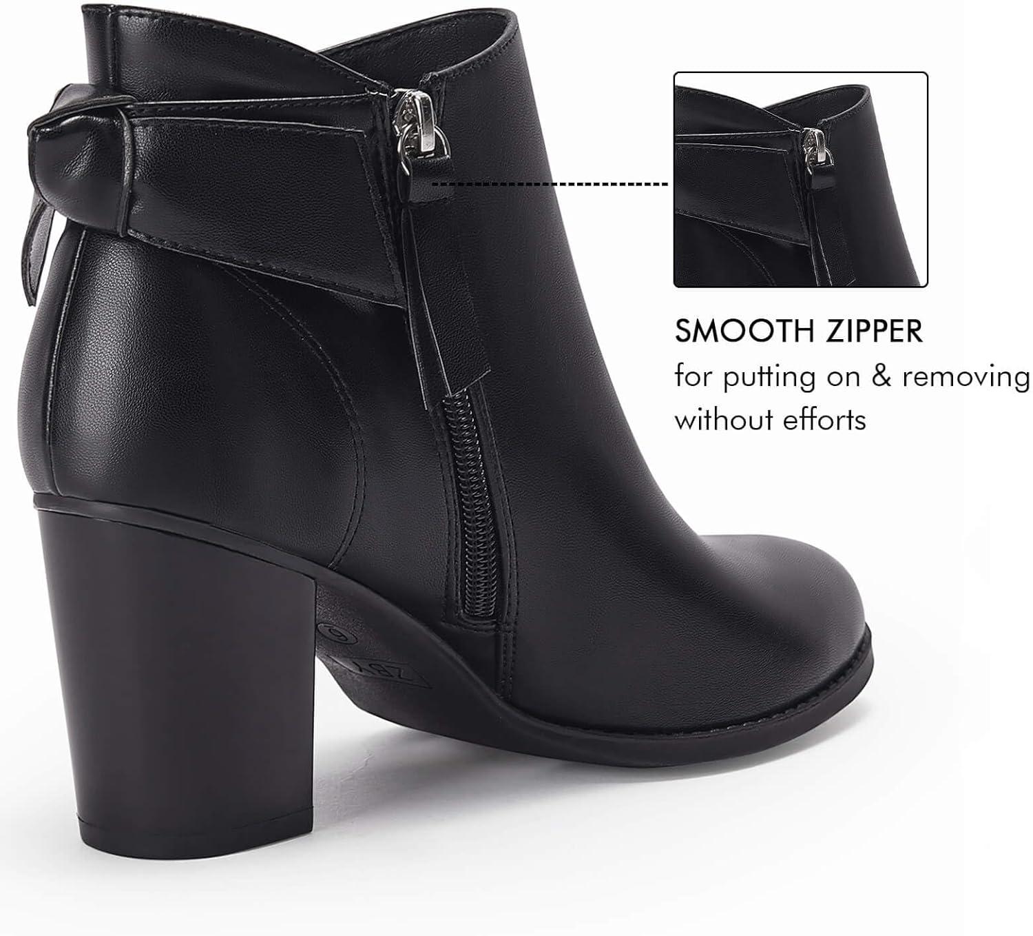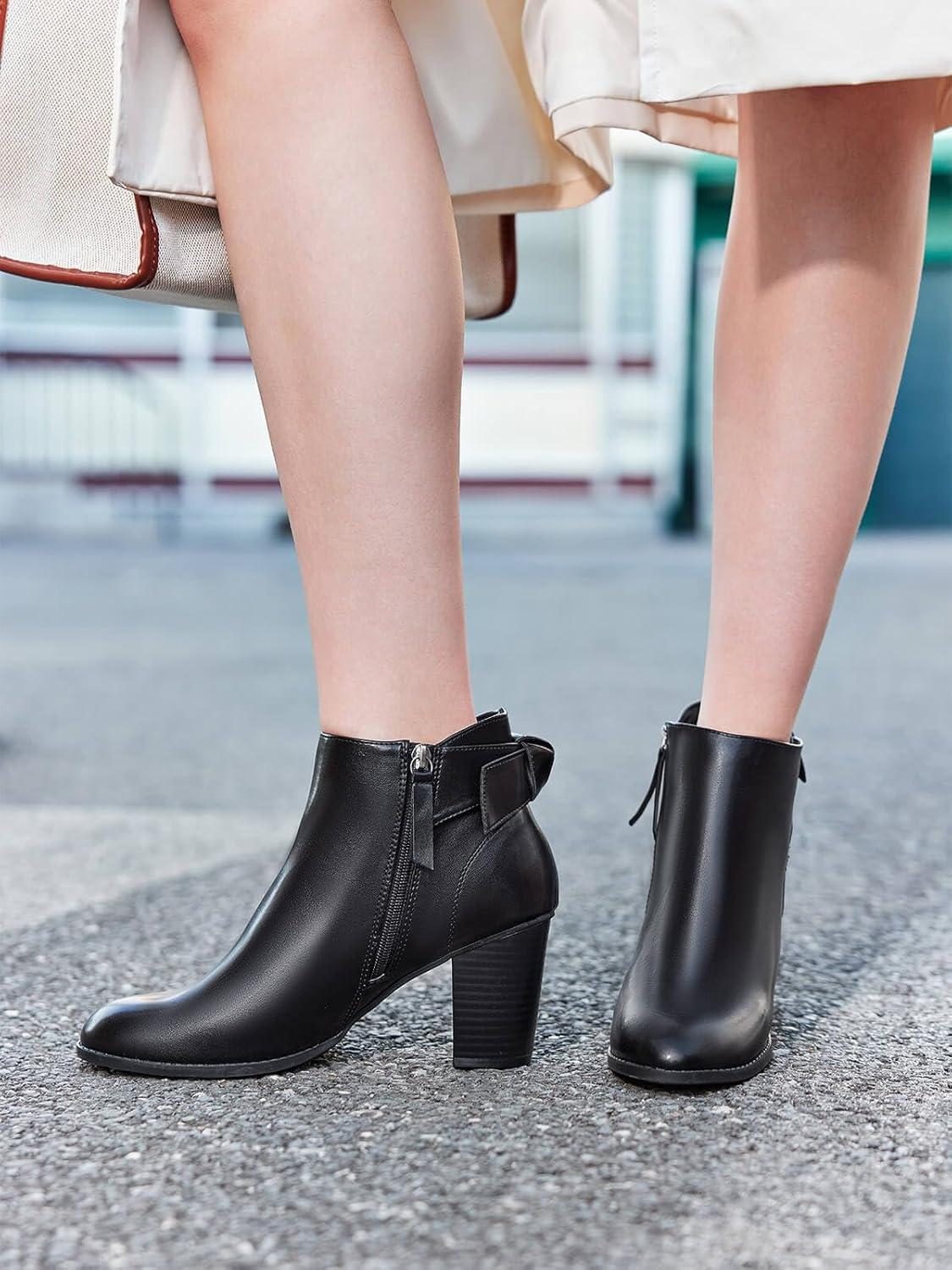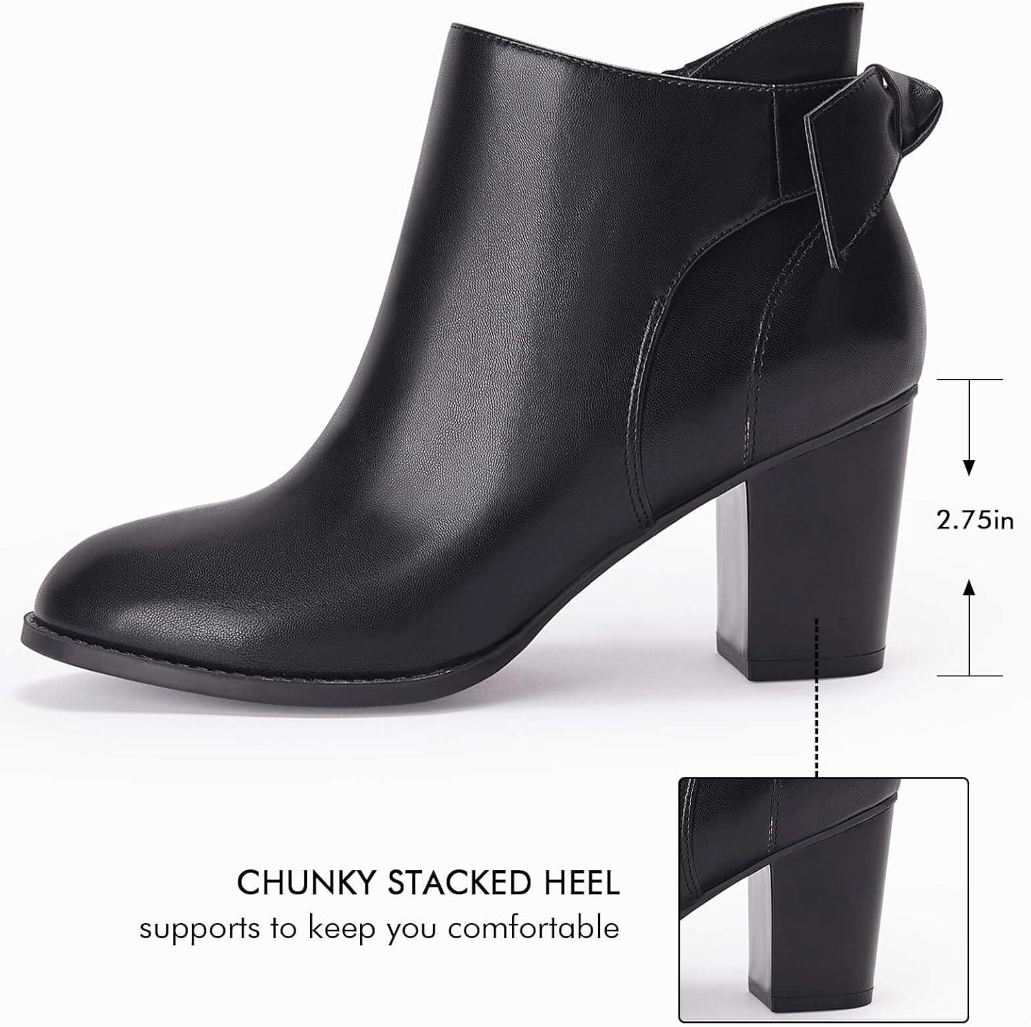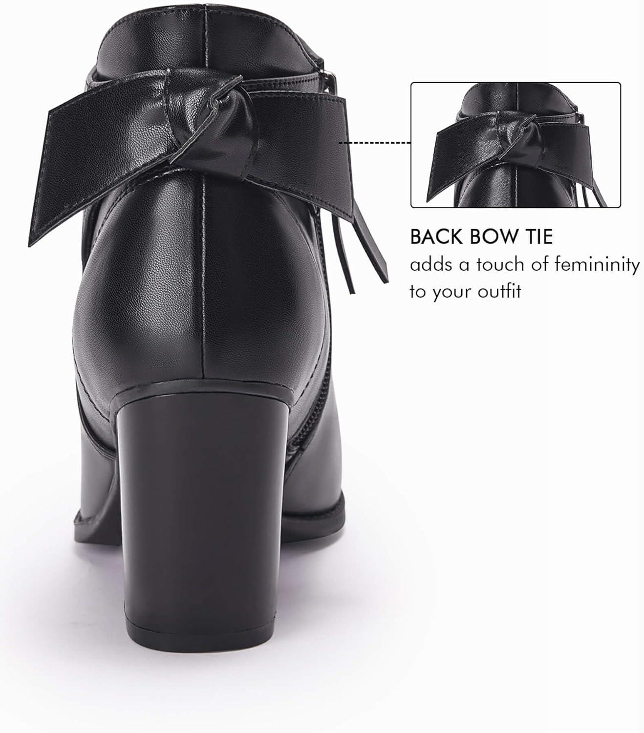 Coutgo Women’s Fall Ankle Boots Shoes Chunky Block Stacked Heel Bow Tie Pointed Toe Dress Booties Side Zipper(Pu Black)