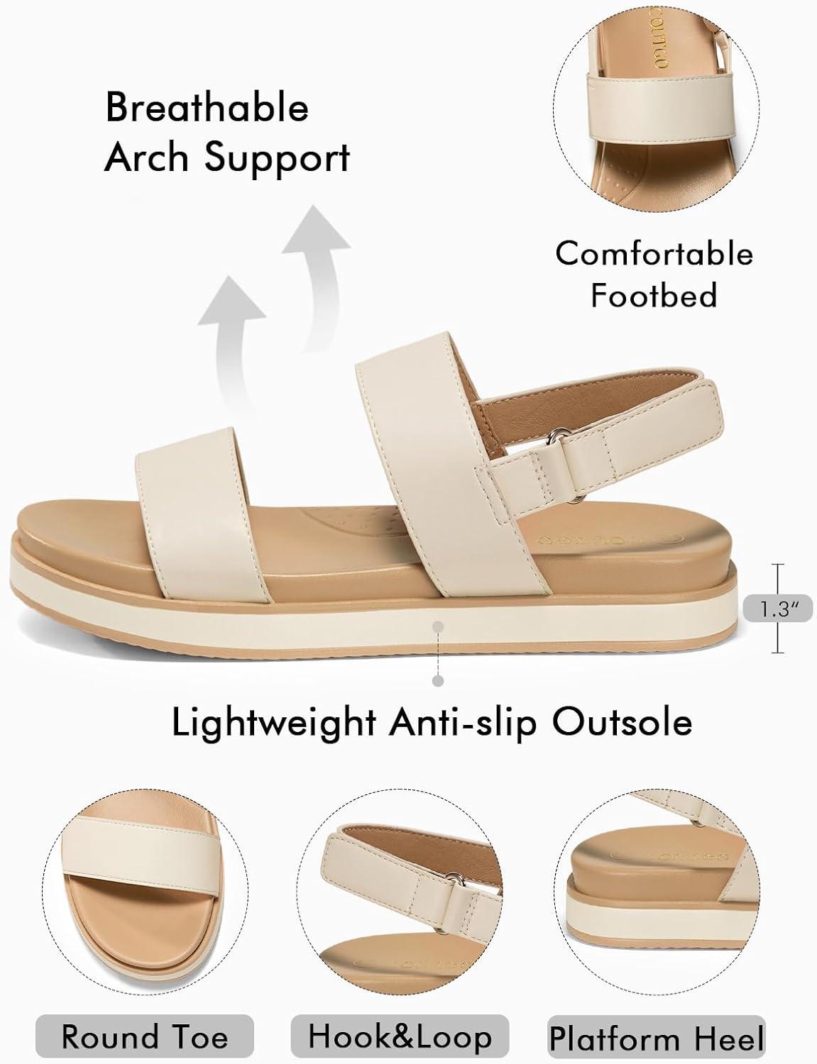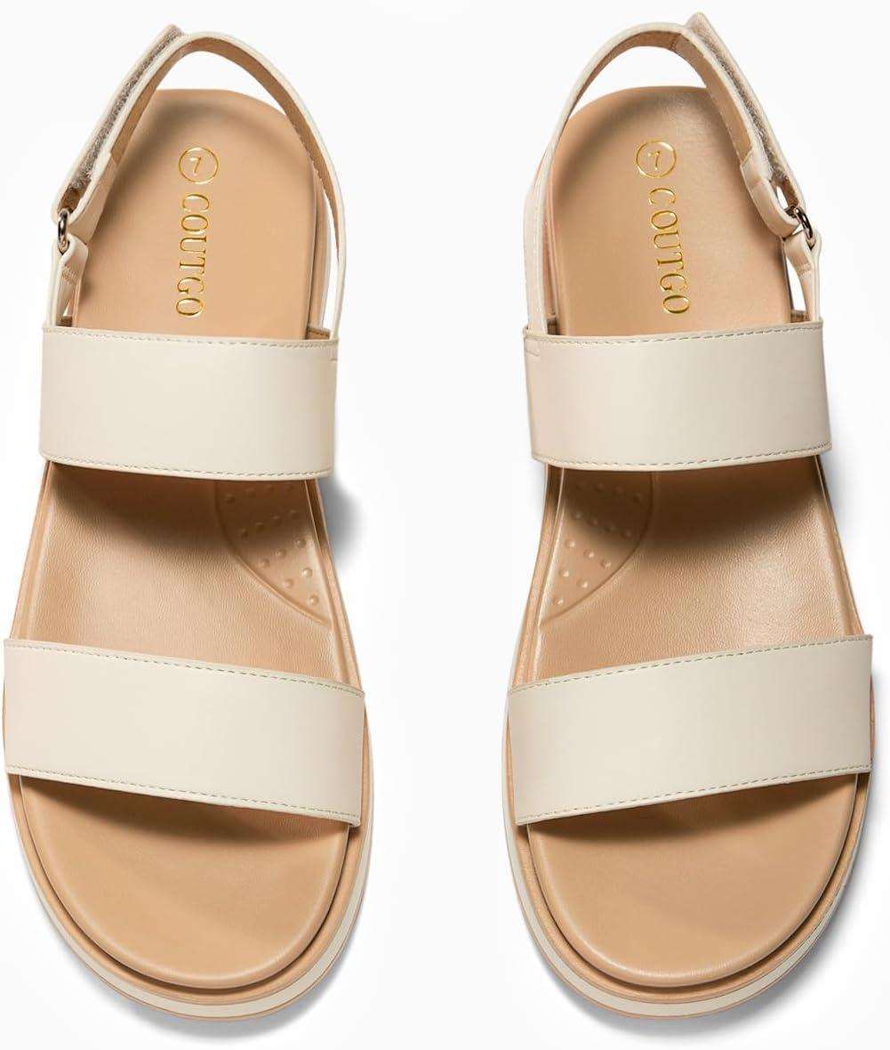 Coutgo Womens Flat Sandals Comfortable Arch Support Adjustable Double Strap Lightweight Summer Platform Sandals(Beige)