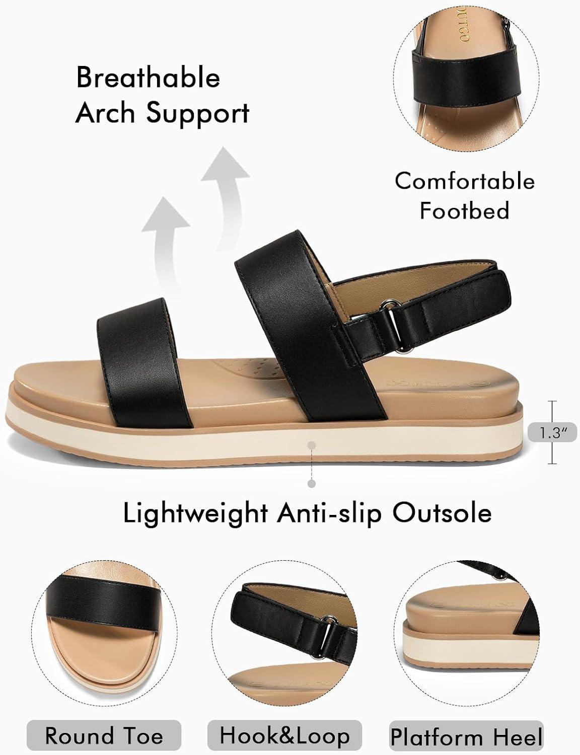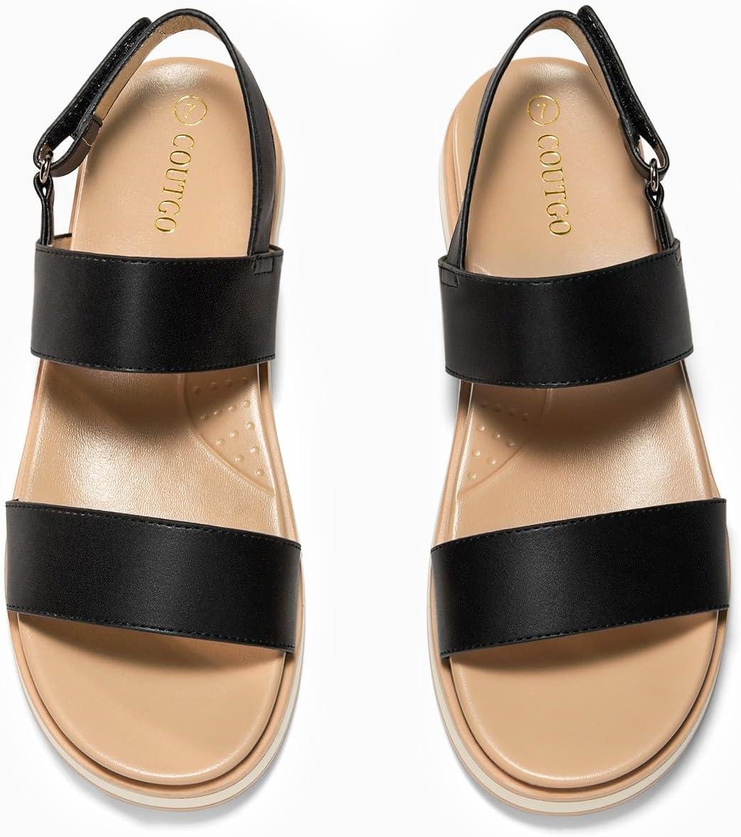 Coutgo Womens Flat Sandals Comfortable Arch Support Adjustable Double Strap Lightweight Summer Sandals(Black)