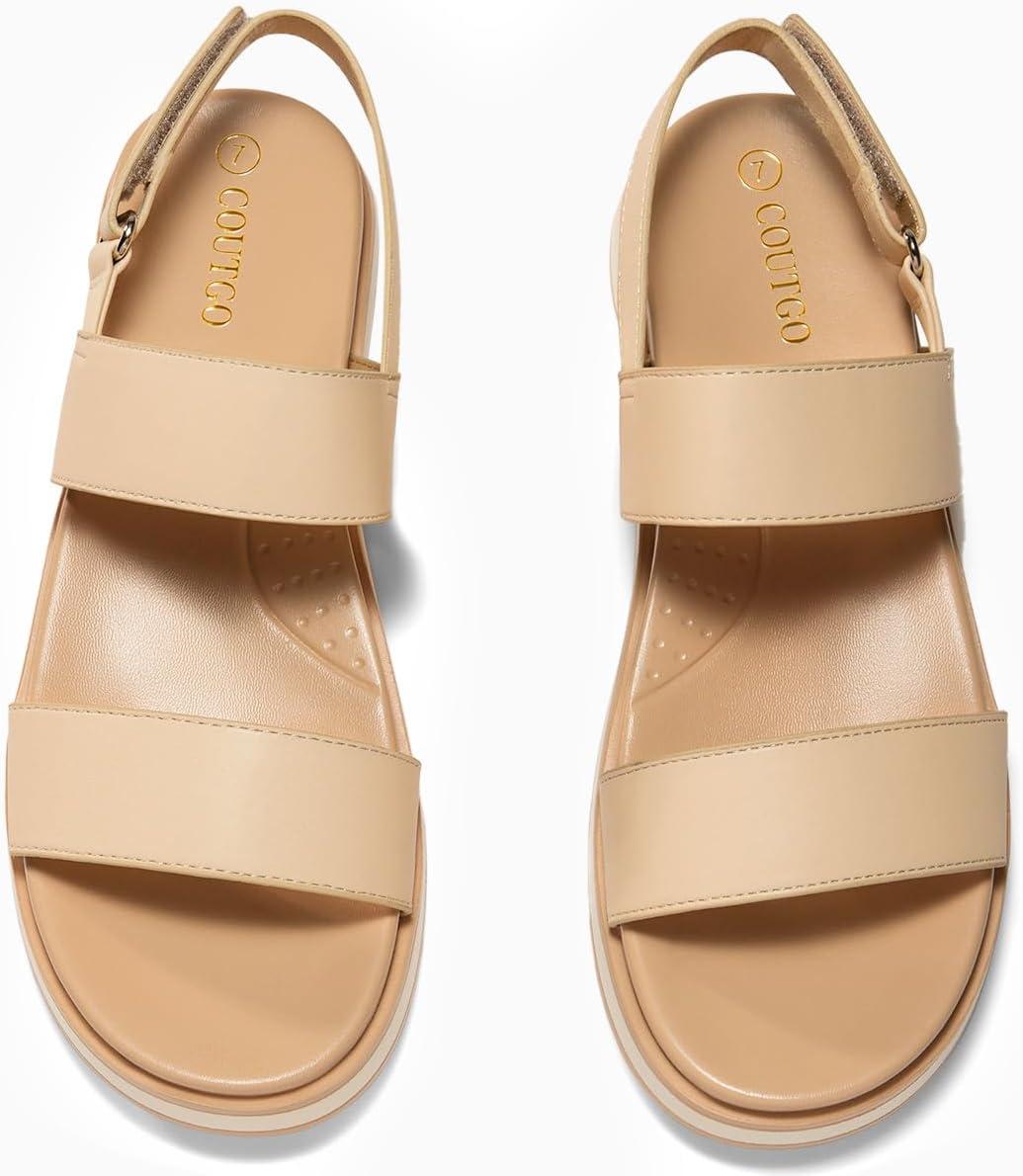 Coutgo Womens Flat Sandals Comfortable Arch Support Adjustable Double Strap Lightweight Summer Sandals(Nude)