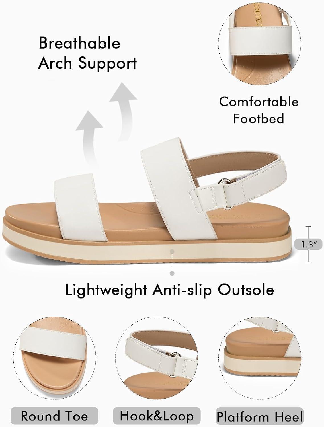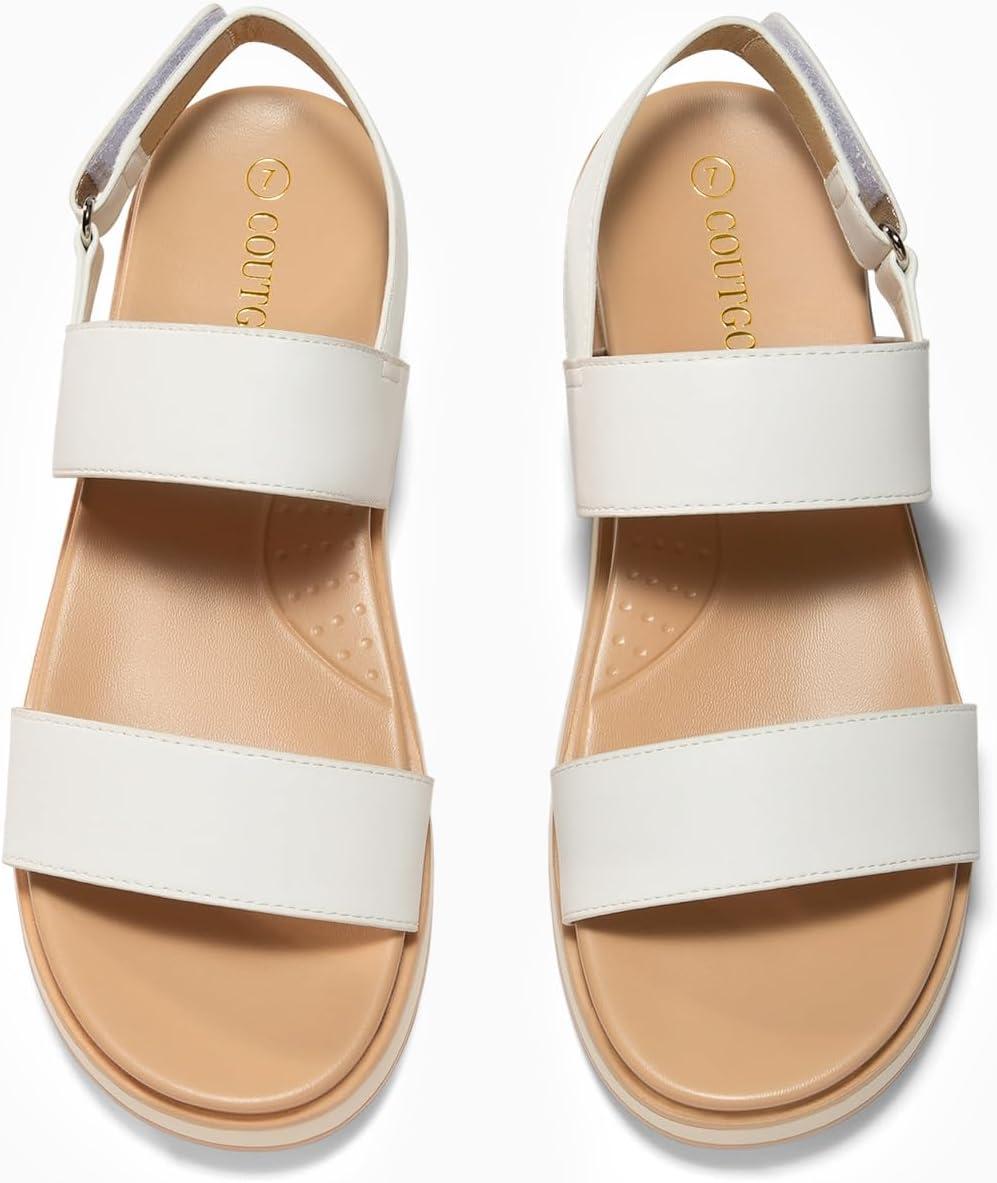 Coutgo Womens Flat Sandals Comfortable Arch Support Adjustable Double Strap Lightweight Summer Sandals(White)