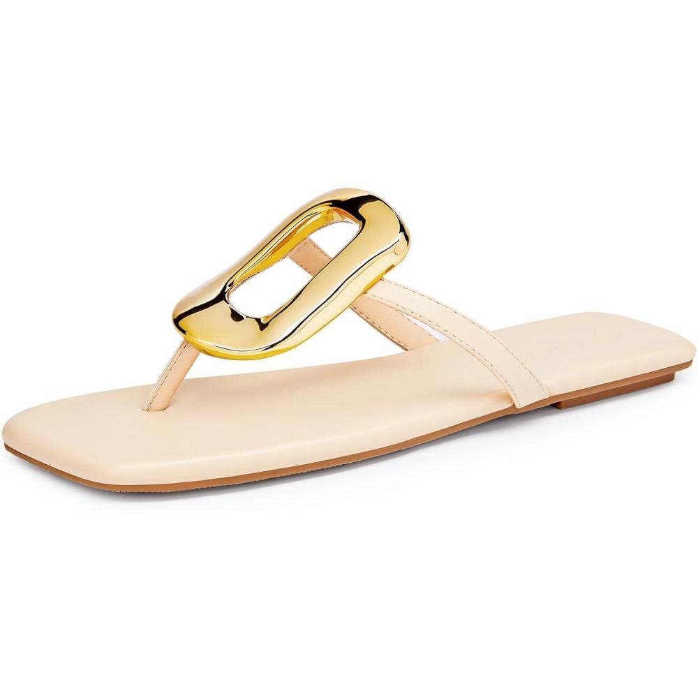 Coutgo Womens Flat Sandals Comfortable Flip Flops Slide Sandals Summer Beach Shoes with Metal Decoration(Apricot)