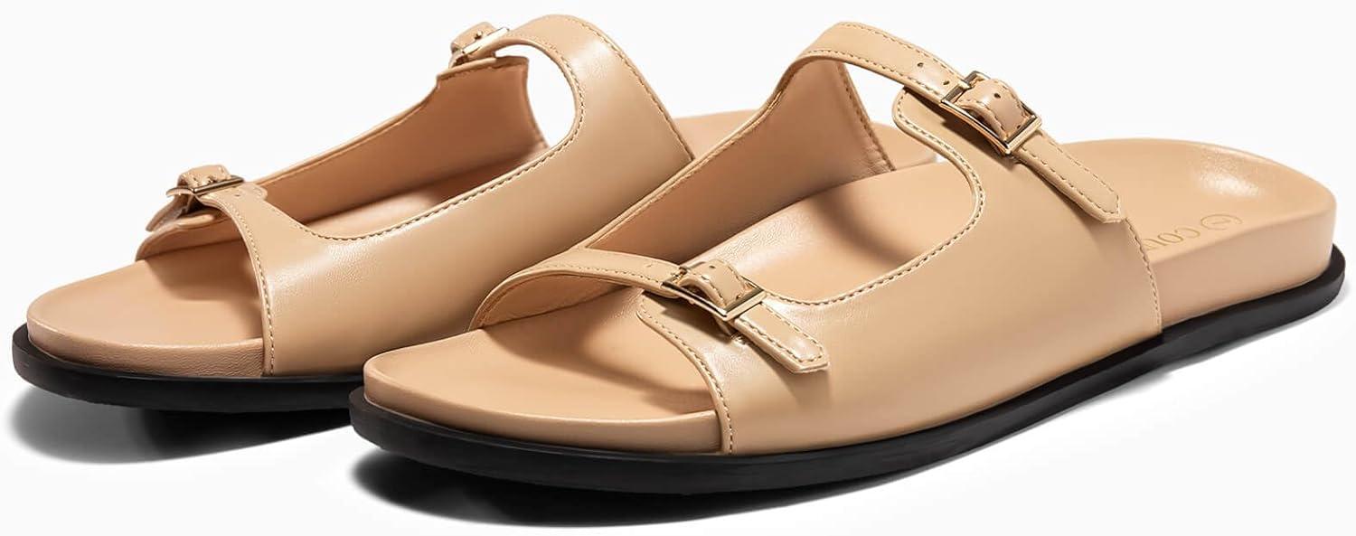 Be the first to review “Coutgo Womens Flat Sandals Comfortable Wide Width Slides Double Strap Adjustable Buckle Slip on Shoes(Camel)”