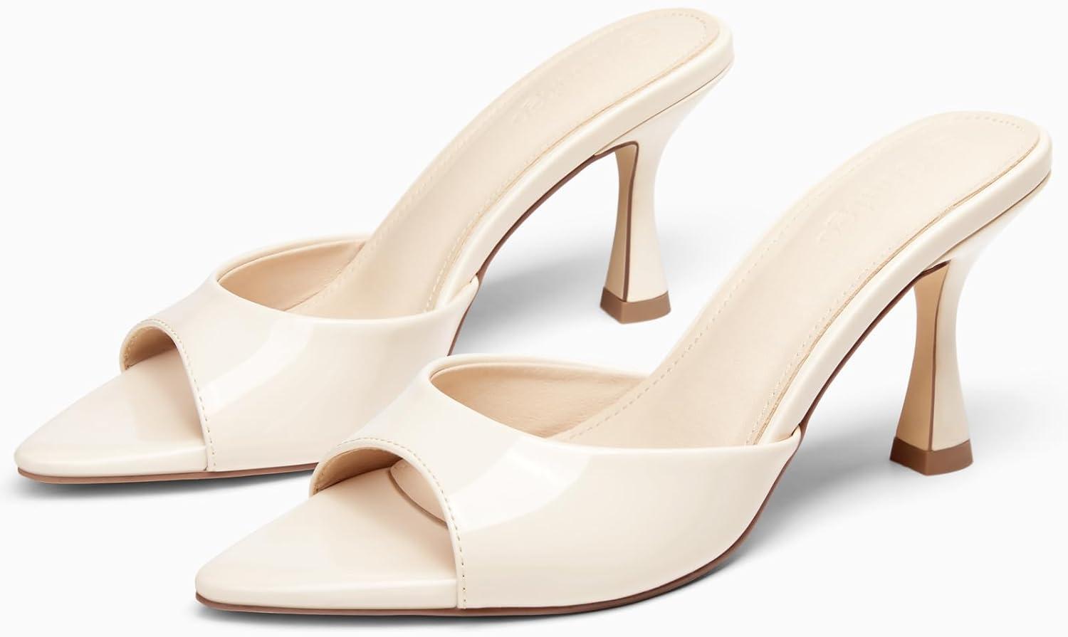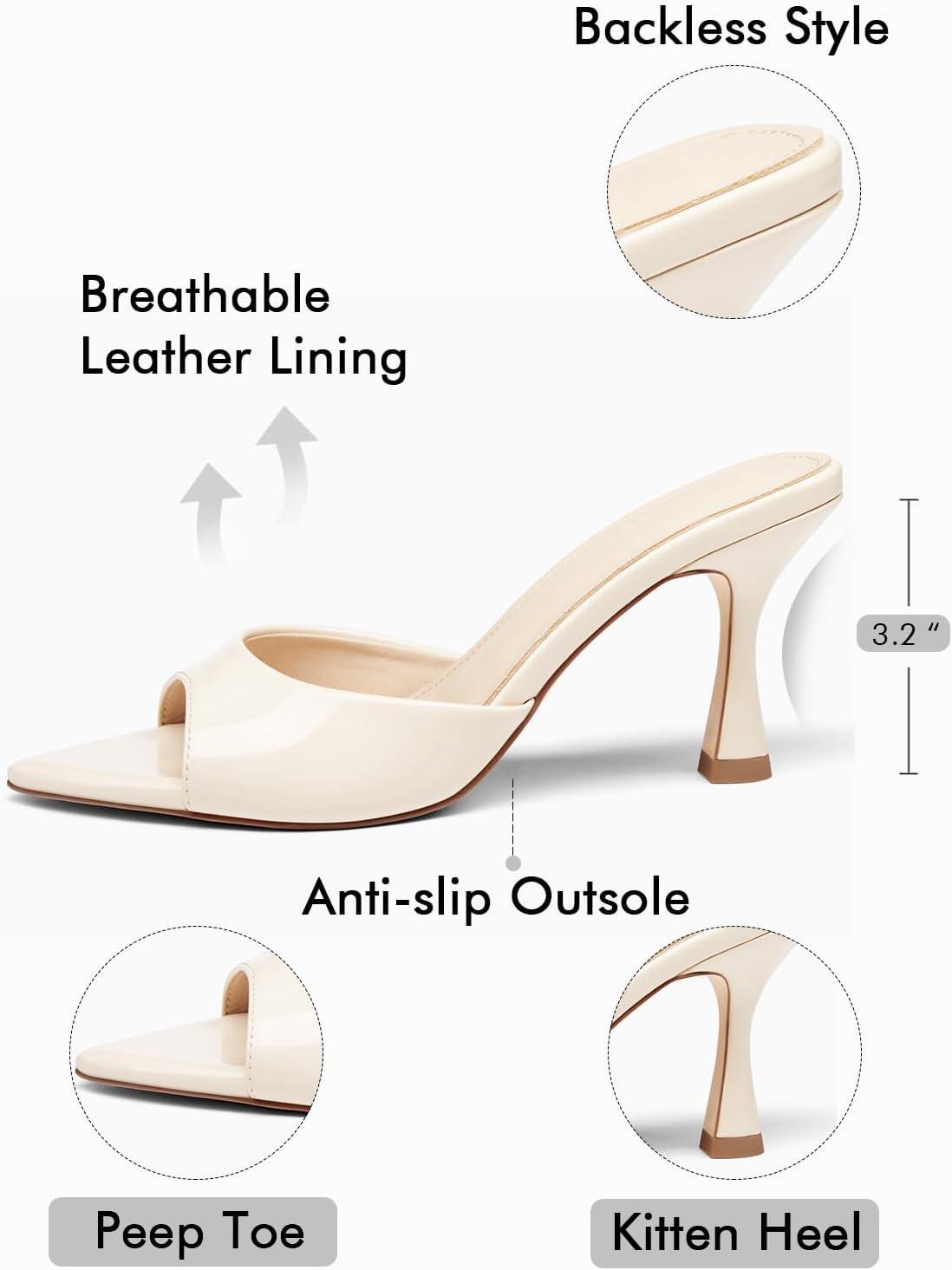Coutgo Womens Heeled Mules Pointed Peep Toe High Heels Slip On Backless Mule Sandals Dress Shoes(Beige)