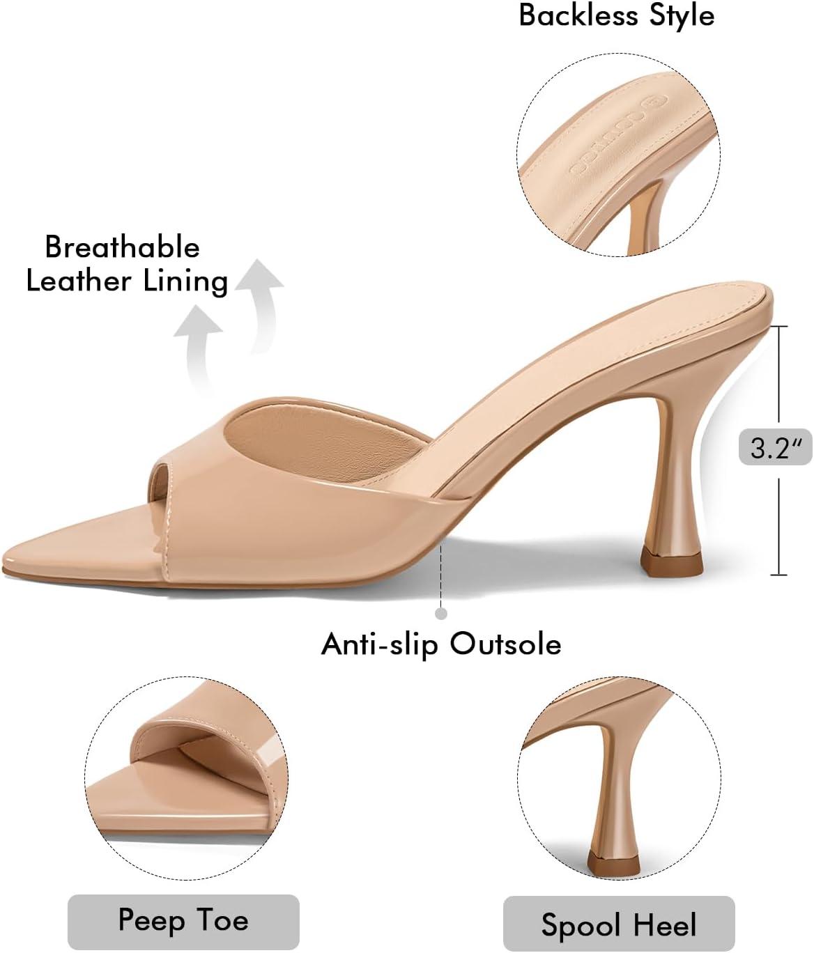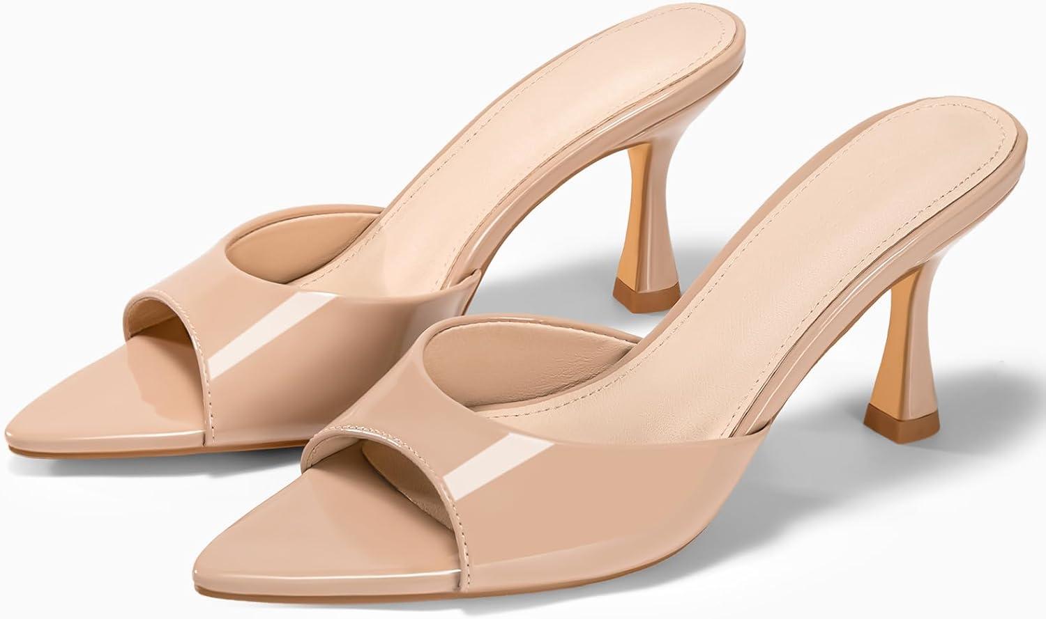 Get your hands on our exclusive Coutgo Womens Heeled Mules Pointed Peep Toe High Heels Slip On Backless Mule Sandals Dress Shoes(Nude) collection, now at a discounted price.