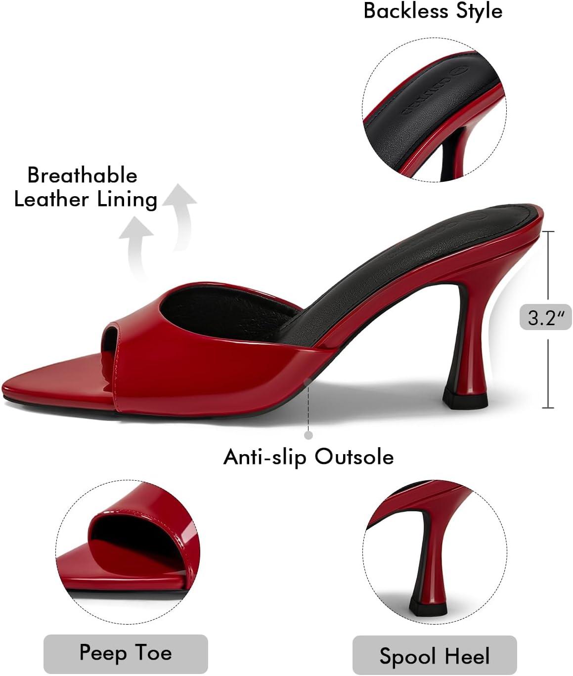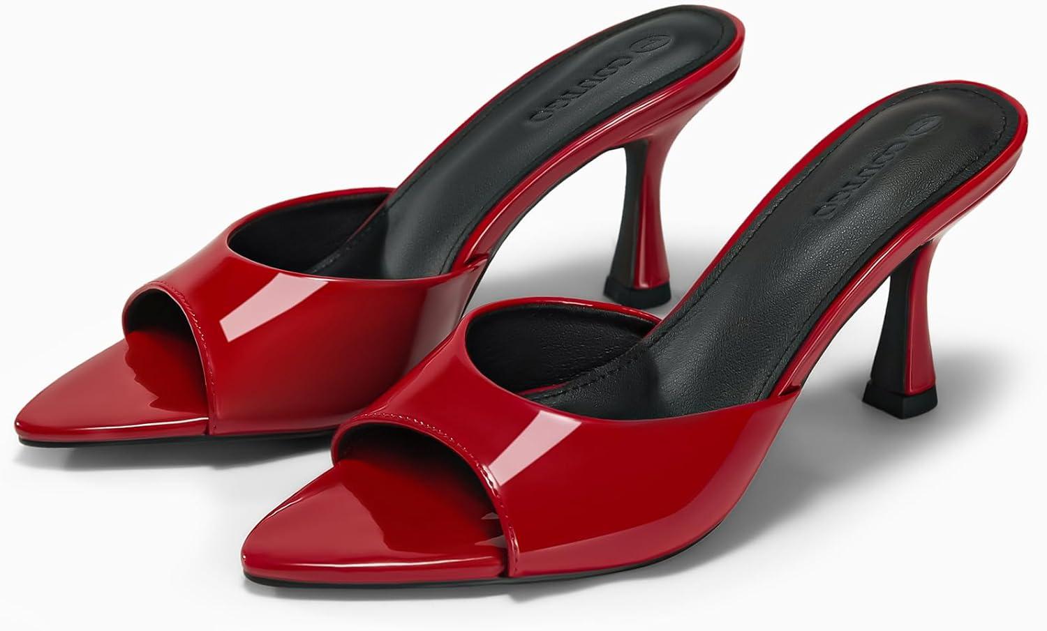 Coutgo Womens Heeled Mules Pointed Peep Toe High Heels Slip On Backless Mule Sandals Dress Shoes(Red)