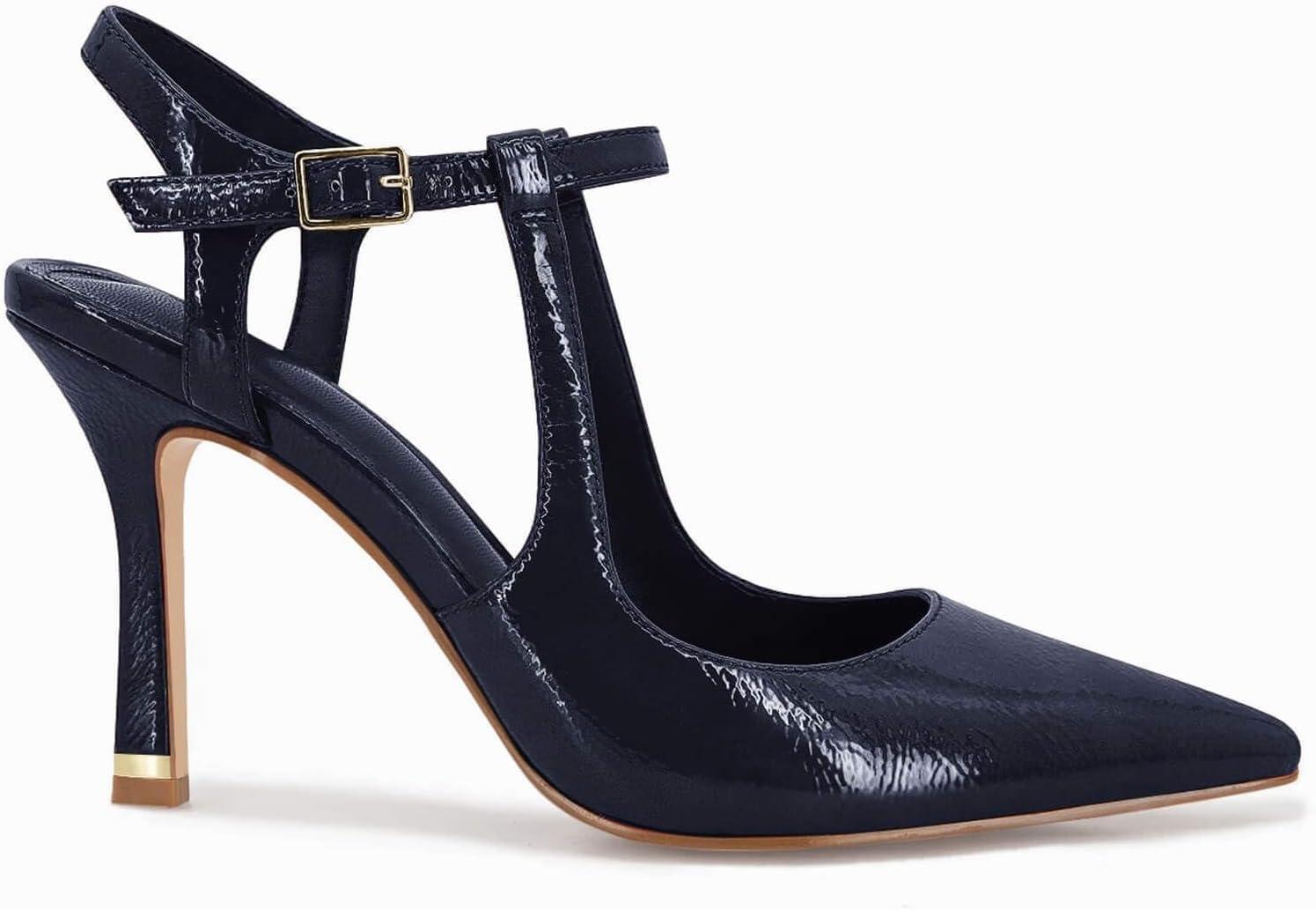 Coutgo Womens High Heels Pointed Toe Ankle Strap Pumps Patent Leather Sexy Stiletto Office Wedding Dress Shoes(A-navy)