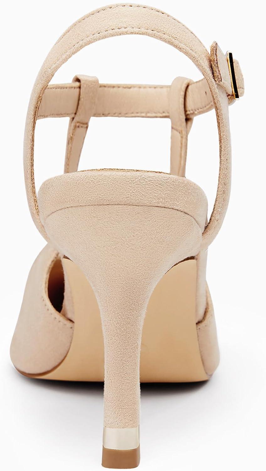 Coutgo Womens High Heels Pointed Toe Ankle Strap Pumps Patent Leather Sexy Stiletto Office Wedding Dress Shoes(B-suede Nude)