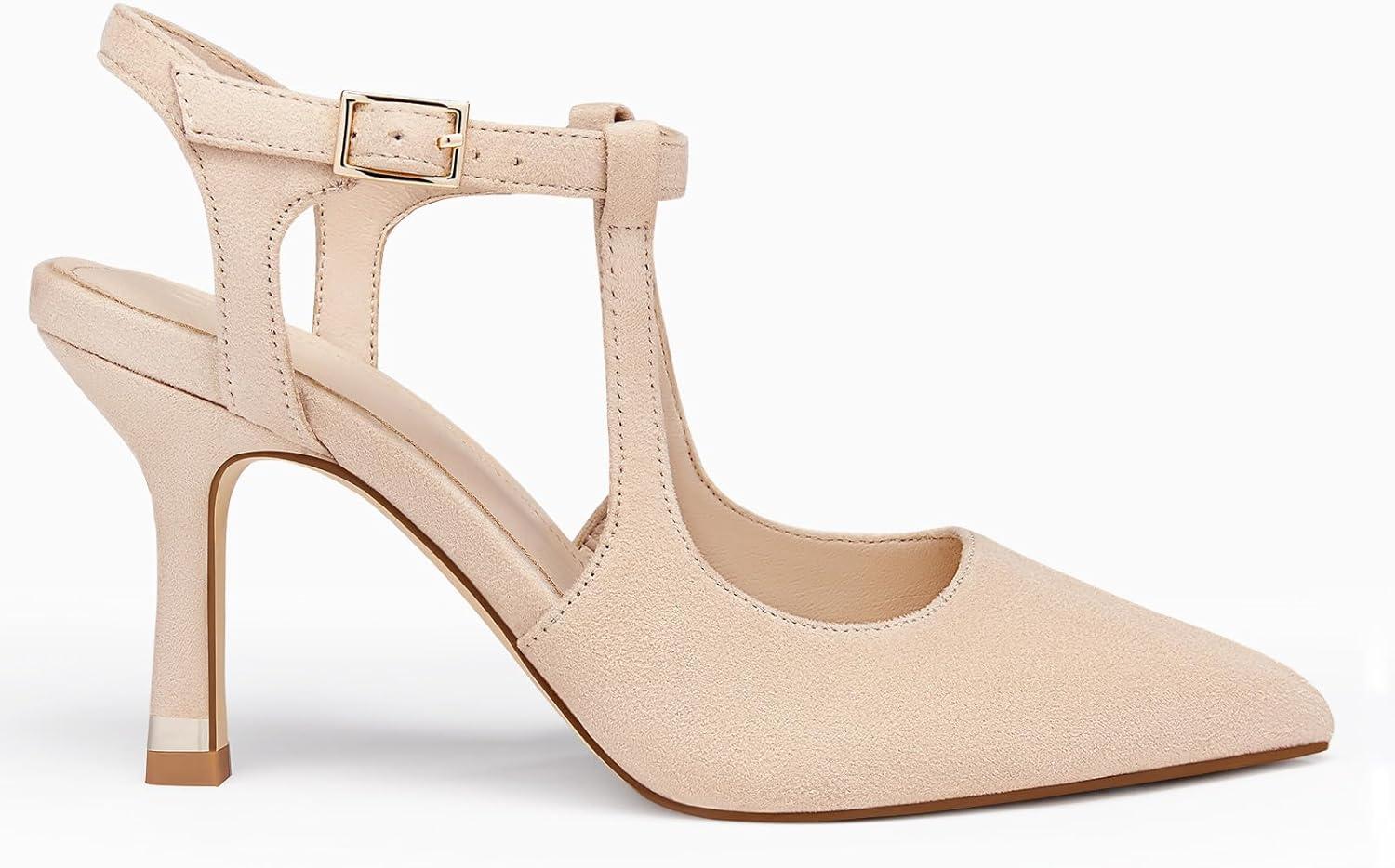 Score big savings on Coutgo Womens High Heels Pointed Toe Ankle Strap Pumps Patent Leather Sexy Stiletto Office Wedding Dress Shoes(B-suede Nude) during our back-to-school sale. Limited quantities available.