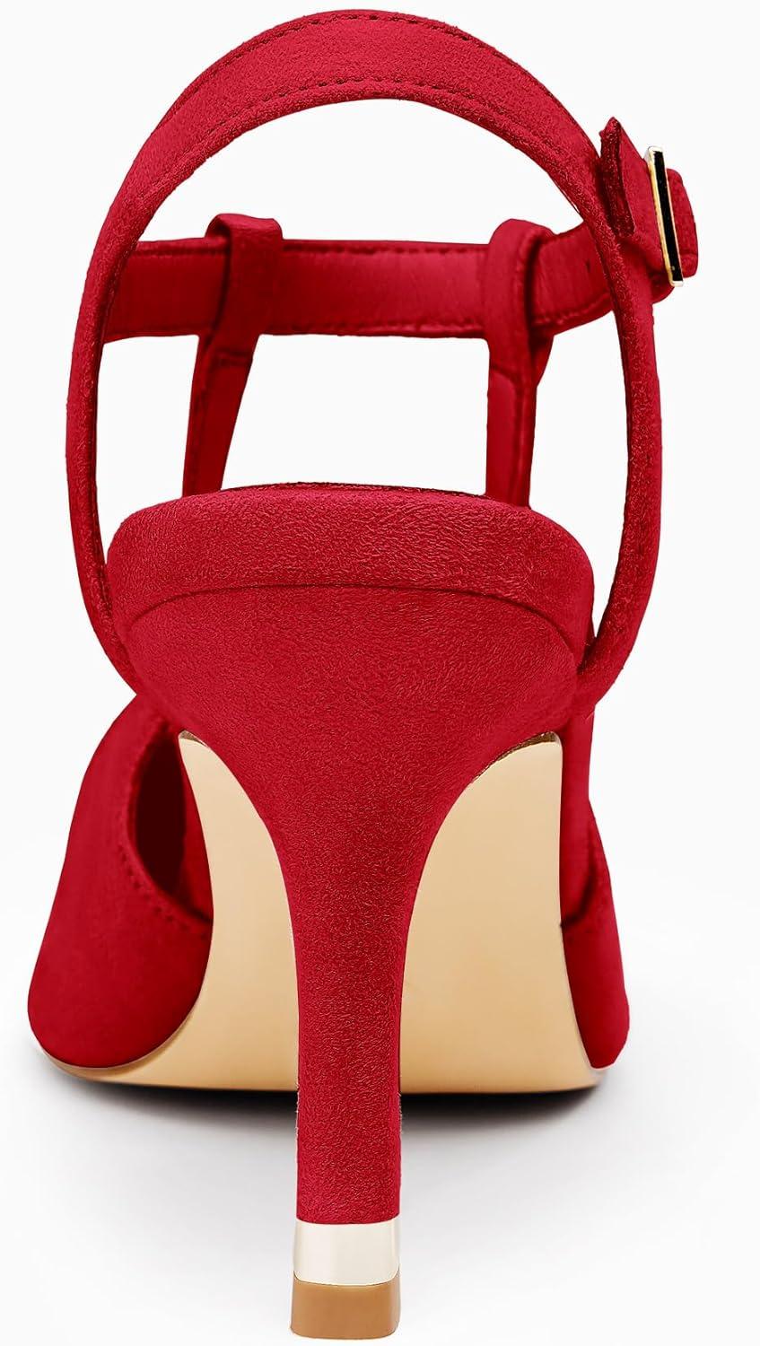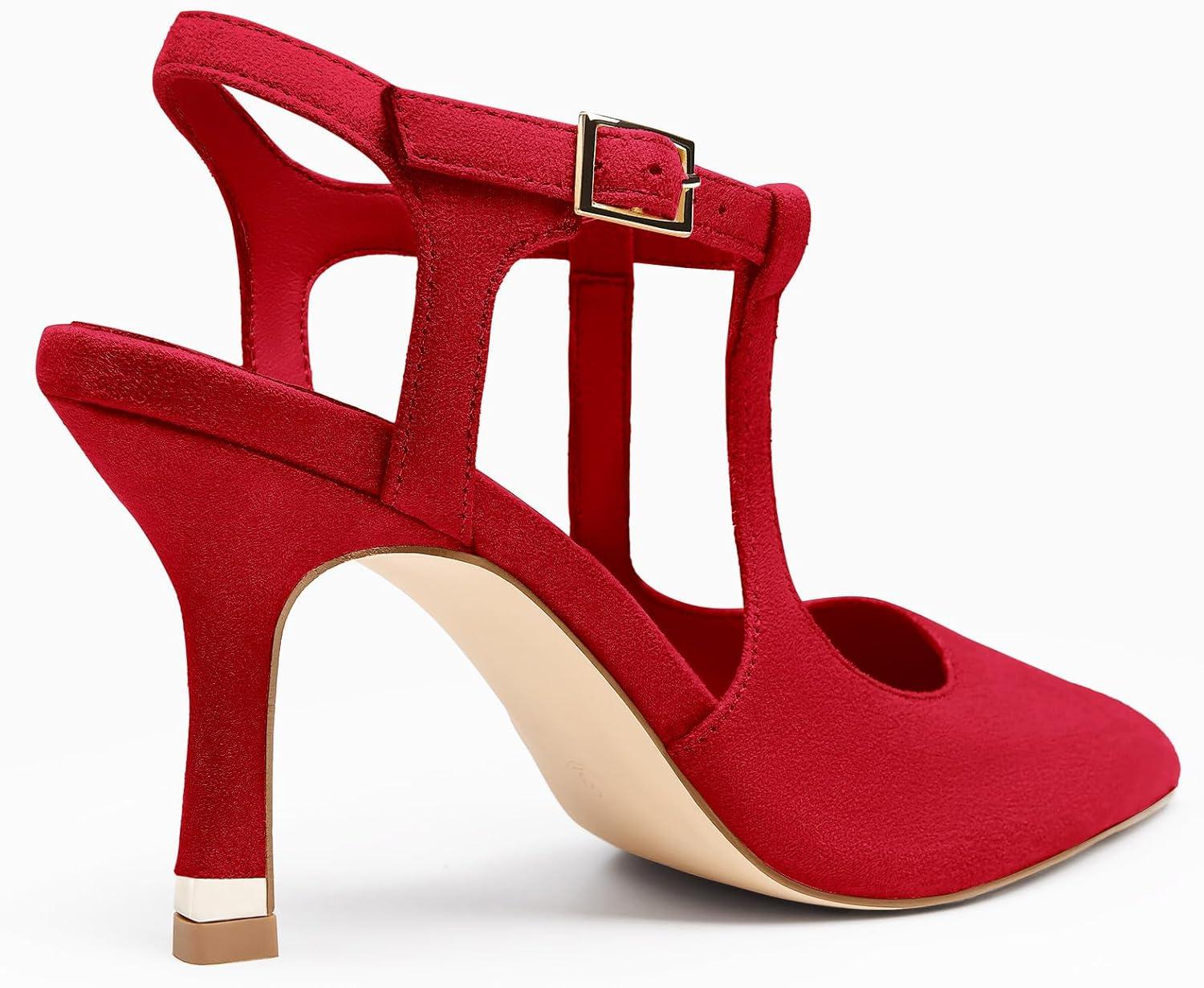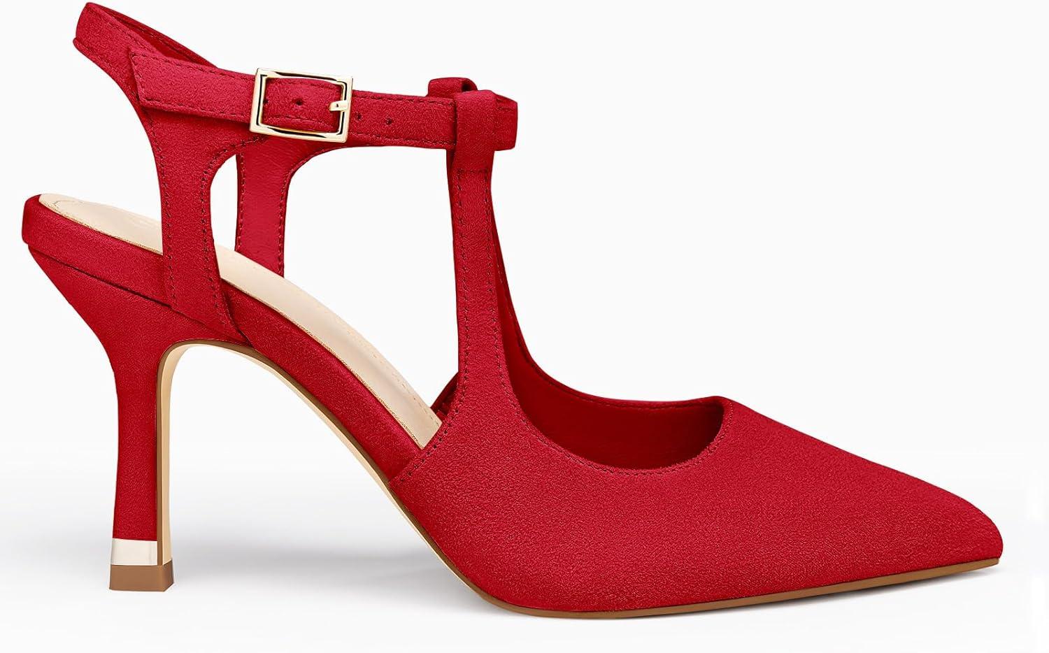 Get the Coutgo Womens High Heels Pointed Toe Ankle Strap Pumps Patent Leather Sexy Stiletto Office Wedding Dress Shoes(B-suede Red) you want at a price you can afford with our markdown sale.