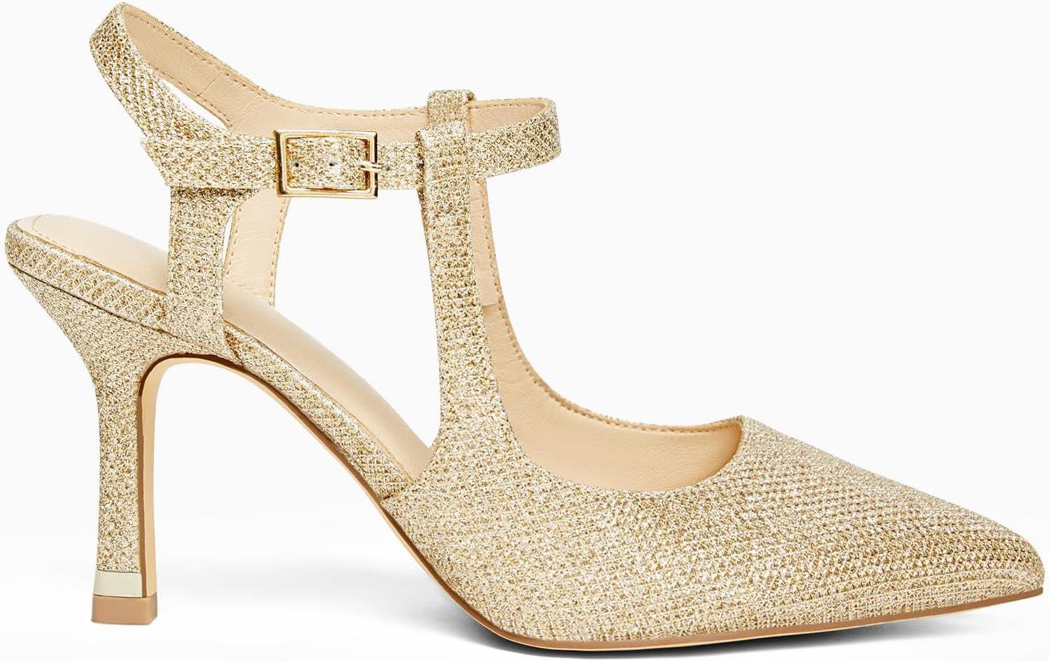 Coutgo Womens High Heels Pointed Toe Ankle Strap Pumps Patent Leather Sexy Stiletto Office Wedding Dress Shoes(Gold)