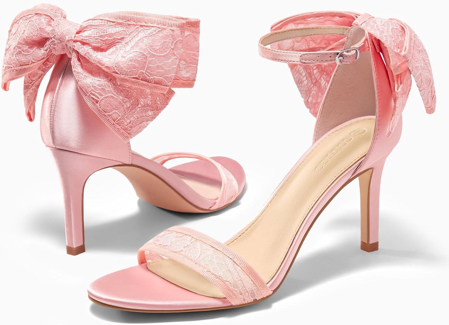 Don’t miss out on our limited-time offer: buy Coutgo Womens High Heels Sandals Lace Bow Tie Back Open Toe Ankle Strap Sexy Stiletto Wedding Party Dress Shoes(Pink), get a free {accessory}!