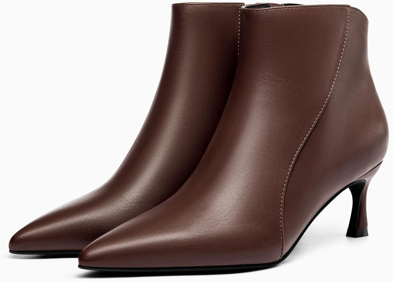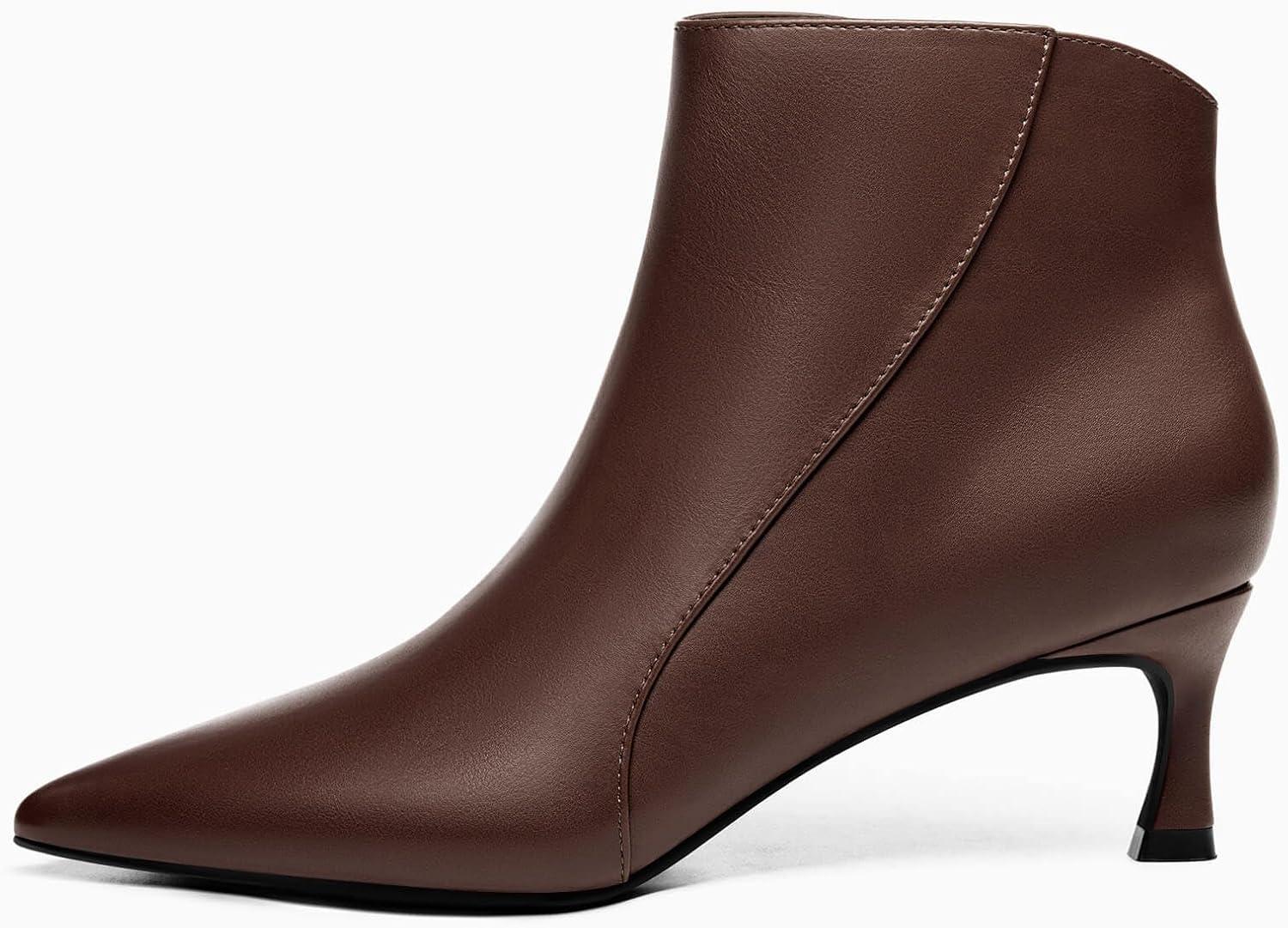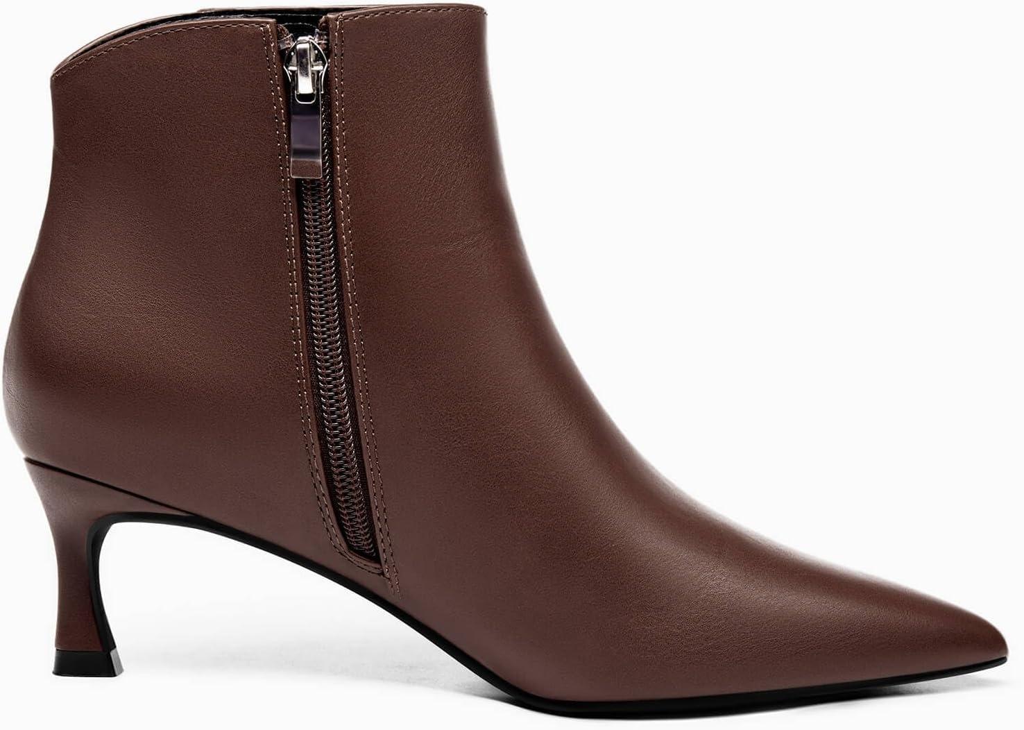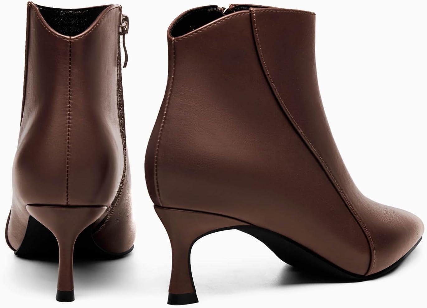 Coutgo Womens Kitten Heel Ankle Boots Pointed Toe Side Zipper Fall Winter Booties Shoes(Chocolate)