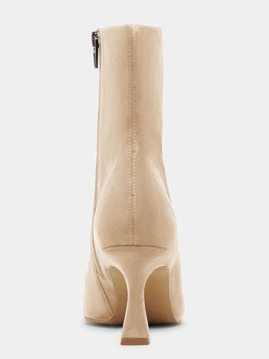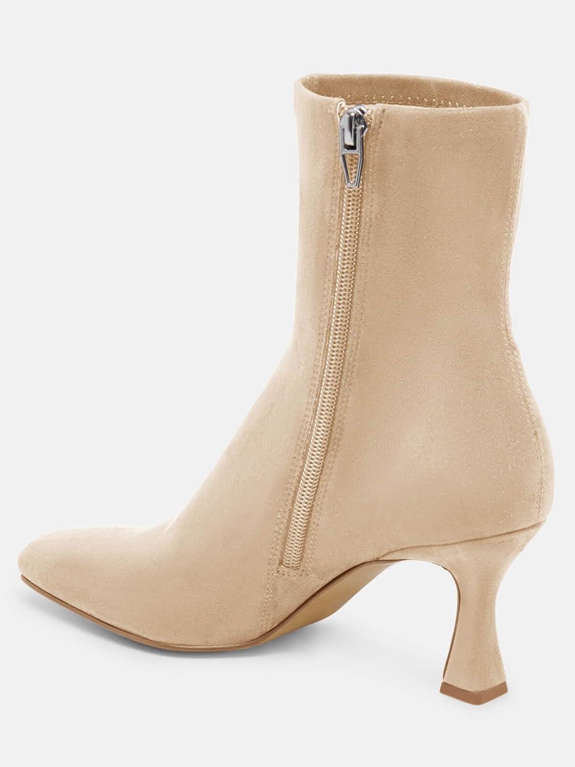 Coutgo Womens Kitten Heel Ankle Boots Square Toe Side Zipper Dressy Booties Fall Shoes(Beige Suede)
