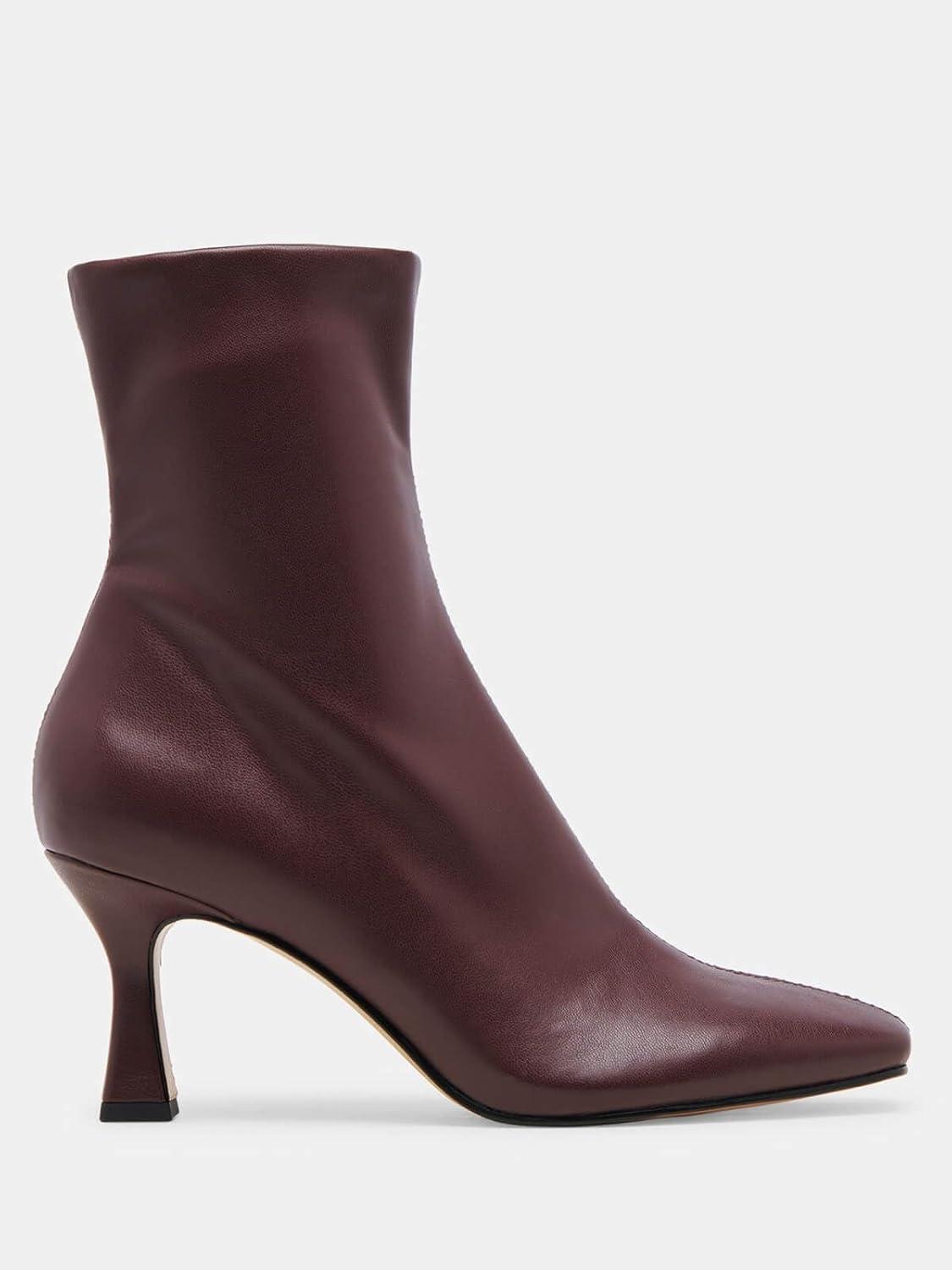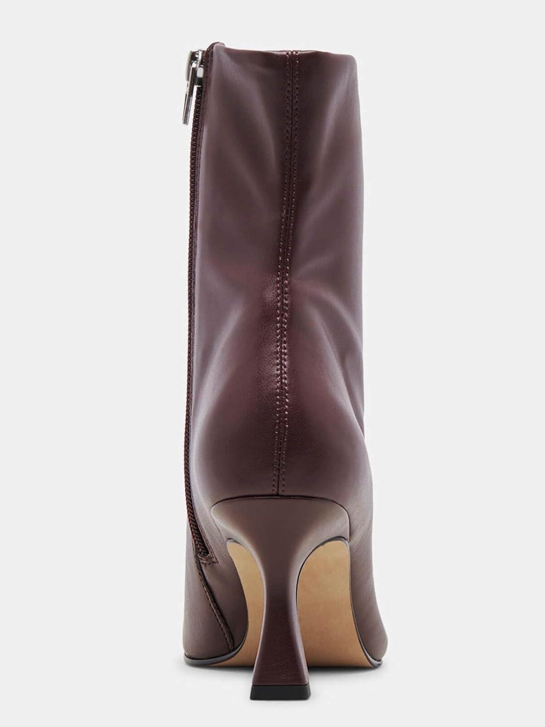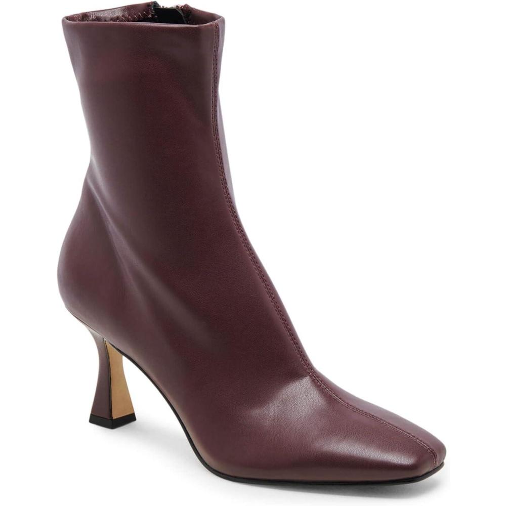 Coutgo Womens Kitten Heel Ankle Boots Square Toe Side Zipper Dressy Booties Fall Shoes(Burgundy Pu)