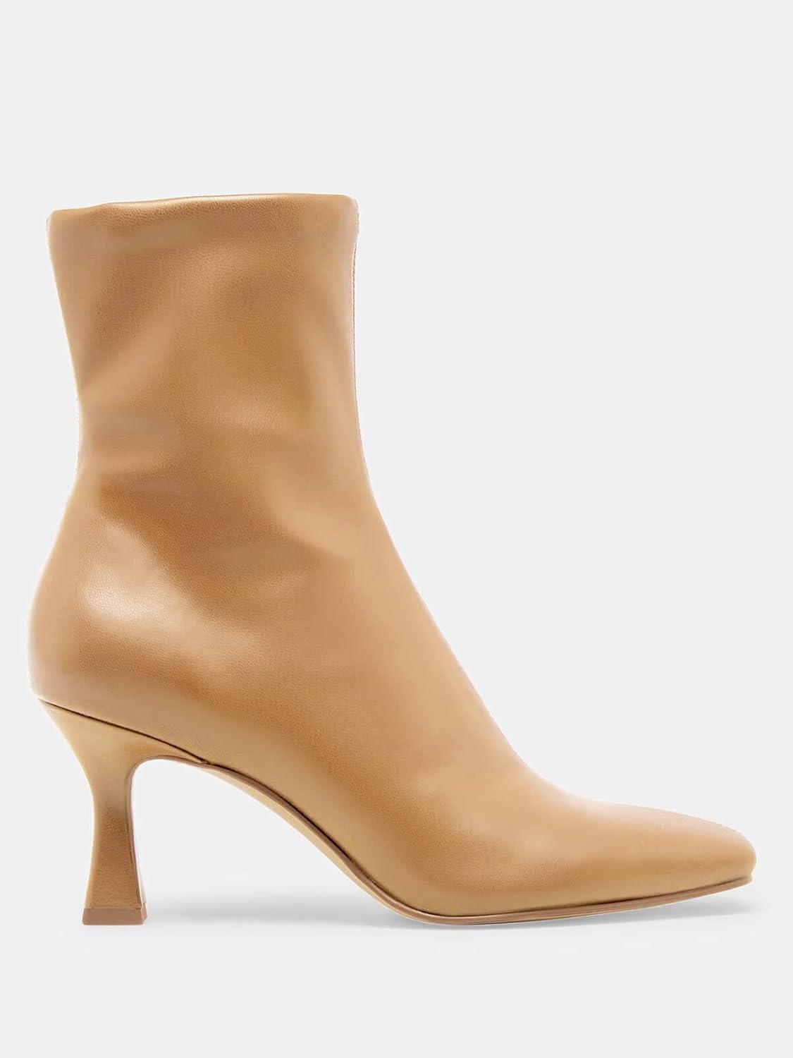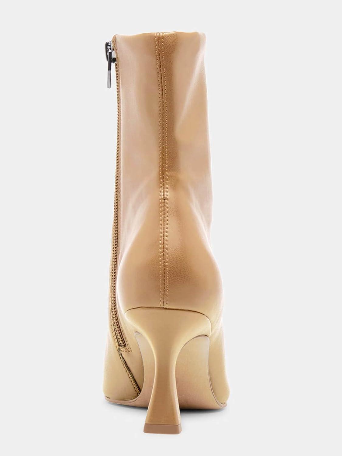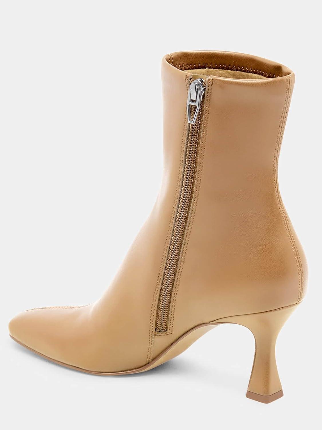 Coutgo Womens Kitten Heel Ankle Boots Square Toe Side Zipper Dressy Booties Fall Shoes(Khaki Pu)