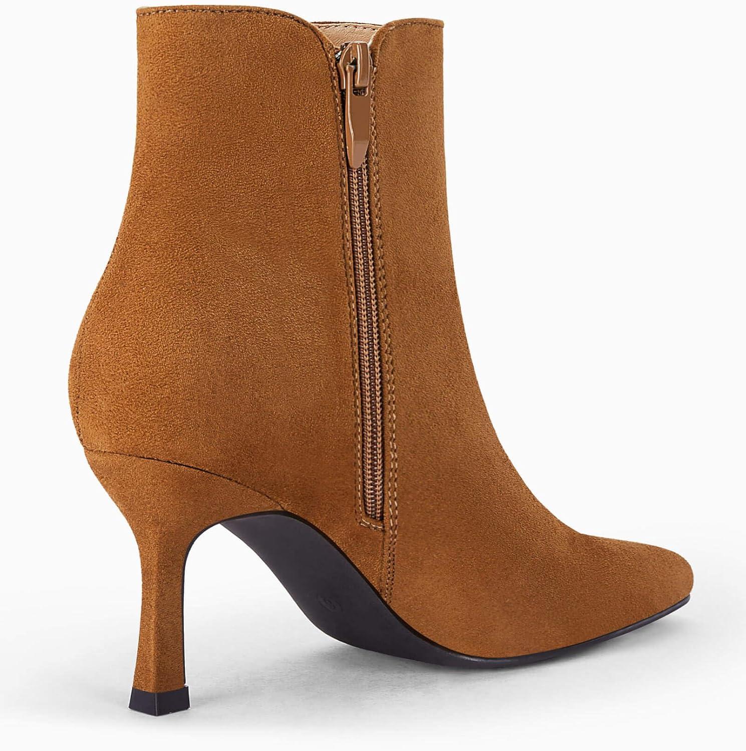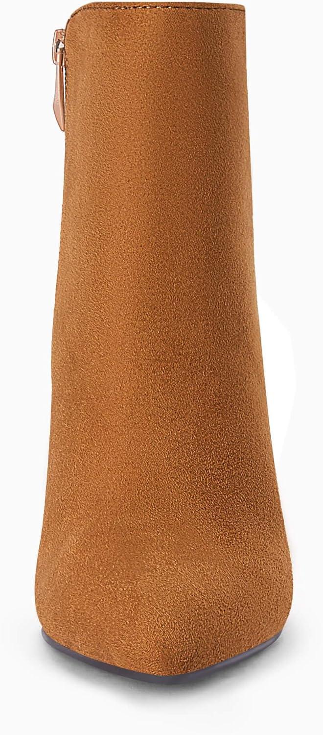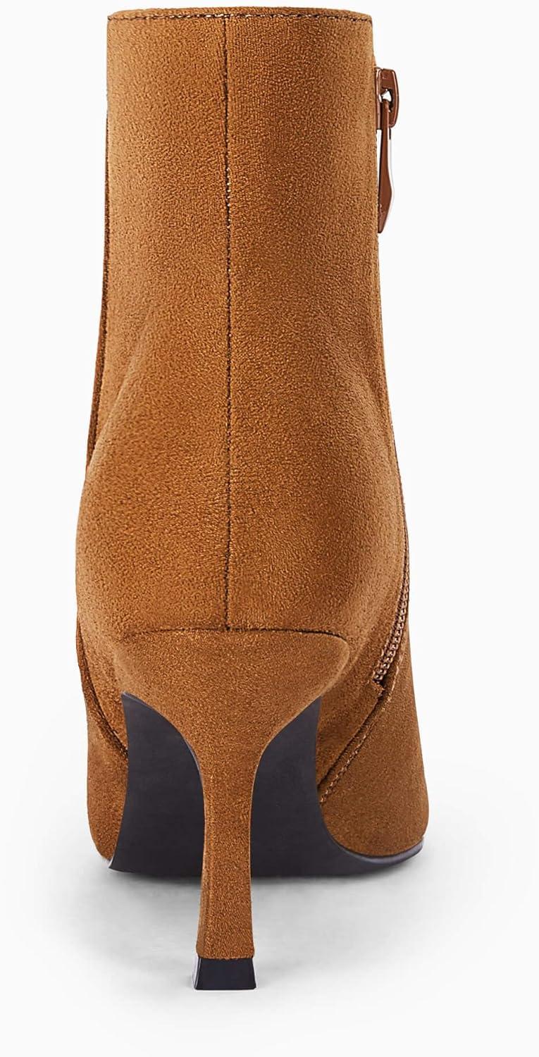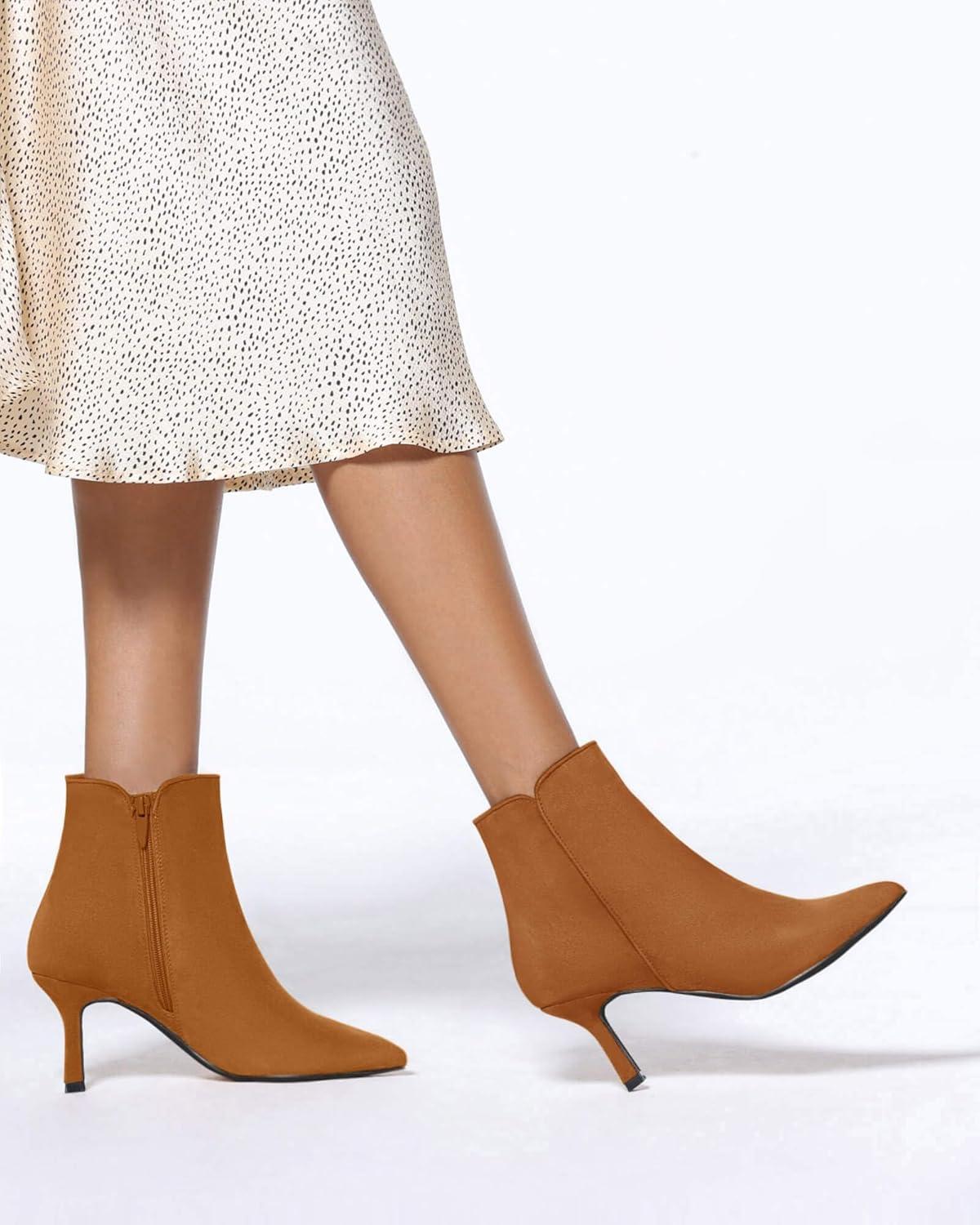 Coutgo Women’s Kitten Heel Booties Pointed Toe Low Stiletto Side Zipper Ankle Boots Shoes(Brown)