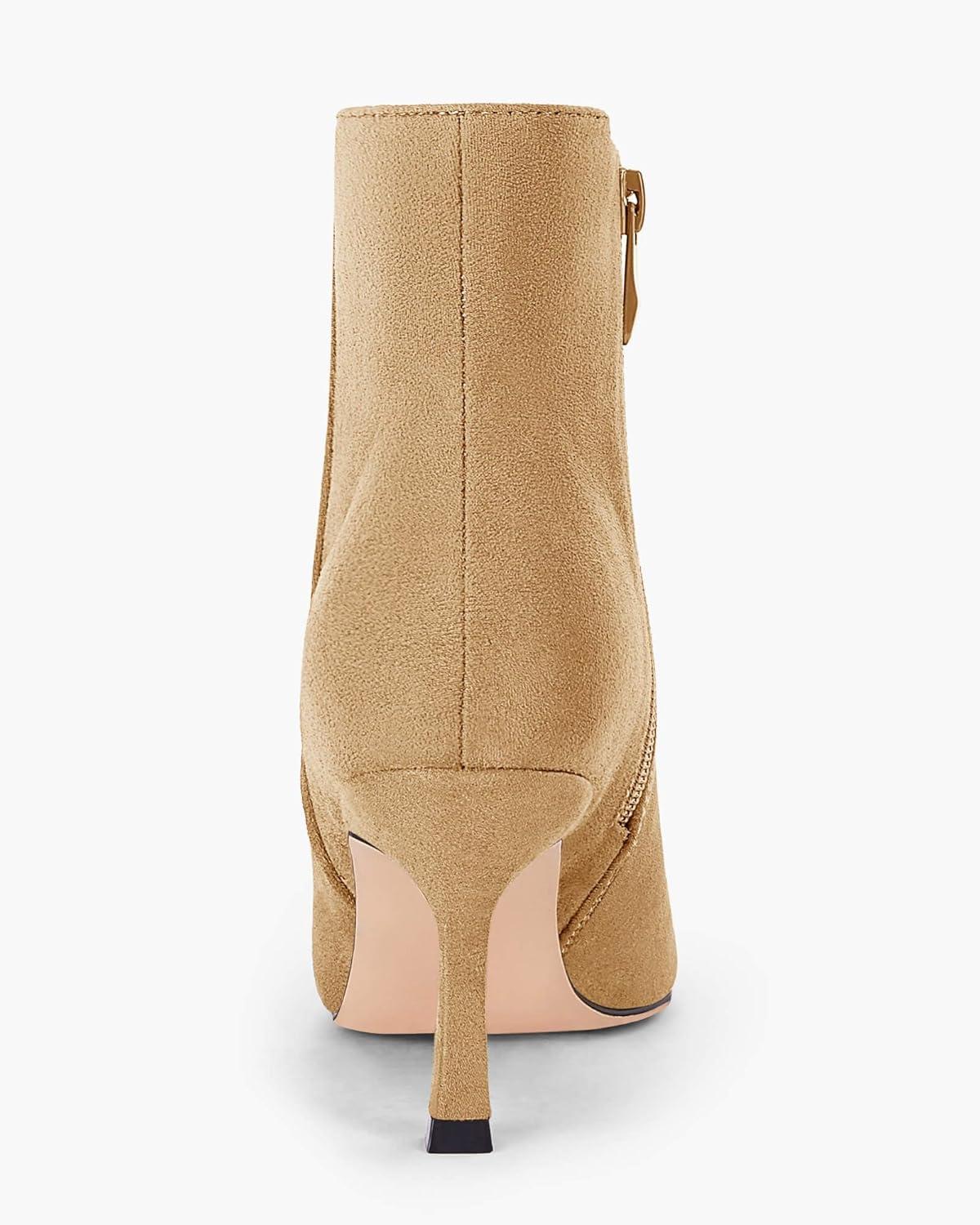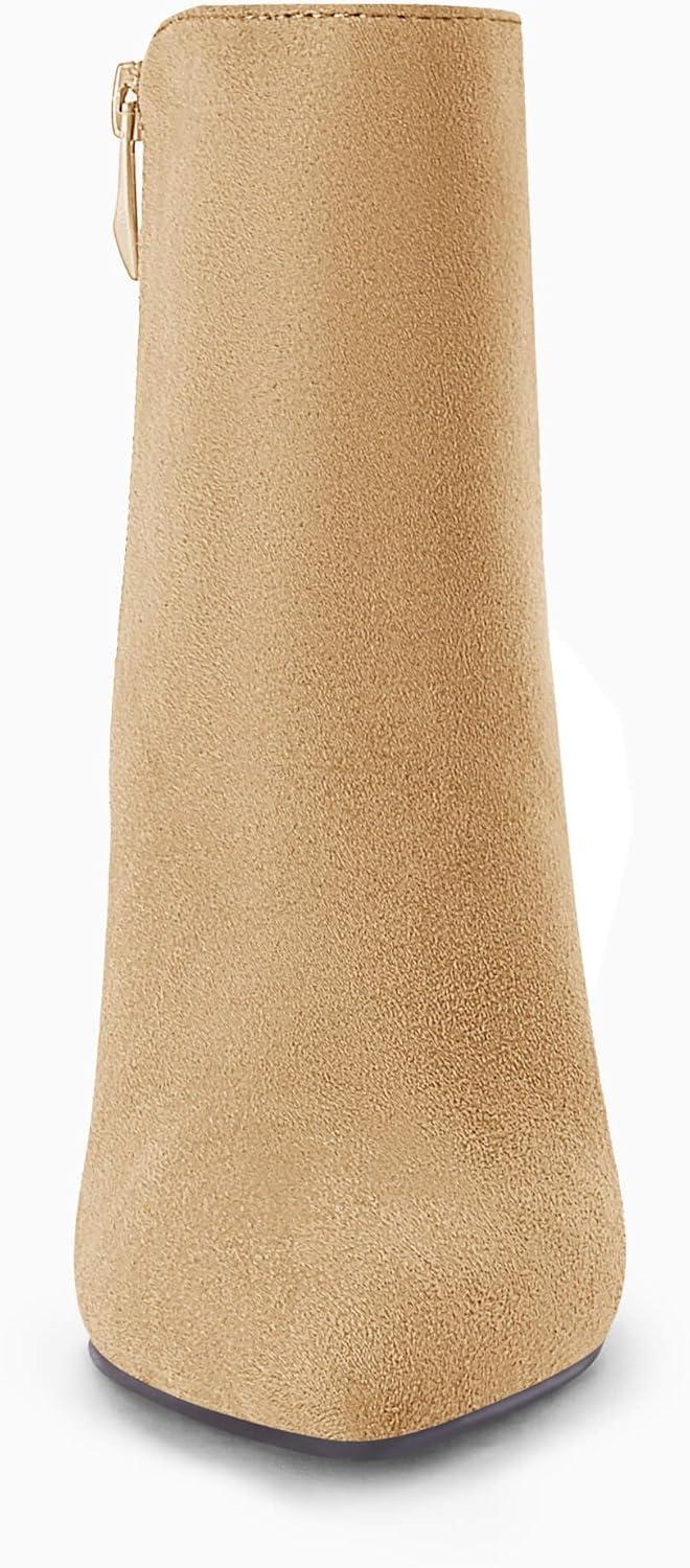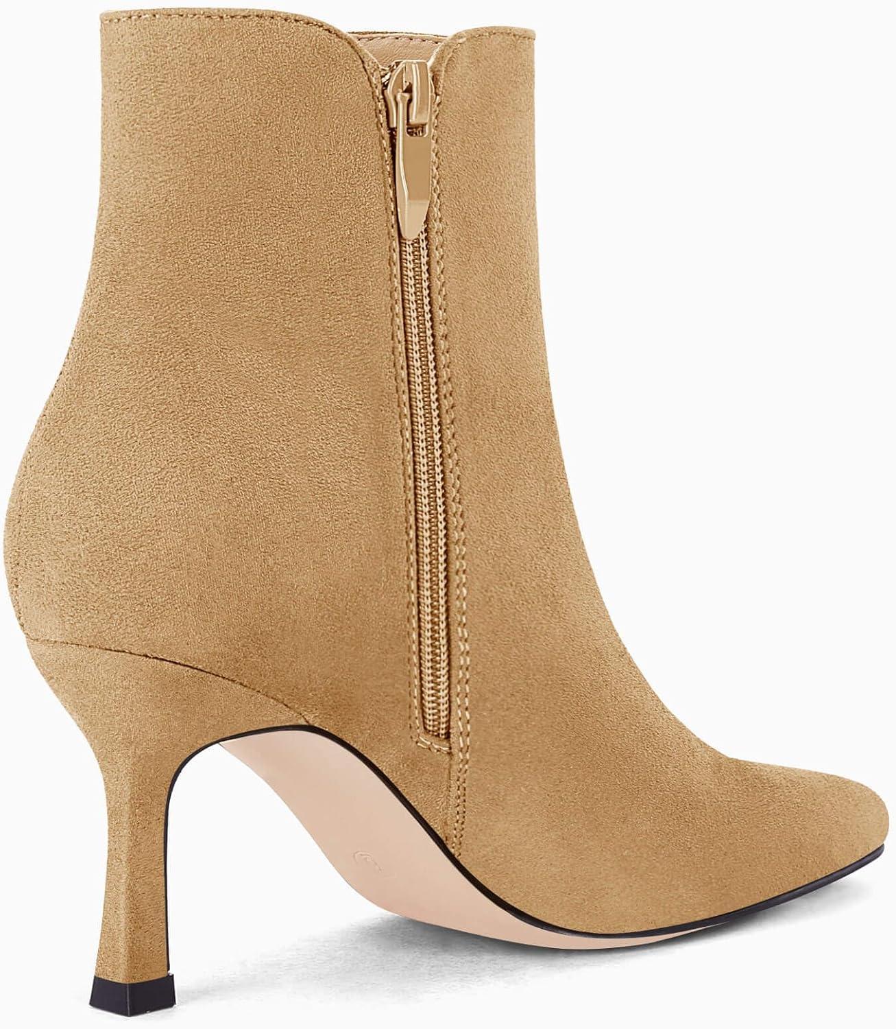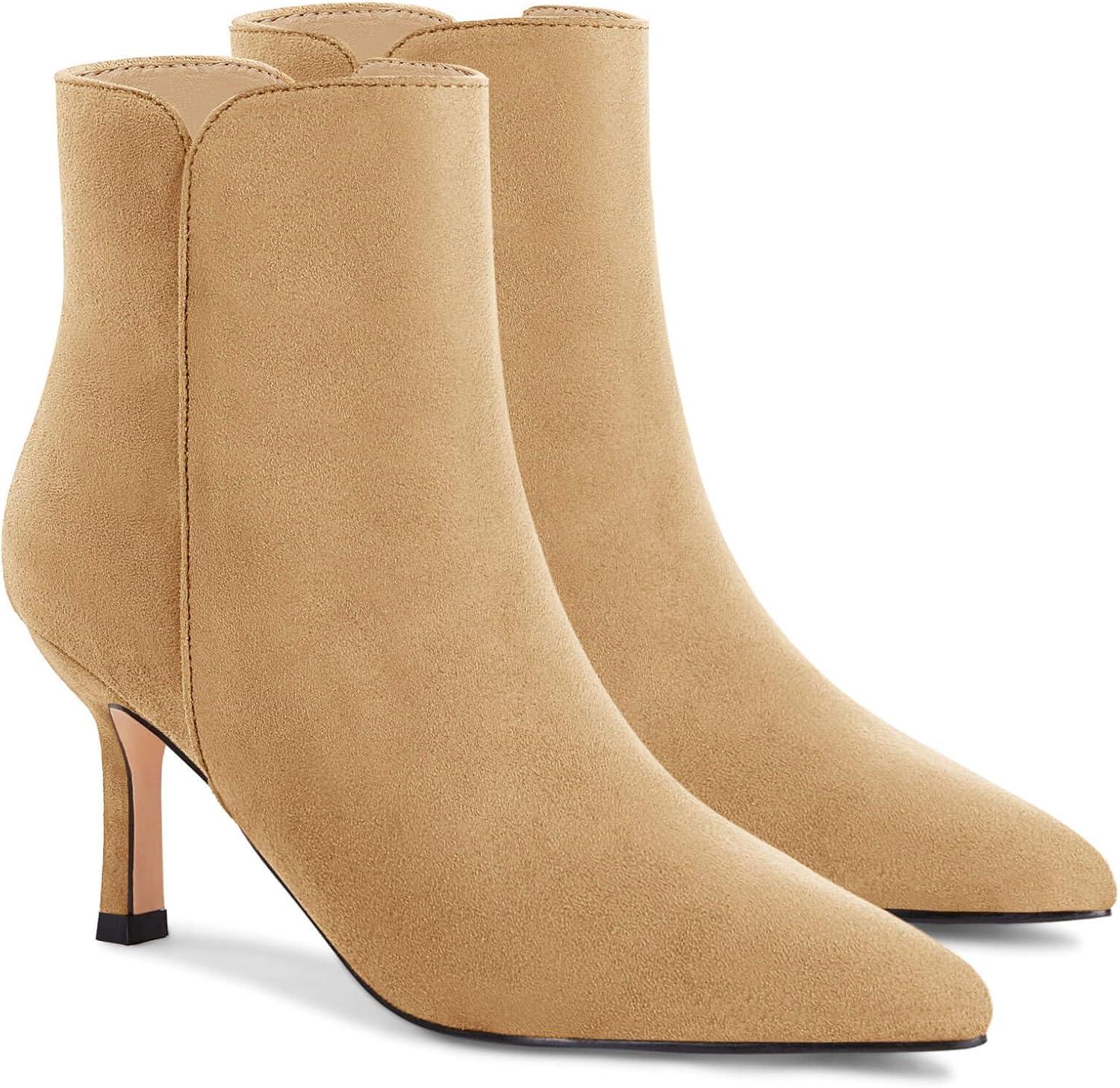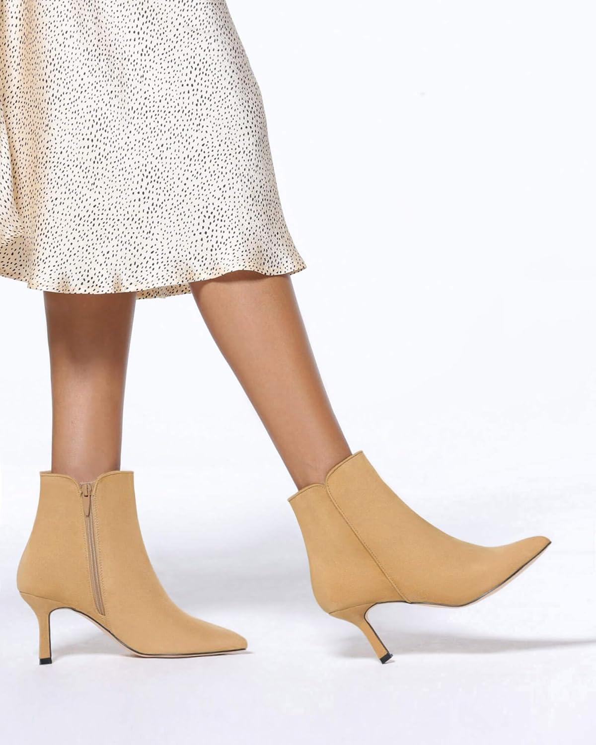 Coutgo Women’s Kitten Heel Booties Pointed Toe Low Stiletto Side Zipper Ankle Boots Shoes(Camel)