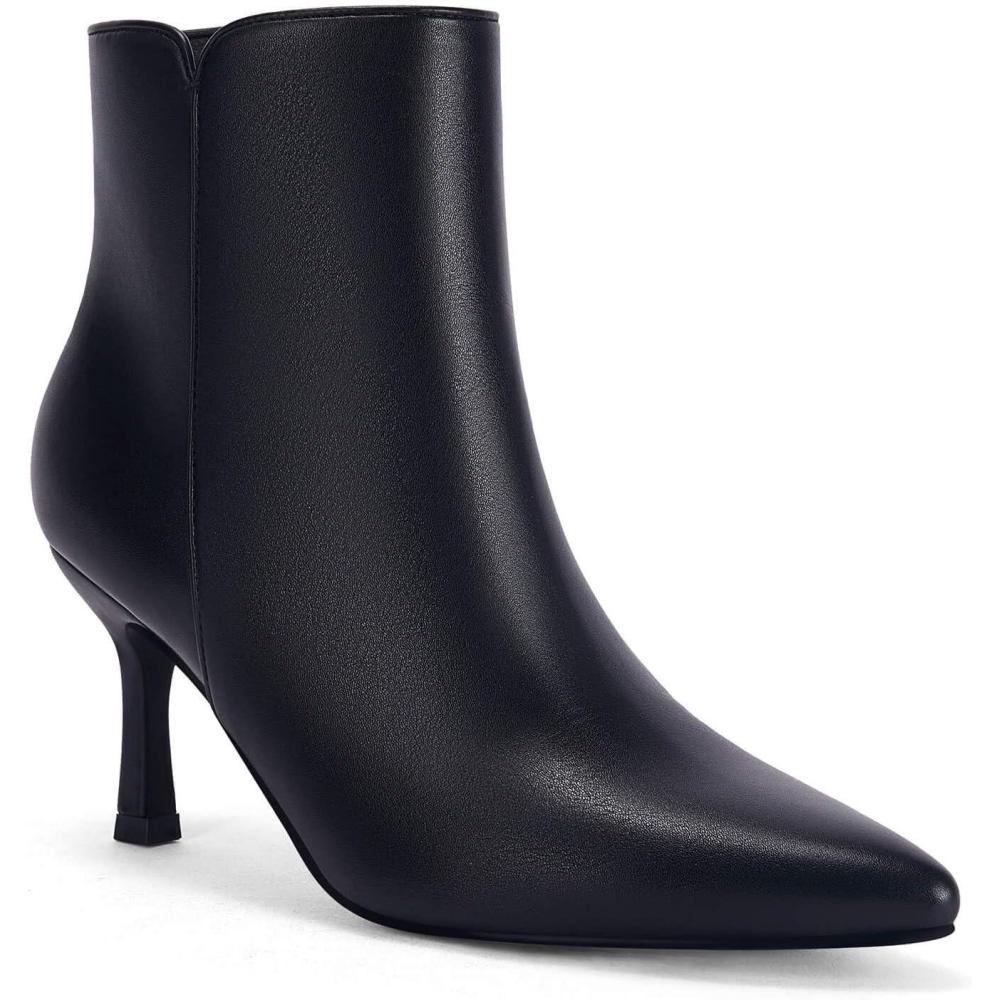 Get the Coutgo Women’s Kitten Heel Booties Pointed Toe Low Stiletto Side Zipper Ankle Boots Shoes(Leather Black) you want at a discounted price during our markdown sale event.