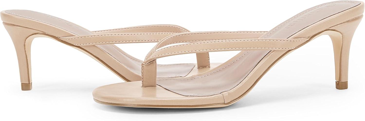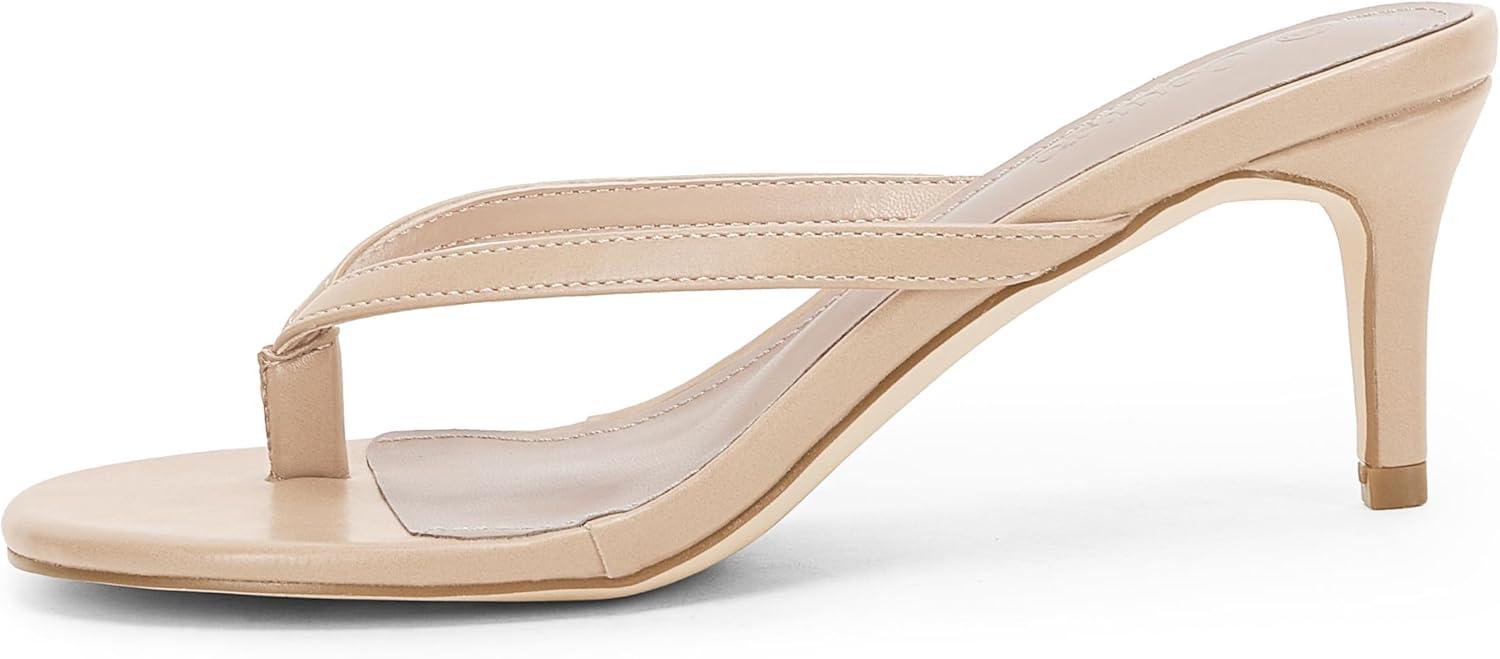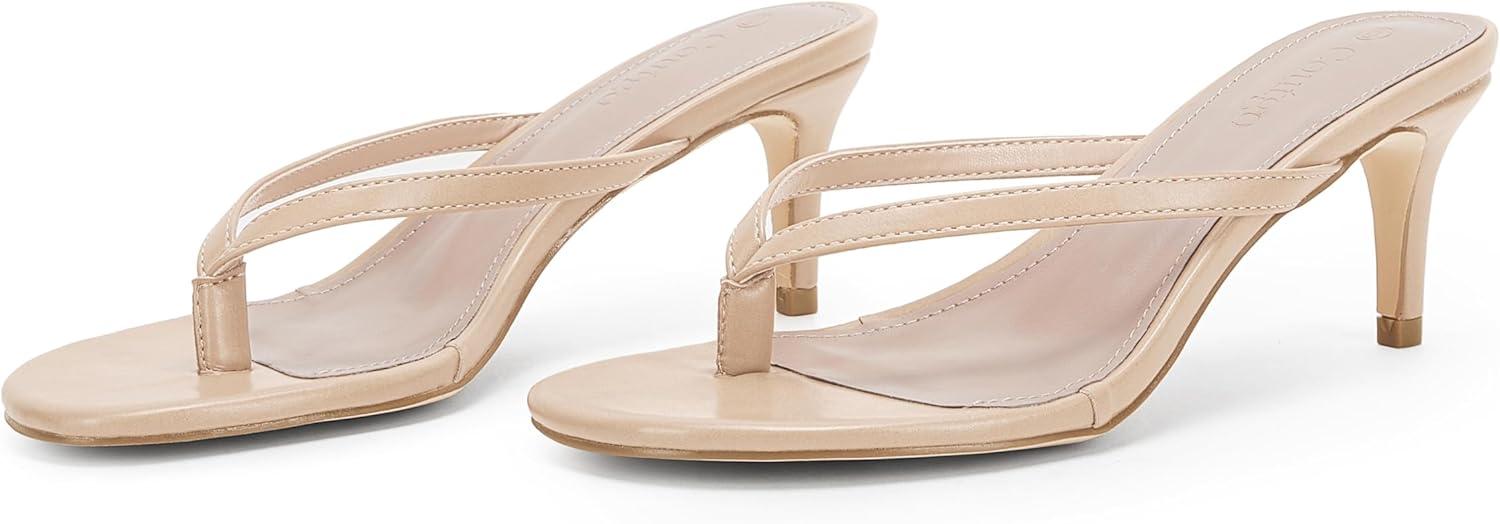 Coutgo Women’s Kitten Heel Flip Flops Slip On Thong Slide Sandals Comfortable Summer Beach Shoes(Beige)