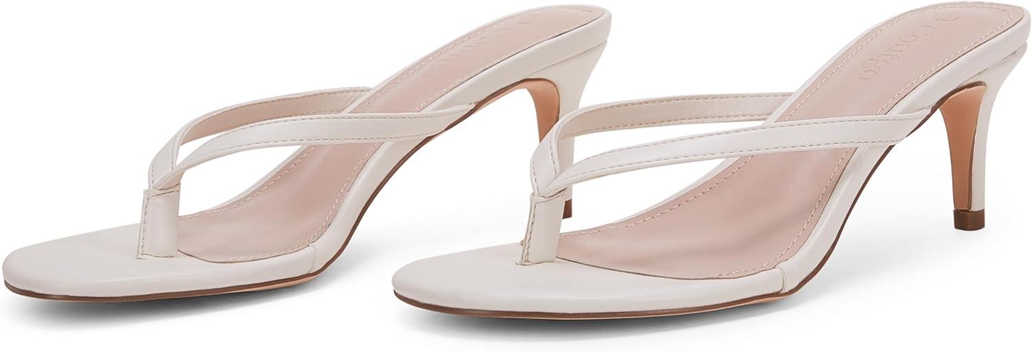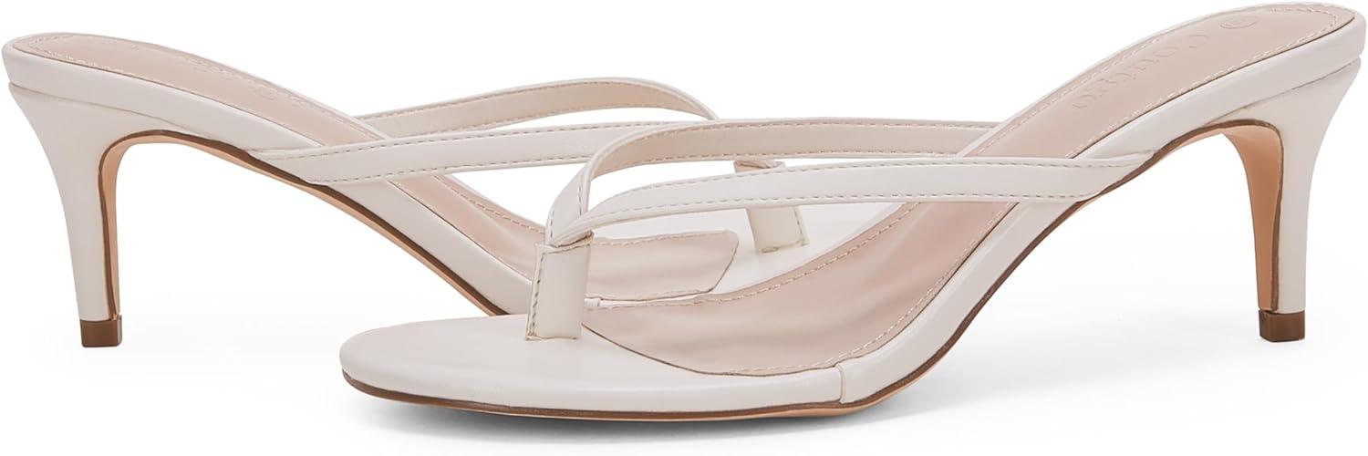 Coutgo Women’s Kitten Heel Flip Flops Slip On Thong Slide Sandals Comfortable Summer Beach Shoes(Nude)